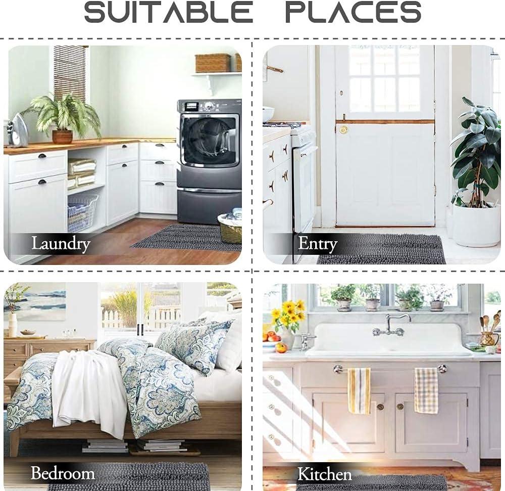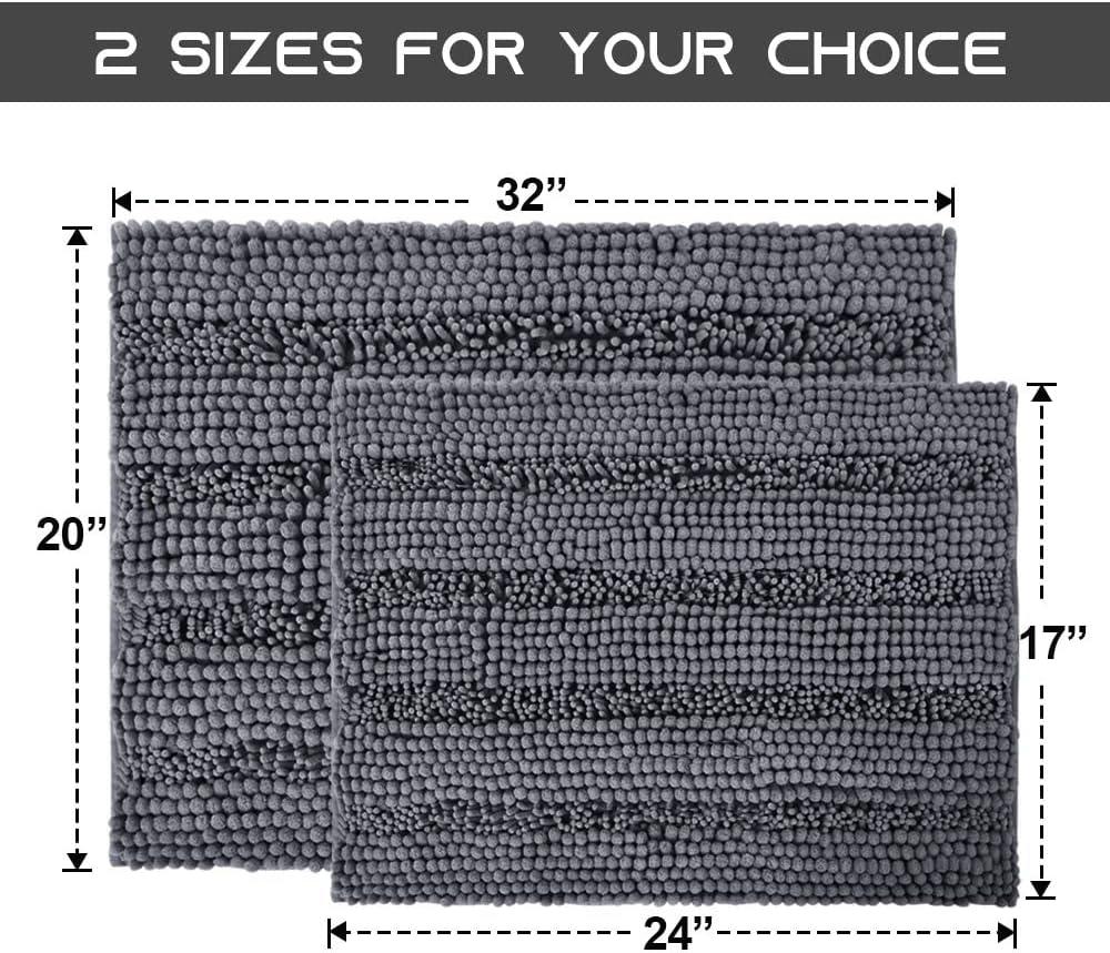 READY MADE: This set of two (2) chenille bath mats are perfect for any bathroom. Set includes 1 Small 17″ x 24″ Mat and 1 Large 20″ x 32″ Mat. Scope of application: Bedroom, Living room, Hallway, Entrance, Balcony, Kitchen, Bathroom, Sofa, Car seat, etc.