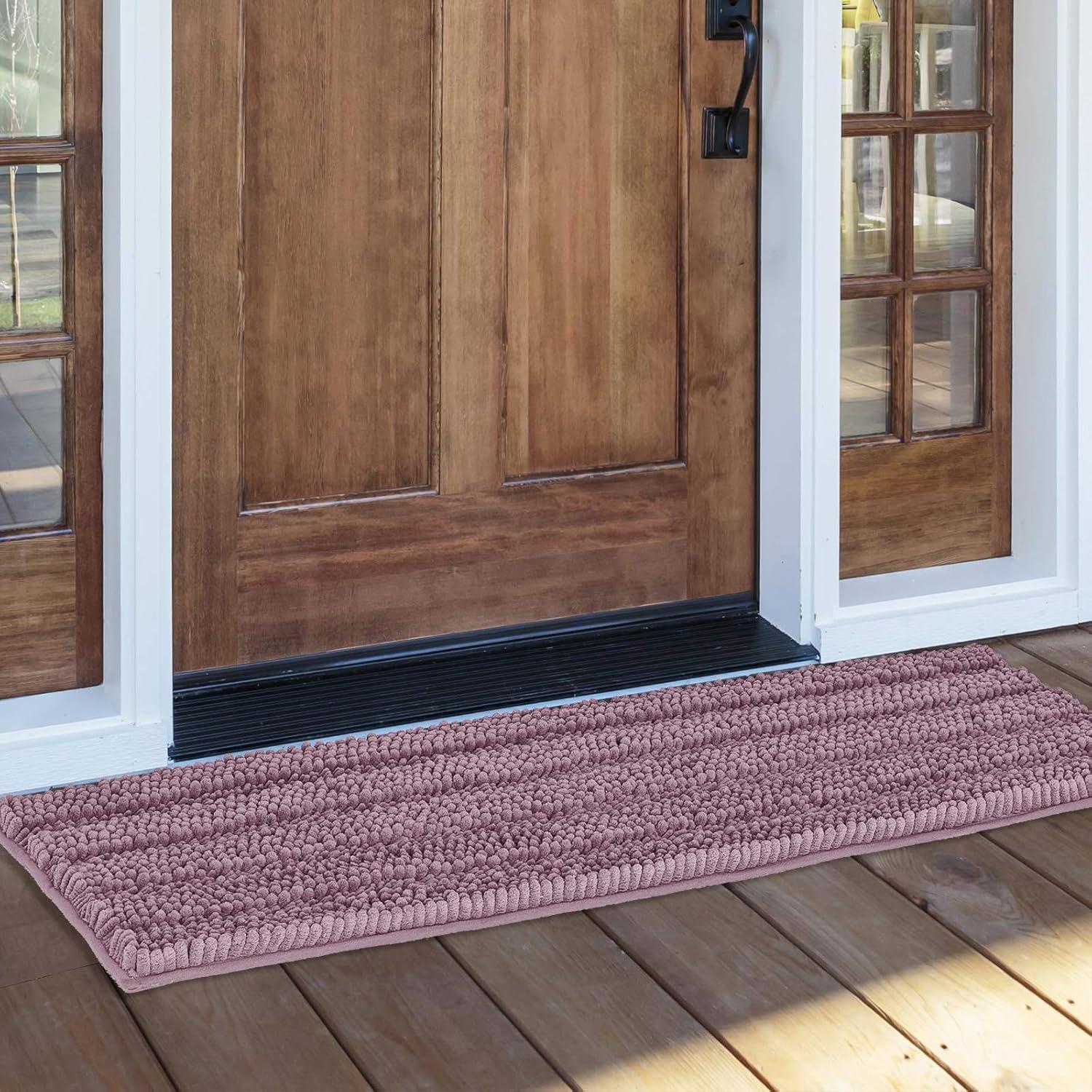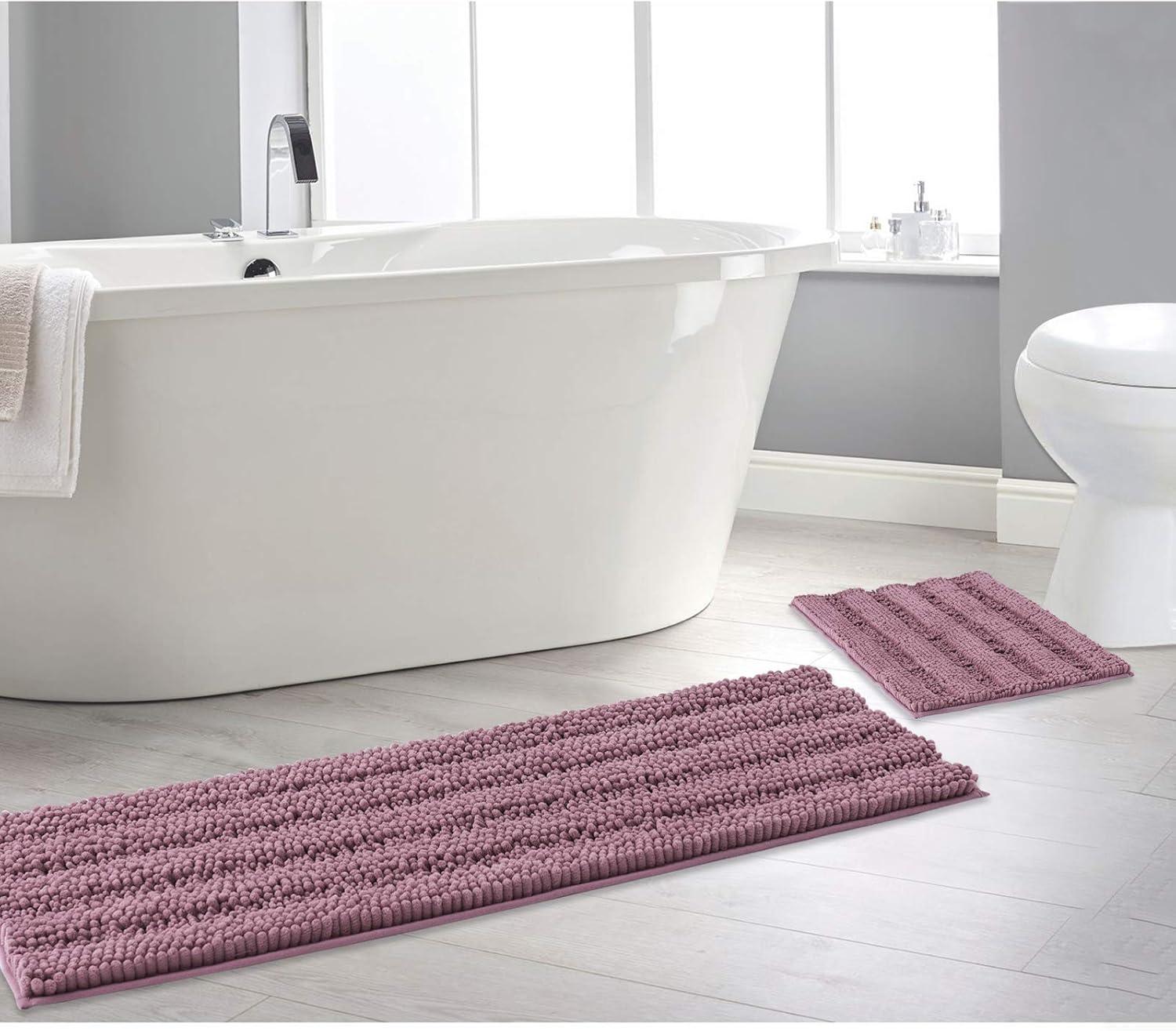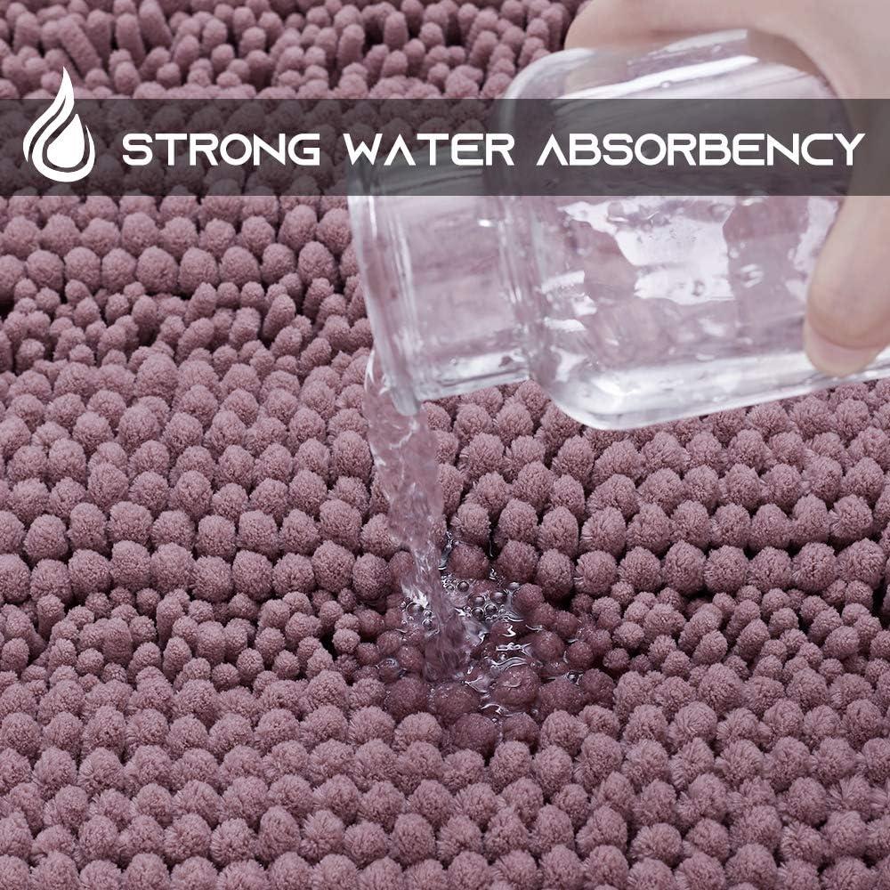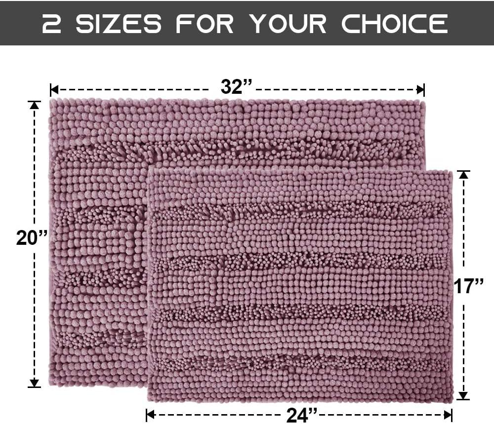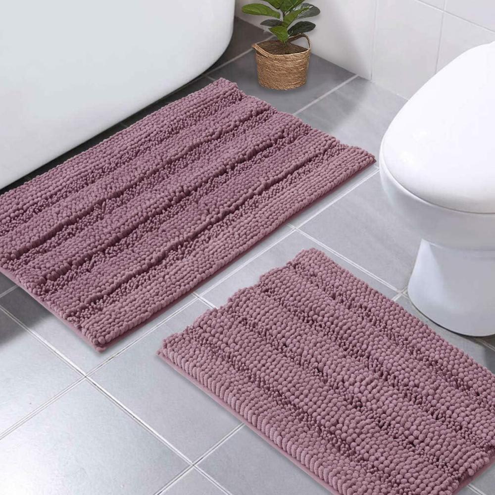 NICETOWN Grey Bathroom Rug Sets, Extra Thick Bath Rugs for Bathroom, Anti-Slip Soft Plush Chenille Shaggy Bath Mats, Living Room Bedroom Mats, Water Absorbent Floor Carpets (20 x 32 Plus 17 x 24)(Mauve)
