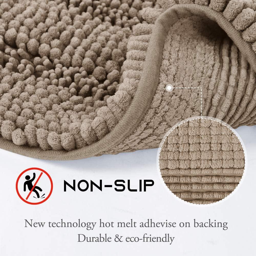 imageNICETOWN Grey Bathroom Rug Sets Extra Thick Bath Rugs for Bathroom AntiSlip Soft Plush Chenille Shaggy Bath Mats Living Room Bedroom Mats Water Absorbent Floor Carpets 20 x 32 Plus 17 x 24Taupe Brown