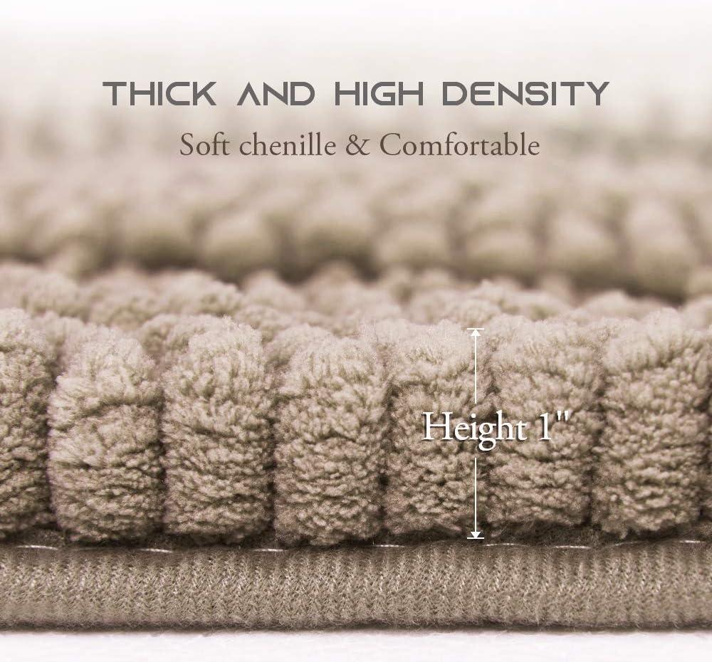NICETOWN Grey Bathroom Rug Sets, Extra Thick Bath Rugs for Bathroom, Anti-Slip Soft Plush Chenille Shaggy Bath Mats, Living Room Bedroom Mats, Water Absorbent Floor Carpets (20 x 32 Plus 17 x 24)(Taupe)