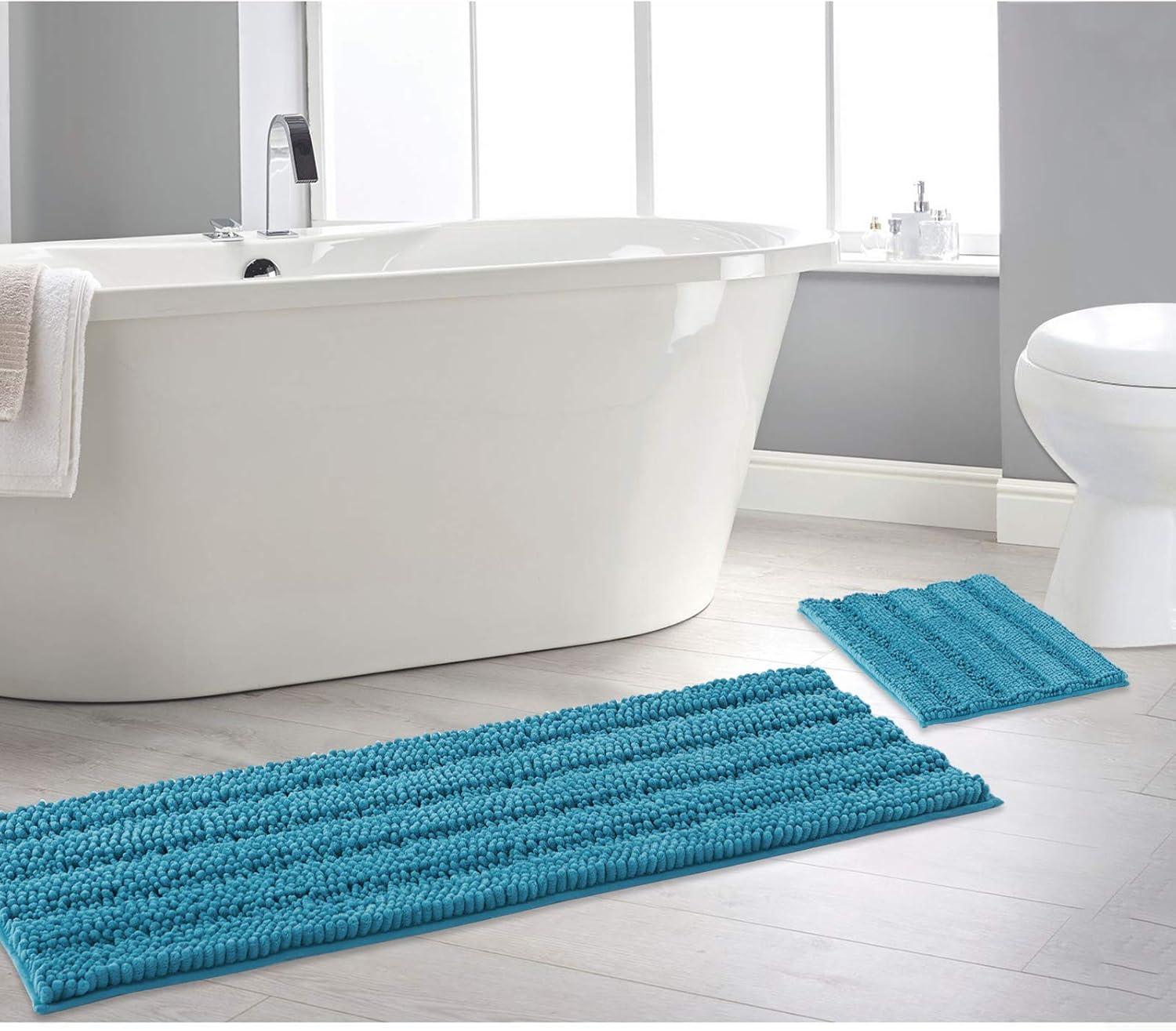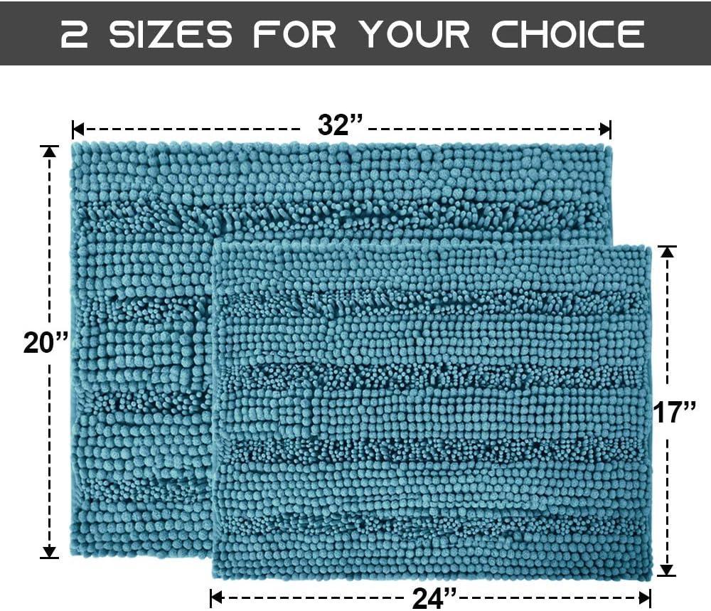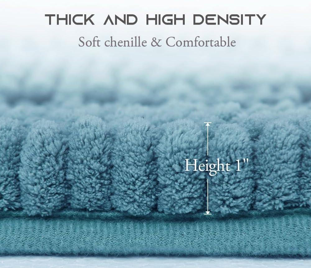 NICETOWN Grey Bathroom Rug Sets, Extra Thick Bath Rugs for Bathroom, Anti-Slip Soft Plush Chenille Shaggy Bath Mats, Living Room Bedroom Mats, Water Absorbent Floor Carpets (20 x 32 Plus 17 x 24)(Teal Blue)
