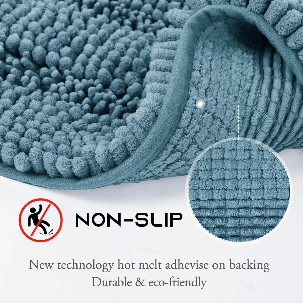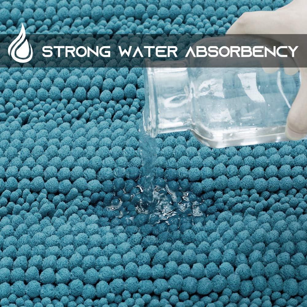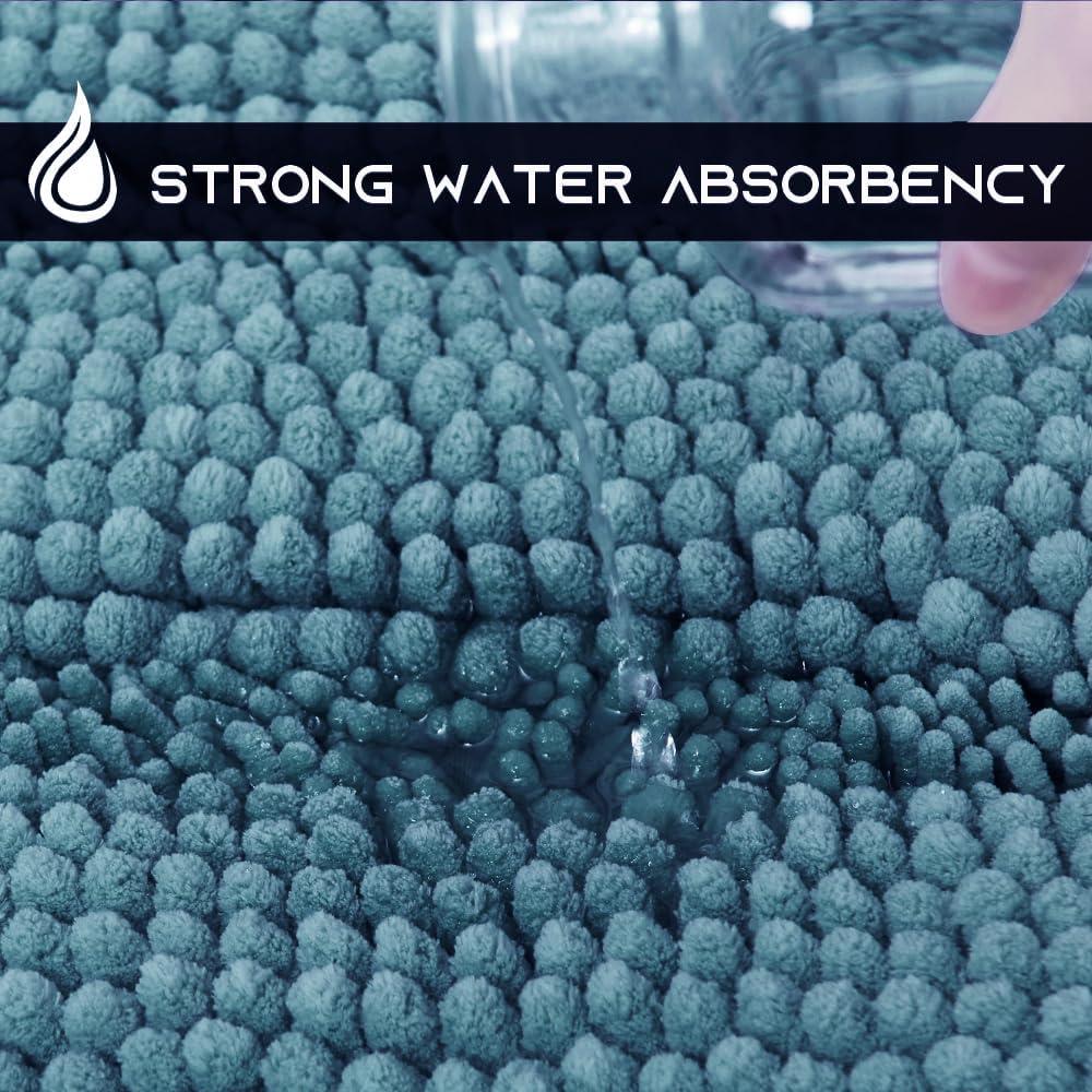 imageNICETOWN Grey Bathroom Rug Sets Extra Thick Bath Rugs for Bathroom AntiSlip Soft Plush Chenille Shaggy Bath Mats Living Room Bedroom Mats Water Absorbent Floor Carpets 20 x 32 Plus 17 x 24Teal Blue