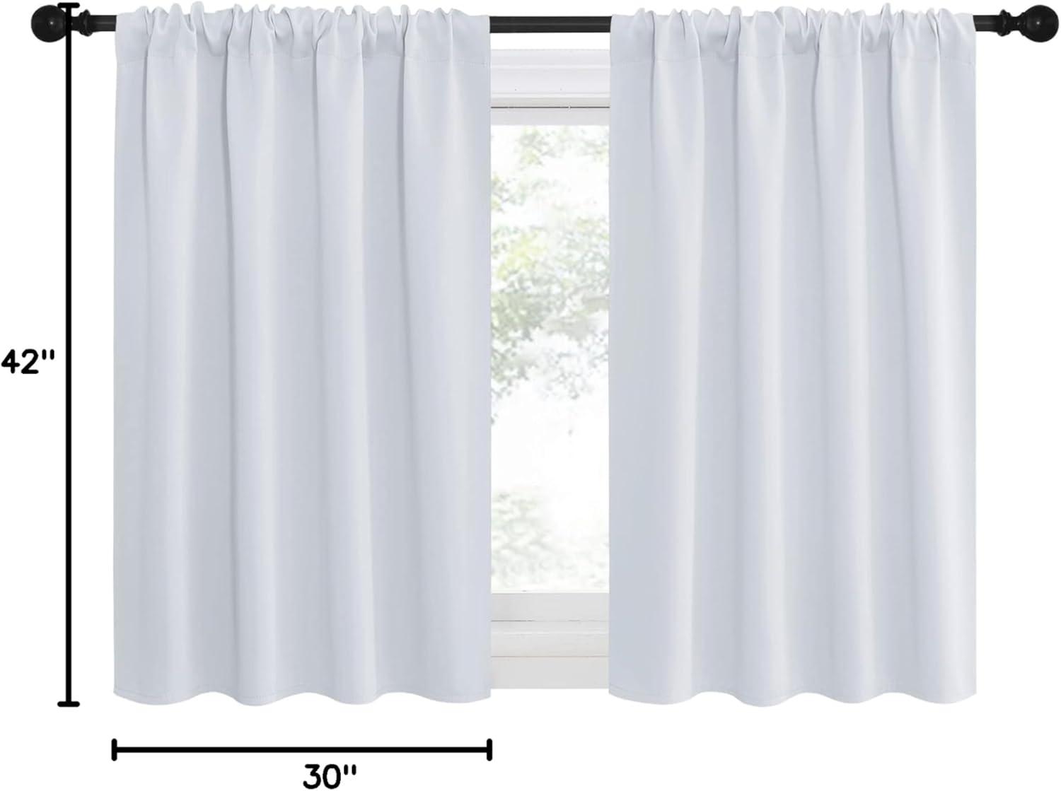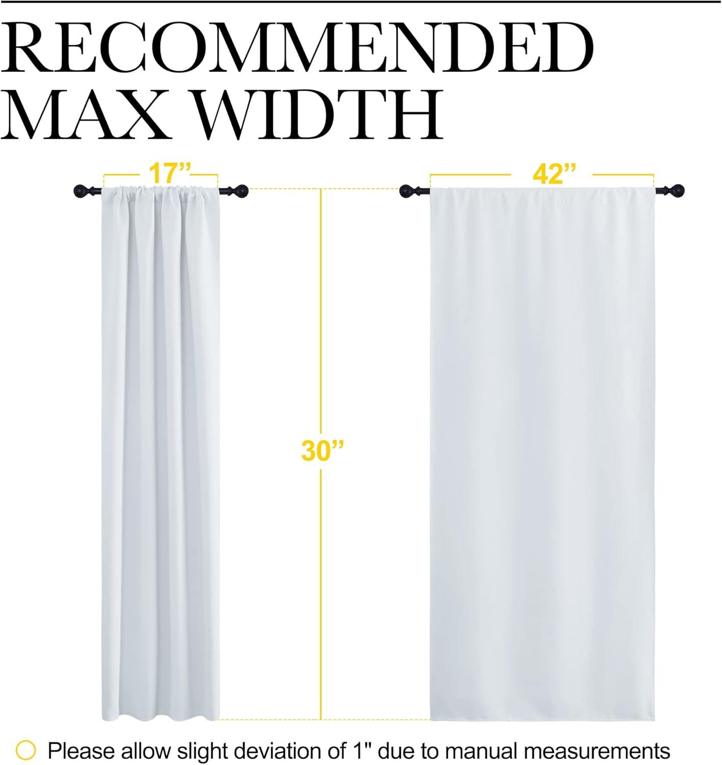 ELEGANT DESIGN: 2 panels per package. Each Blackout Curtain Panel measures 42 inches wide x 30 inches long. The NICETOWN drapery is constructed with rod pocket, fitting the curtain rod of your choice up to 2 inches in diameter, making the curtains easy to install and slide.