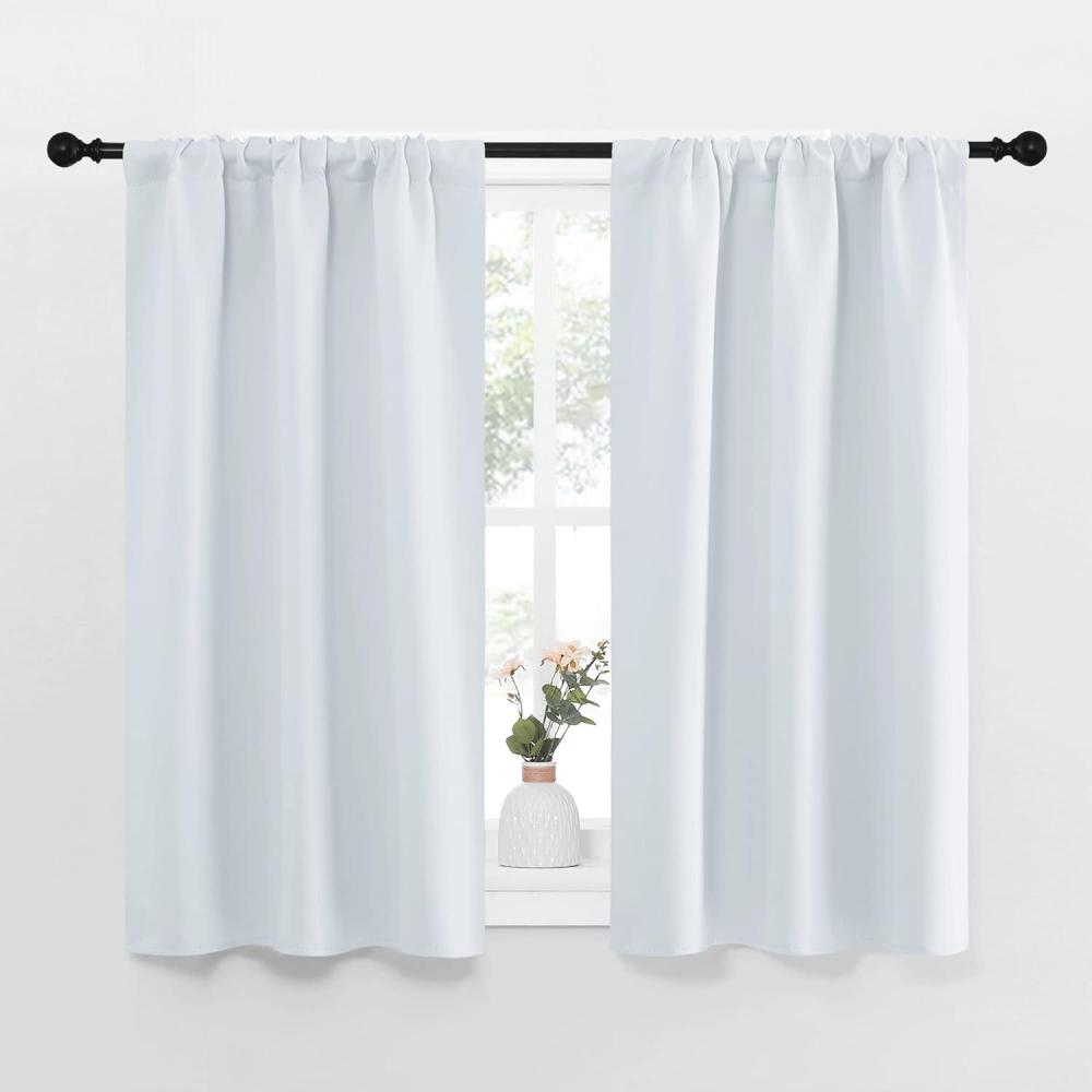 NICETOWN Greyish White Window Curtain Panels – Thermal Insulated Rod Pocket Room Darkening Curtain Sets for Bedroom (Greyish White, 2 Panels, 29 by 40)