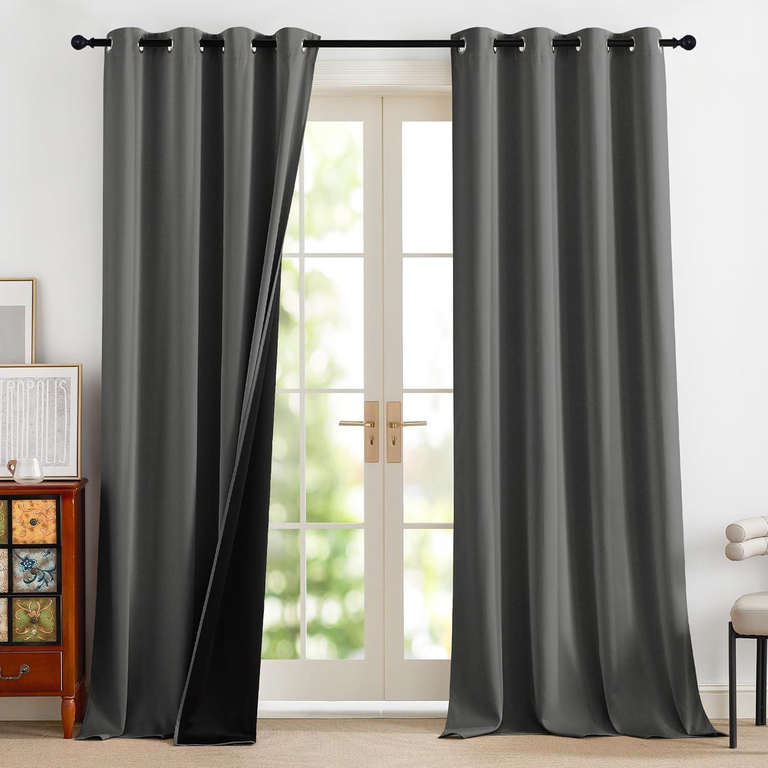 NICETOWN Grommet Blackout Curtains for Living Room Bedroom Window Panels, Thermal Insulated Soundproof Sliding Door Curtains for Patio Glass Door (W52 x L95 Inch, 2 Panels, Dark Mallard)(Dove Gray)