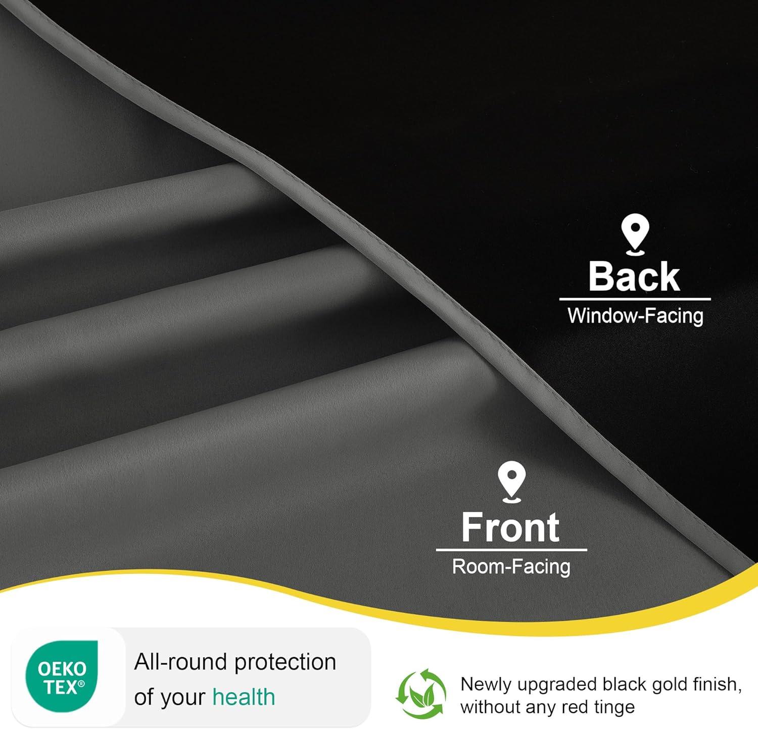 100% BLACKOUT: These curtains are manufactured in a STANDARD 100 certified by the OEKO TEX factory. The curtains feature triple weaving with black yarn, an extra light-blocking layer, and high-density weaving, which can 100% physical blackout bright sunlight and UV ray, bring you a full room darkening environment for good night sleep, afternoon nap and weekend lie-ins.