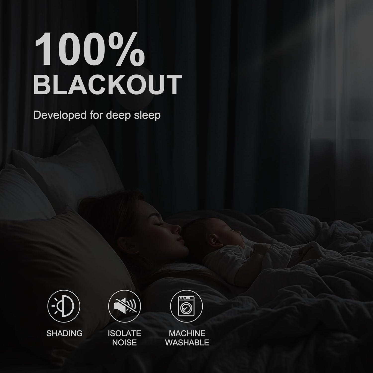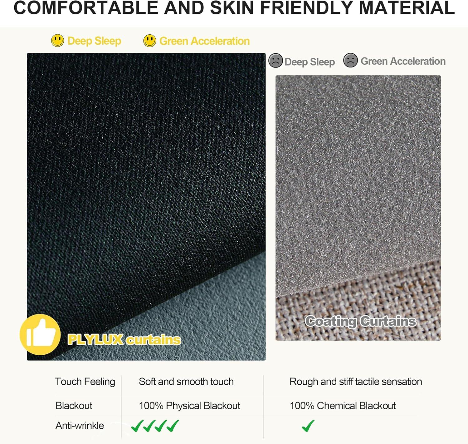100% BLACKOUT: These curtains are manufactured in a STANDARD 100 certified by the OEKO TEX factory. The curtains feature triple weaving with black yarn, an extra light-blocking layer, and high-density weaving, which can 100% physical blackout bright sunlight and UV ray, bring you a full room darkening environment for good night sleep, afternoon nap and weekend lie-ins.