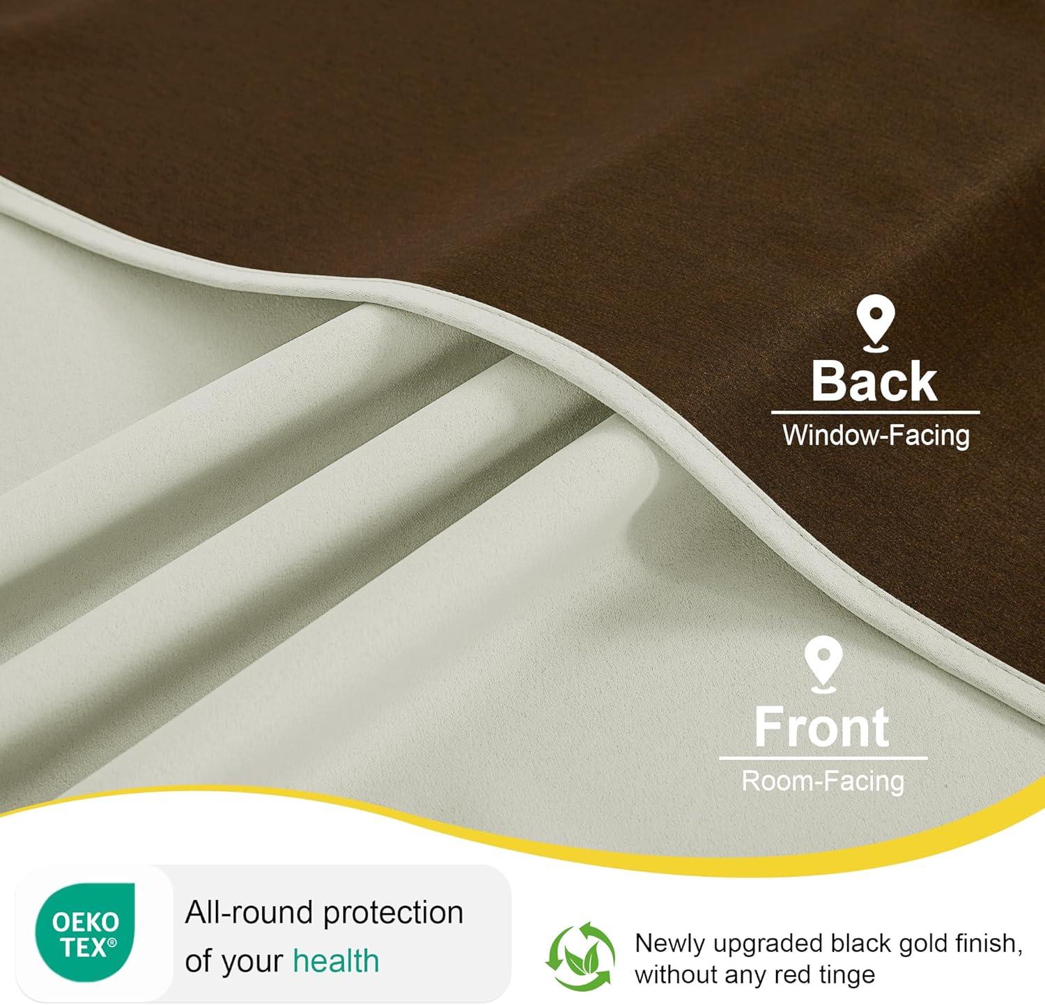 100% BLACKOUT: These curtains are manufactured in a STANDARD 100 certified by the OEKO TEX factory. The curtains feature triple weaving with black yarn, an extra light-blocking layer, and high-density weaving, which can 100% physical blackout bright sunlight and UV ray, bring you a full room darkening environment for good night sleep, afternoon nap and weekend lie-ins.