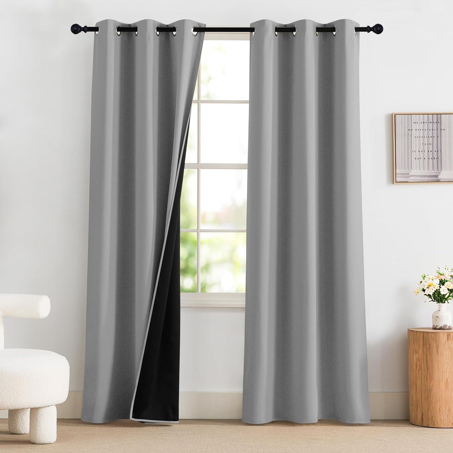 NICETOWN Grommet Blackout Curtains for Living Room Bedroom Window Panels, Thermal Insulated Soundproof Sliding Door Curtains for Patio Glass Door (W52 x L95 Inch, 2 Panels, Dark Mallard)(Sliver Grey)