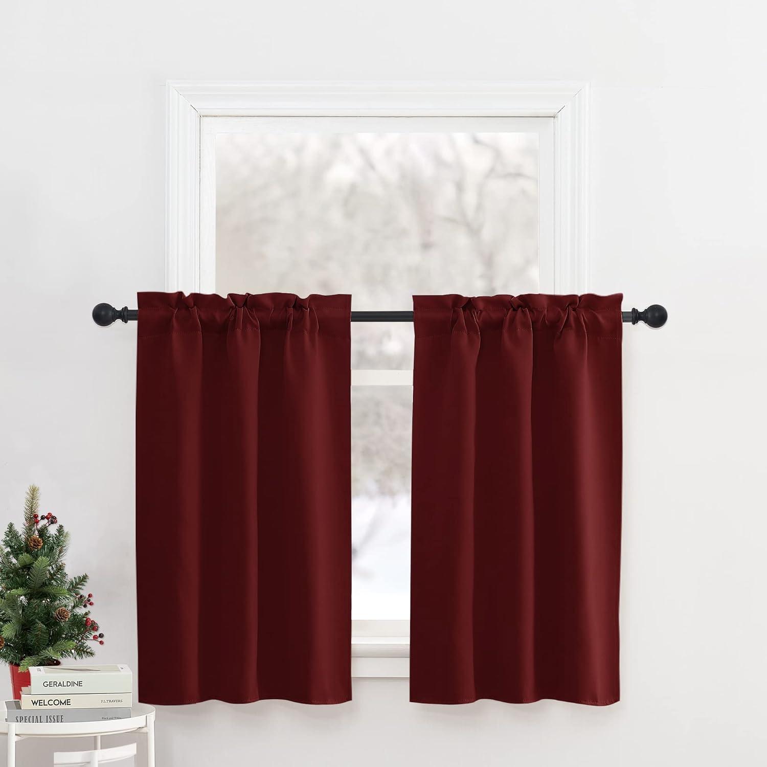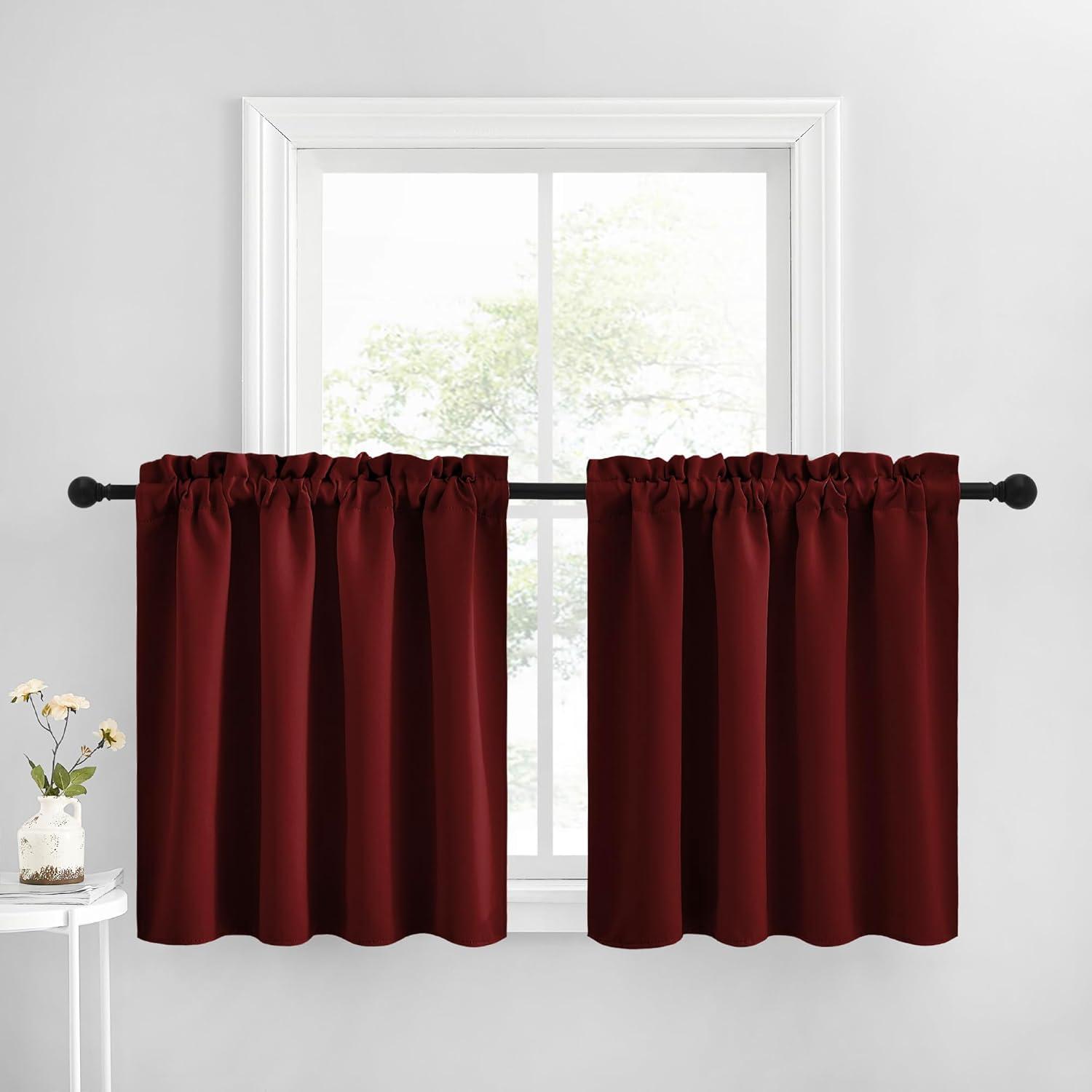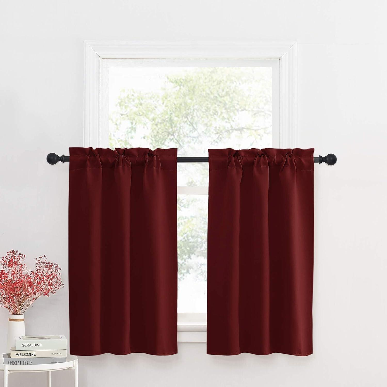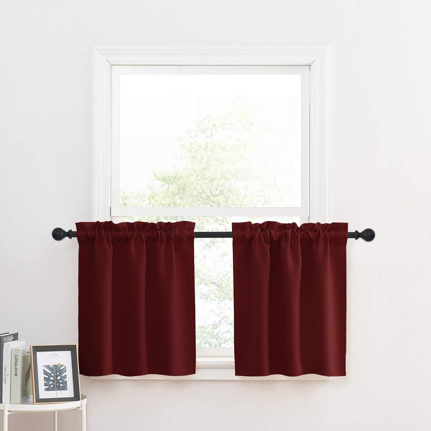 imageNICETOWN Half Window Curtains  Thermal Insulated Rod Pocket Blackout Curtain Tiers for Kids Nursery Kitchen Dining Bathroom Laundry 34 inch Wide x 36 inch Long Greyish White 1 PairBurgundy Red