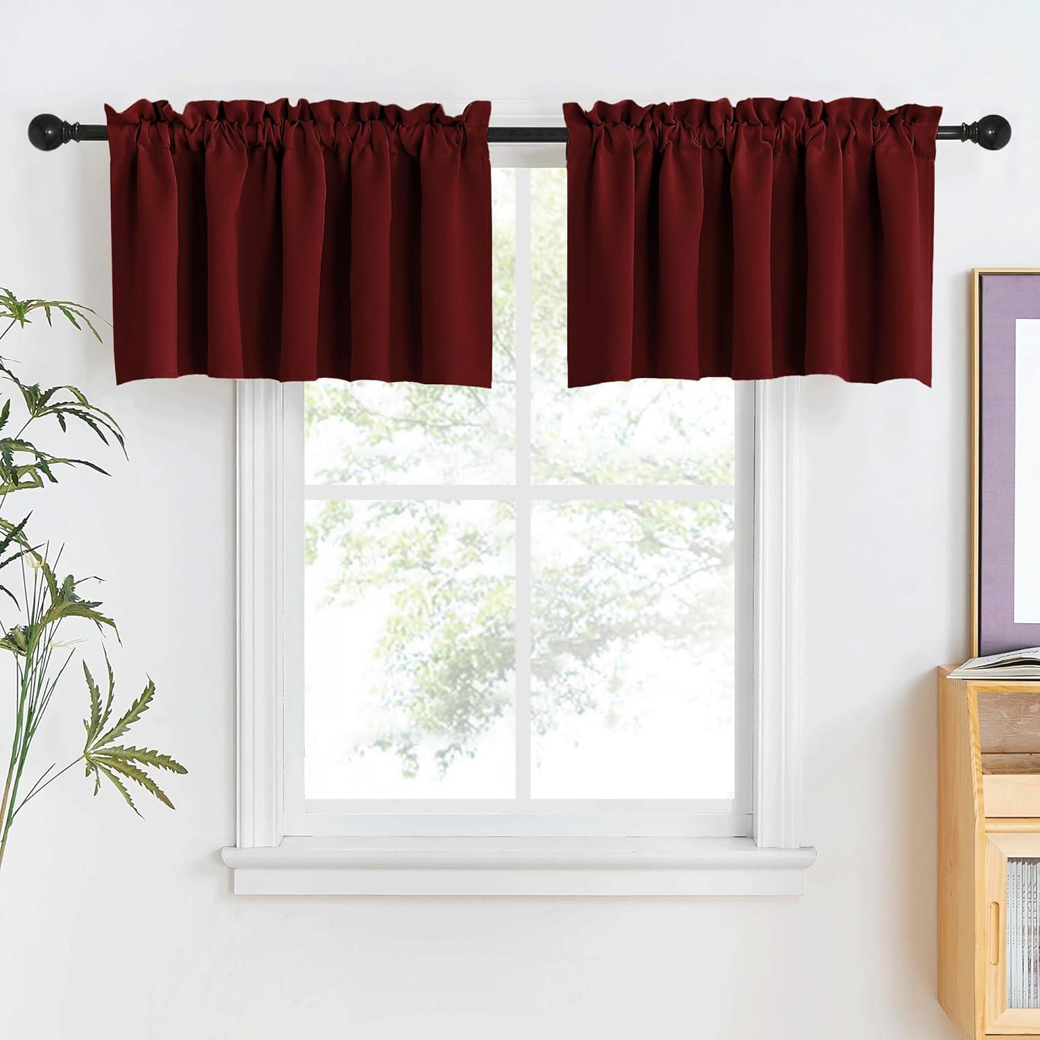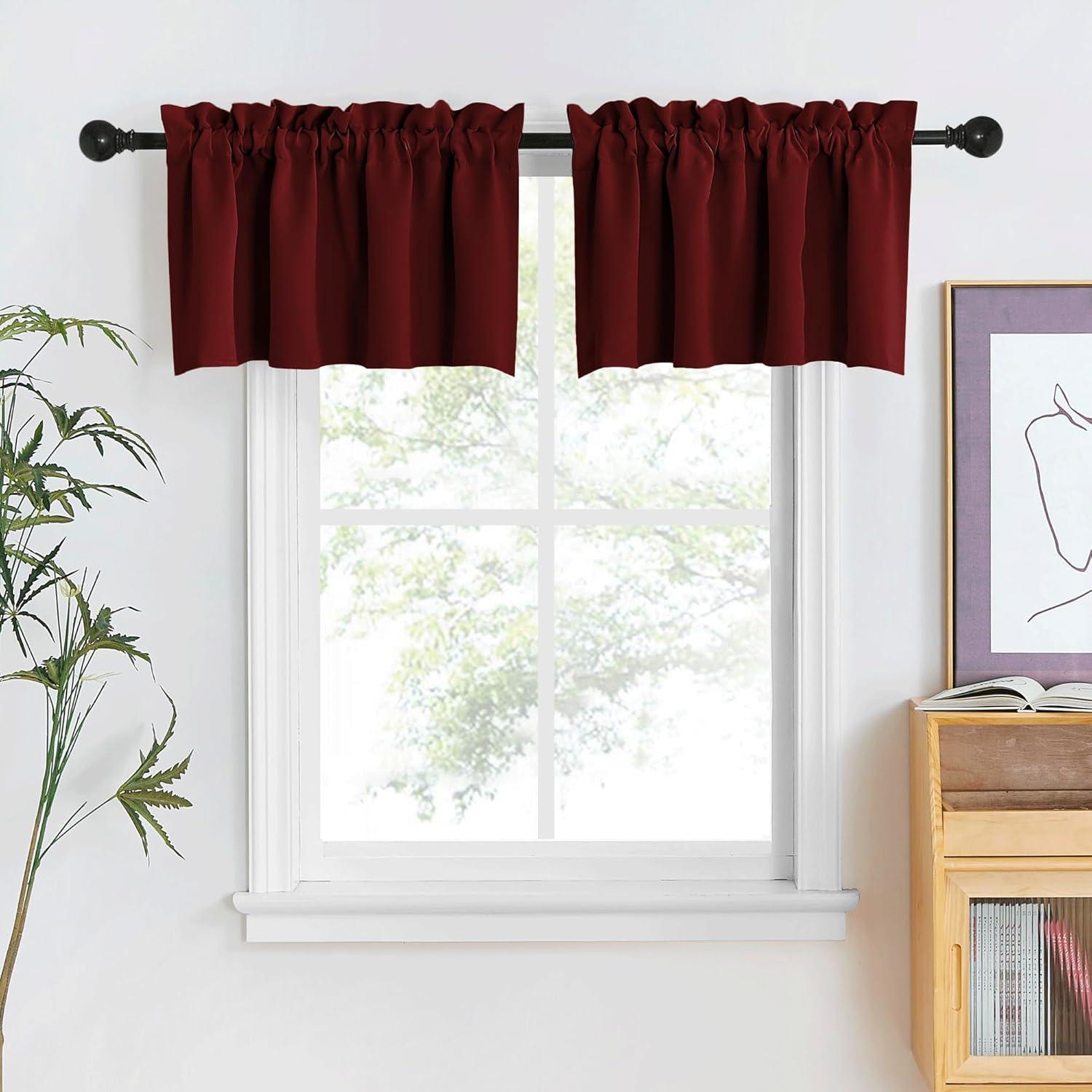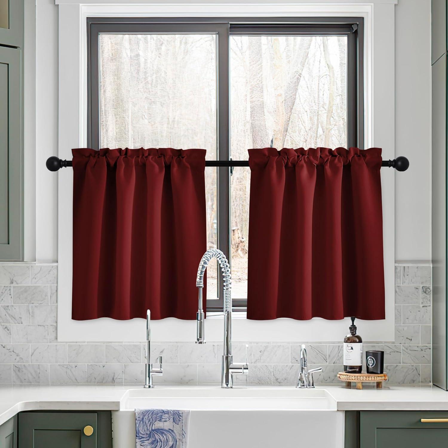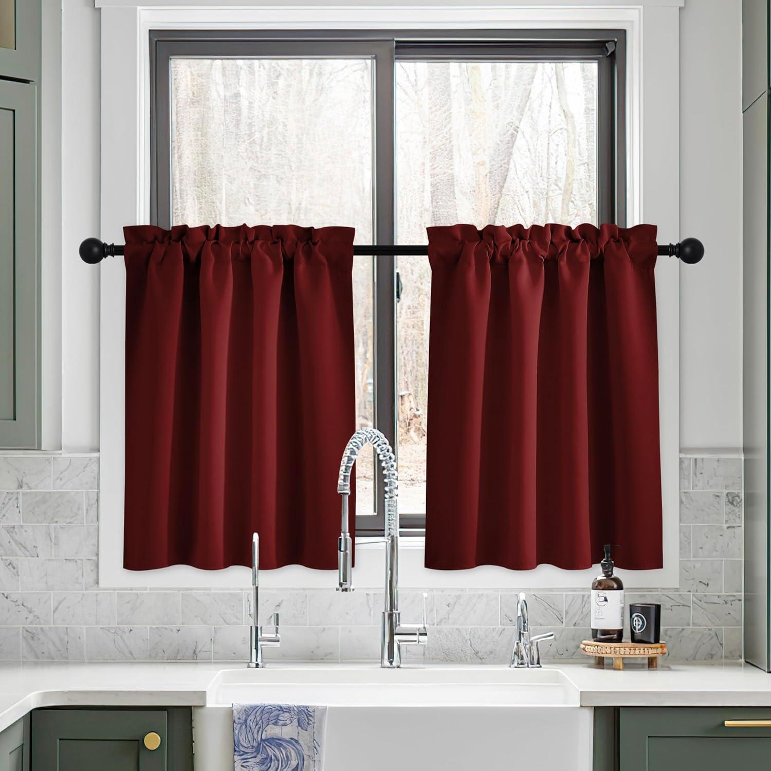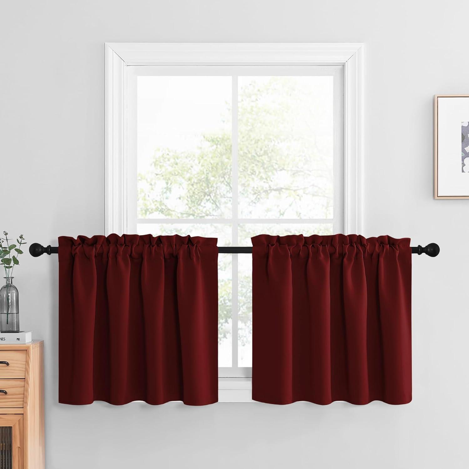 imageNICETOWN Half Window Curtains  Thermal Insulated Rod Pocket Blackout Curtain Tiers for Kids Nursery Kitchen Dining Bathroom Laundry 34 inch Wide x 36 inch Long Greyish White 1 PairBurgundy Red