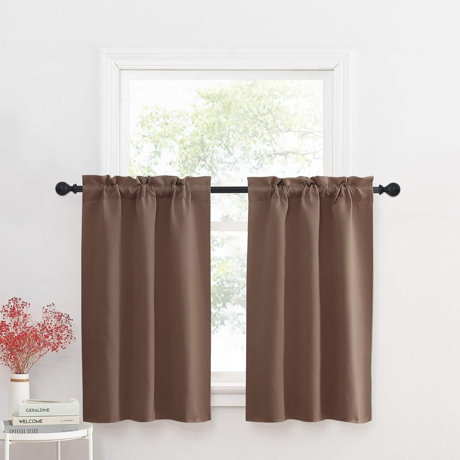 NICETOWN Half Window Curtains – Thermal Insulated Rod Pocket Blackout Curtain Tiers for Kids Nursery Kitchen Dining Bathroom Laundry, 34 inch Wide x 36 inch Long, Greyish White, 1 Pair(Cappuccino)