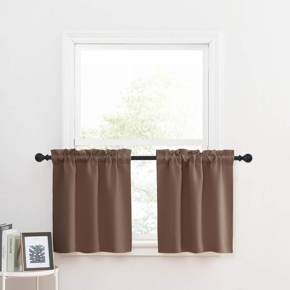 imageNICETOWN Half Window Curtains  Thermal Insulated Rod Pocket Blackout Curtain Tiers for Kids Nursery Kitchen Dining Bathroom Laundry 34 inch Wide x 36 inch Long Greyish White 1 PairCappuccino