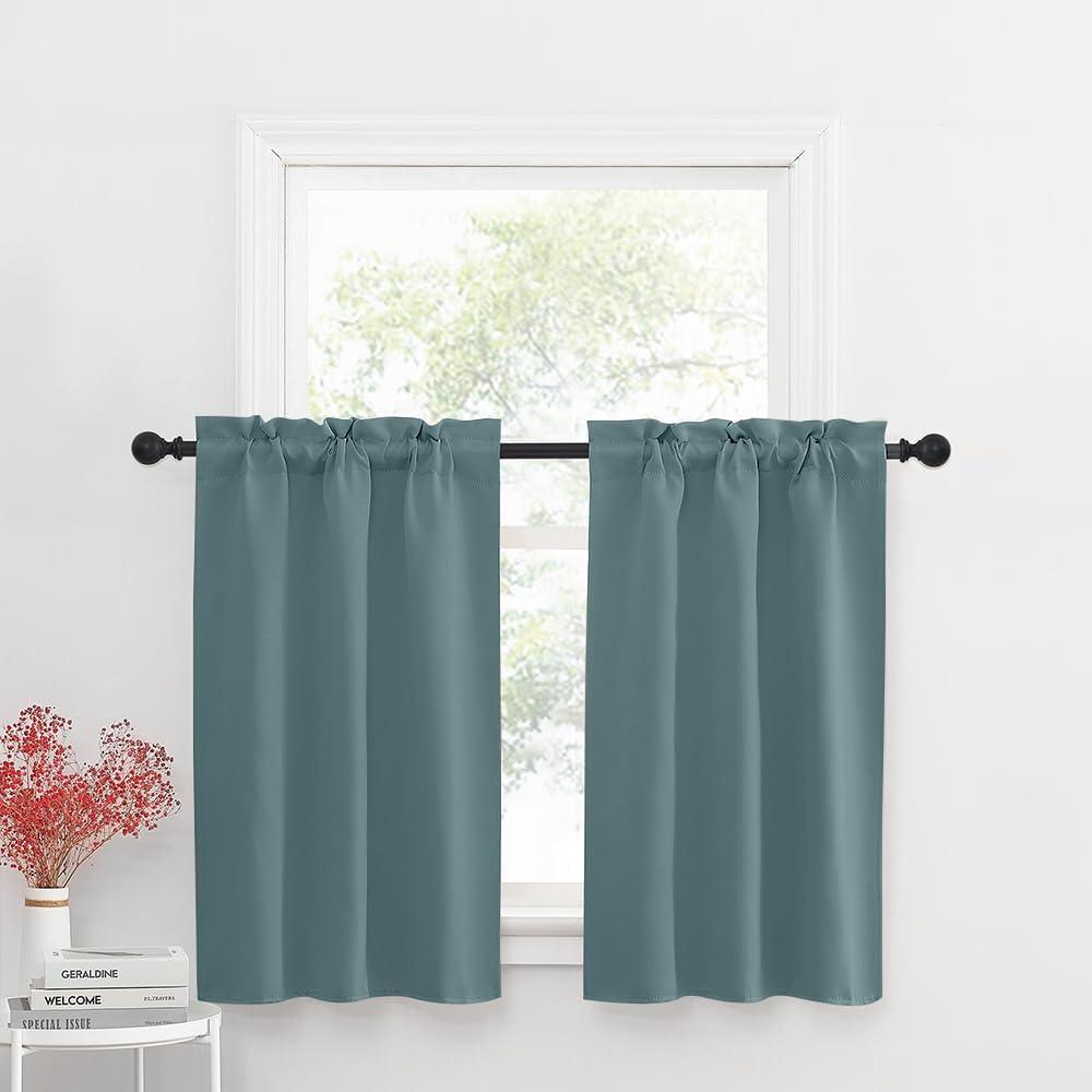 NICETOWN Half Window Curtains - Thermal Insulated Rod Pocket Blackout Curtain Tiers for Kids Nursery Kitchen Dining Bathroom Laundry, 34 inch Wide x 36 inch Long, Greyish White, 1 Pair(Greyish Blue)