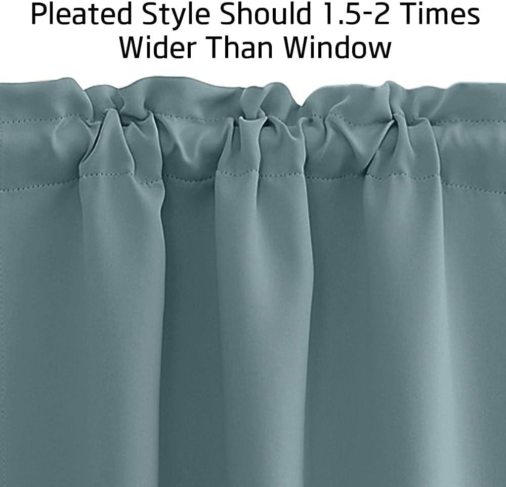 READY MADE: Set includes 2 panels of 34″ wide x 36″ length rod pocket (2″ opening pocket) valance each panel. As a general rule, for proper fullness panels should measure 2-8 times the width of your window.