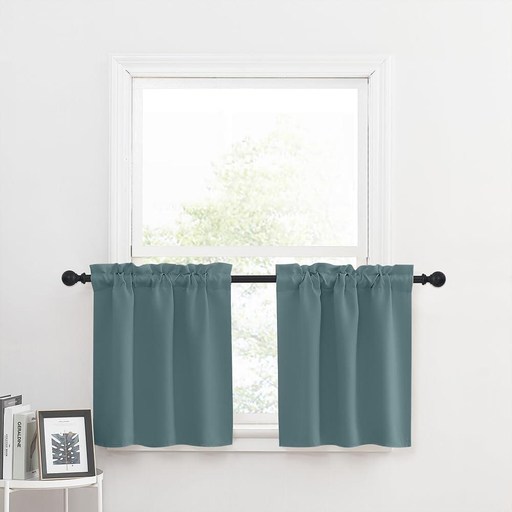 imageNICETOWN Half Window Curtains  Thermal Insulated Rod Pocket Blackout Curtain Tiers for Kids Nursery Kitchen Dining Bathroom Laundry 34 inch Wide x 36 inch Long Greyish White 1 PairGreyish Blue