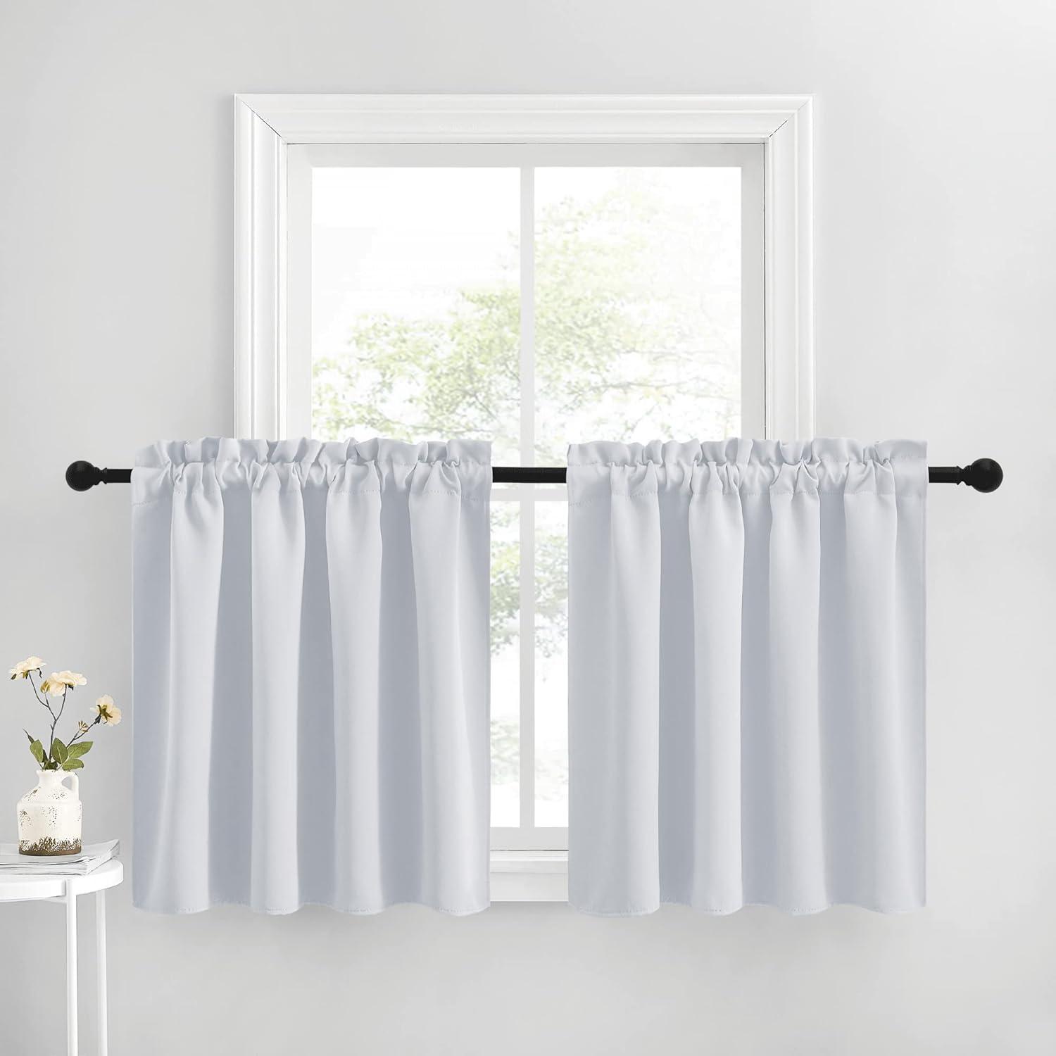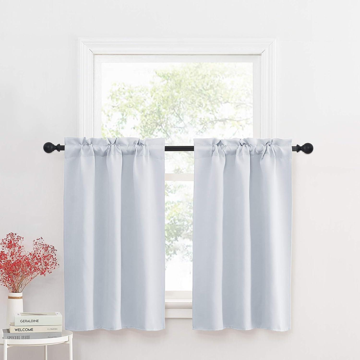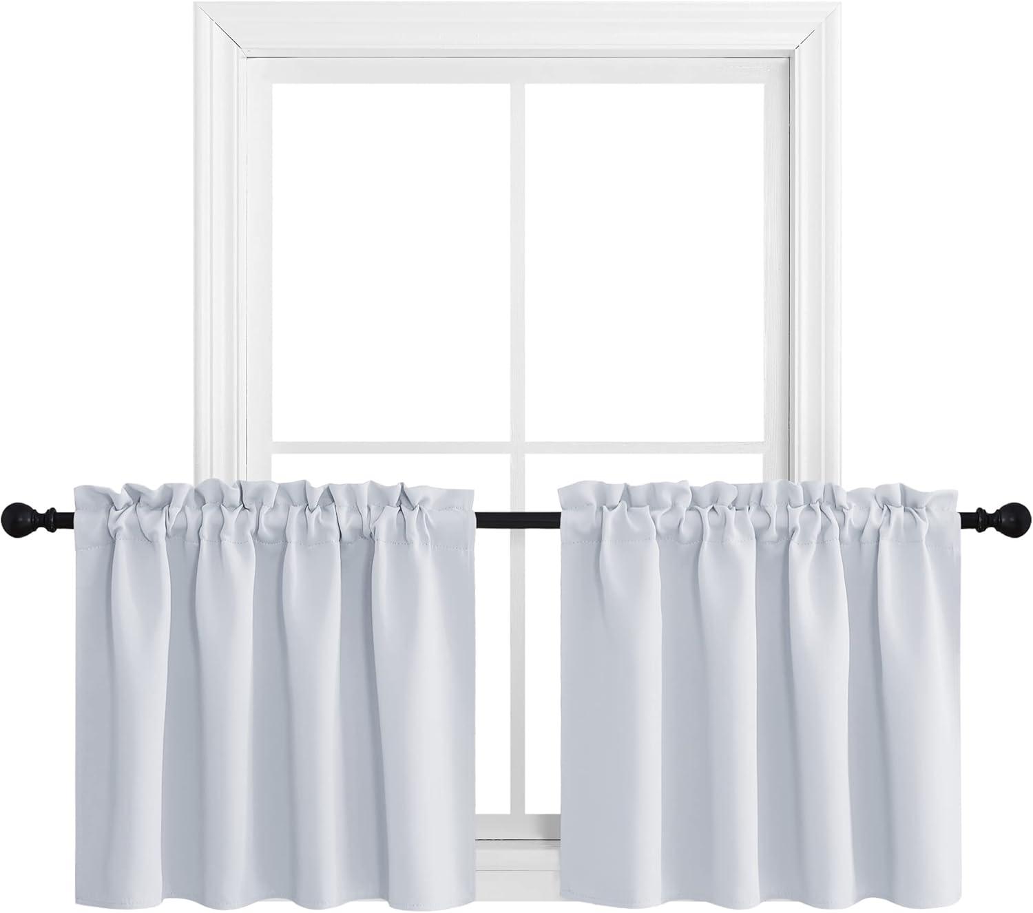 NICETOWN Half Window Curtains – Thermal Insulated Rod Pocket Blackout Curtain Tiers for Kids Nursery Kitchen Dining Bathroom Laundry, 34 inch Wide x 36 inch Long, Greyish White, 1 Pair(Greyish White)