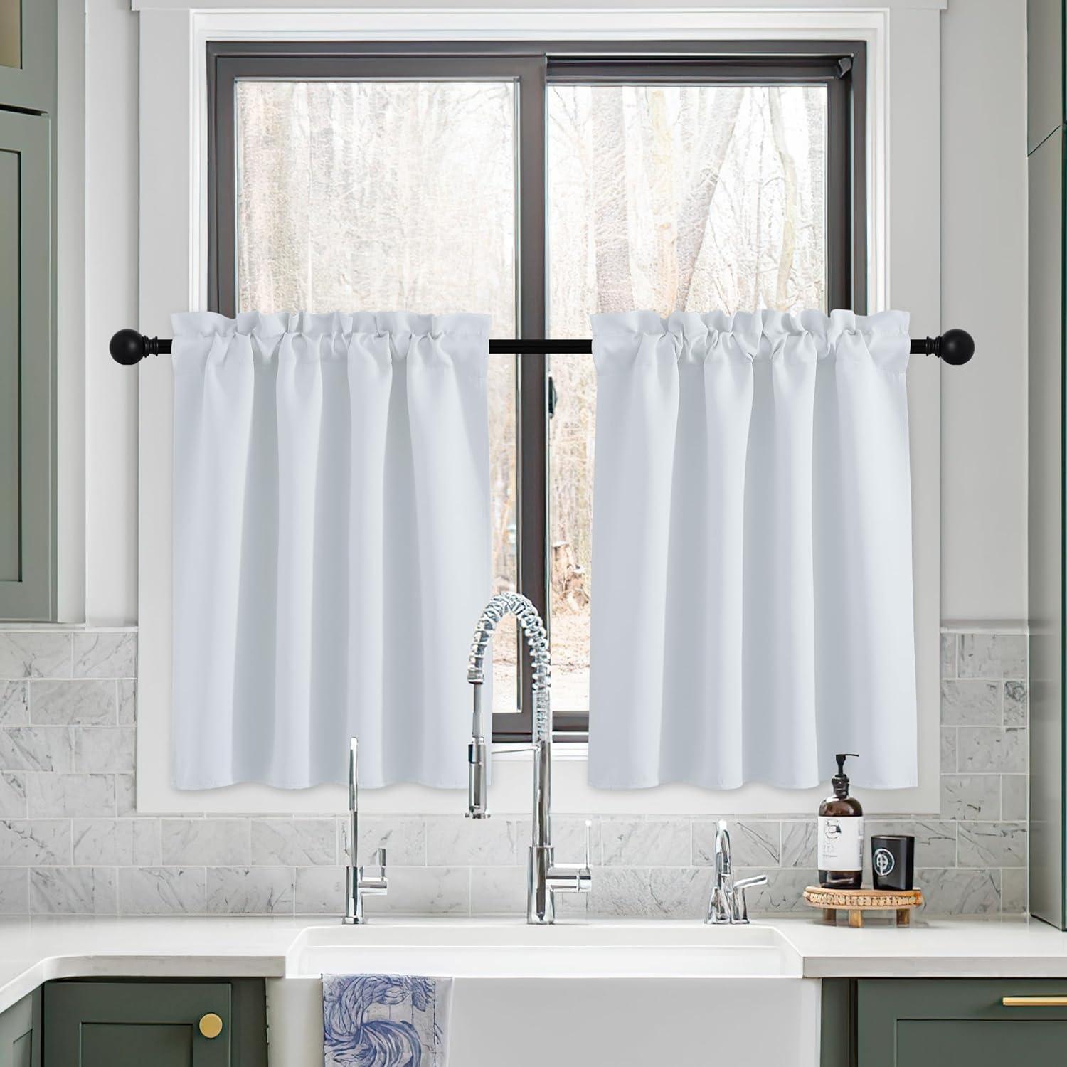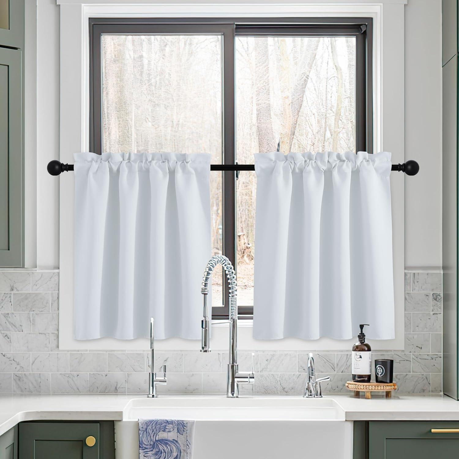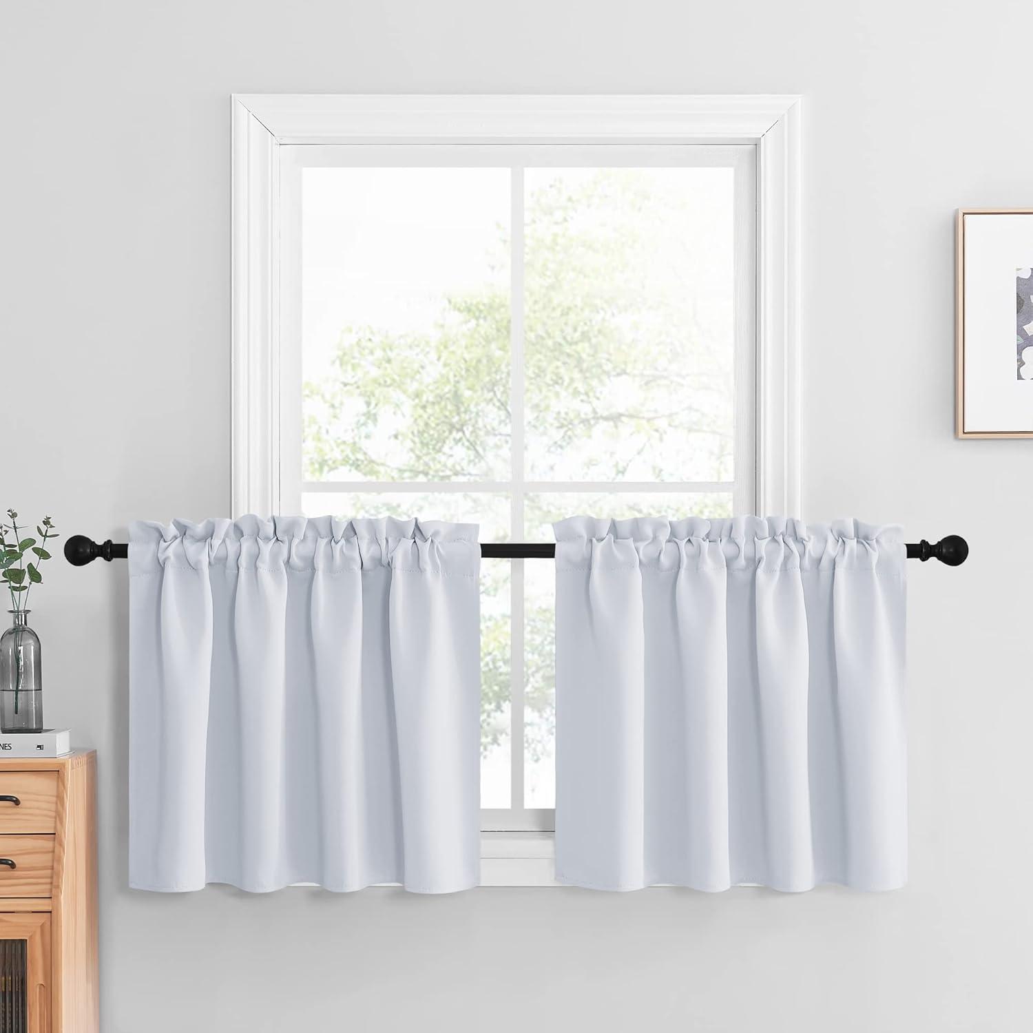 NICETOWN Half Window Curtains – Thermal Insulated Rod Pocket Blackout Curtain Tiers for Kids Nursery Kitchen Dining Bathroom Laundry, 34 inch Wide x 36 inch Long, Greyish White, 1 Pair(Greyish White)