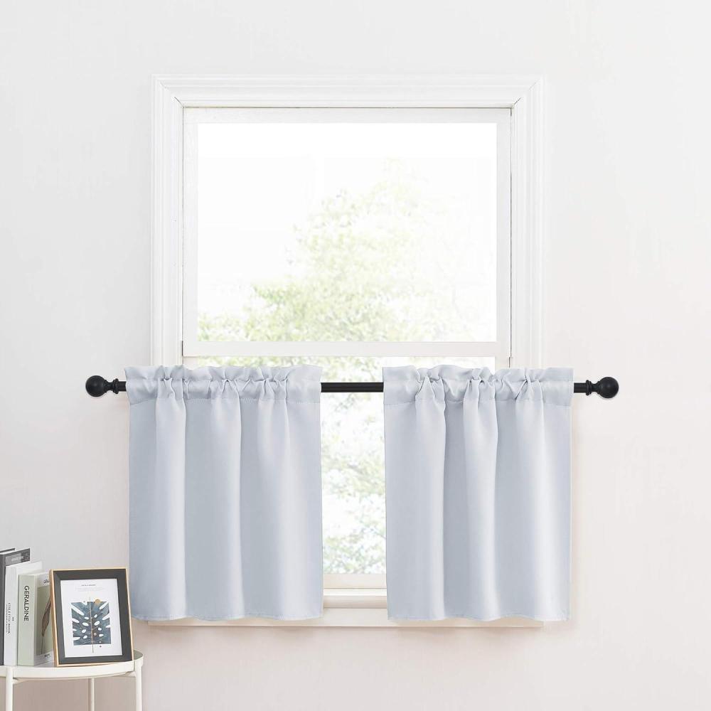 imageNICETOWN Half Window Curtains  Thermal Insulated Rod Pocket Blackout Curtain Tiers for Kids Nursery Kitchen Dining Bathroom Laundry 34 inch Wide x 36 inch Long Greyish White 1 PairGreyish White