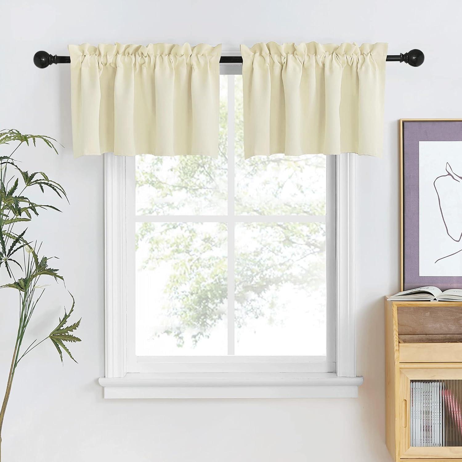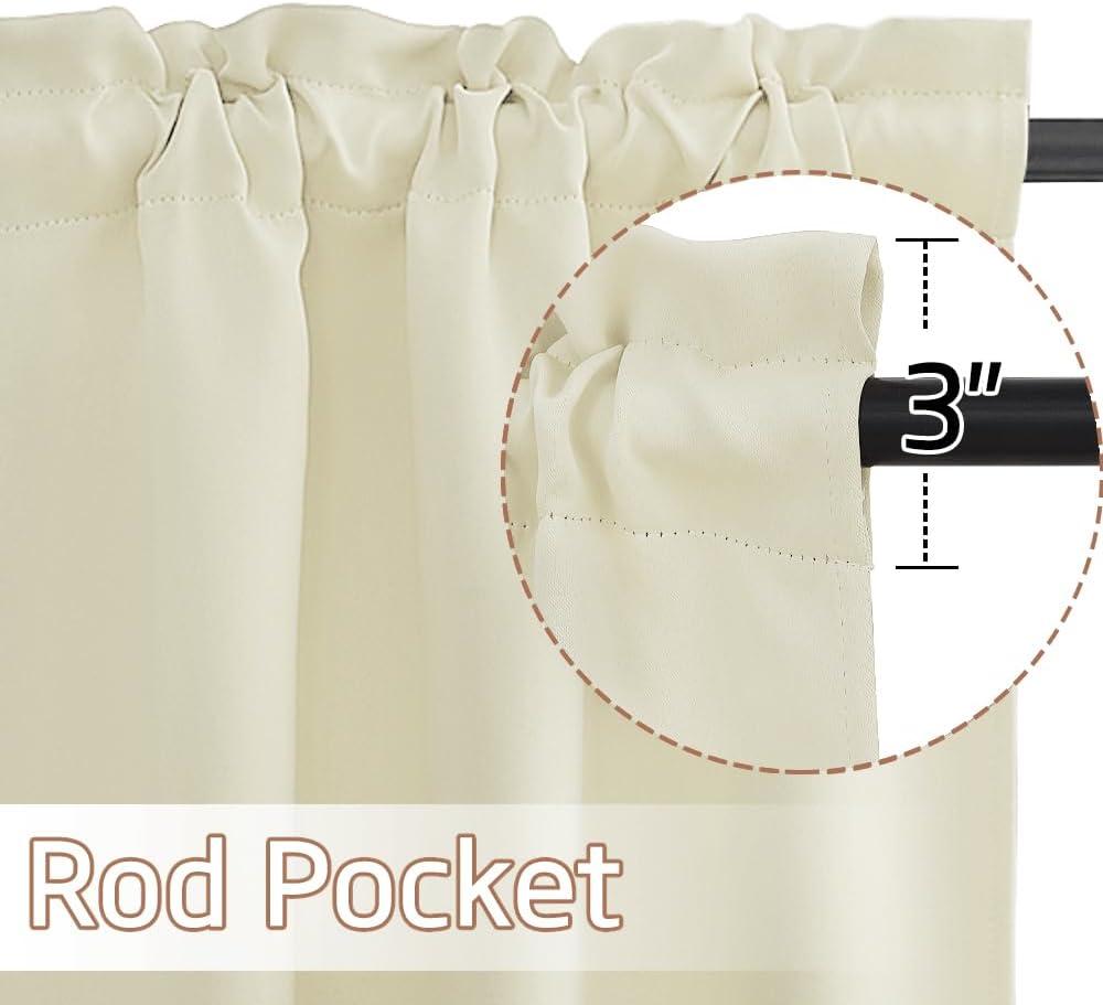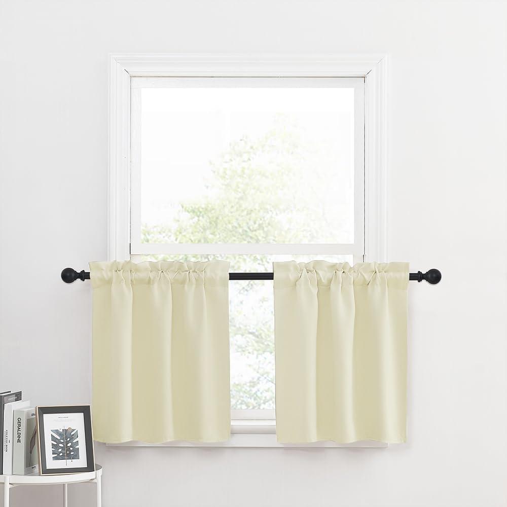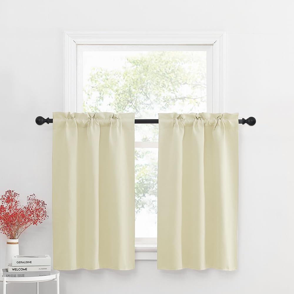 NICETOWN Half Window Curtains - Thermal Insulated Rod Pocket Blackout Curtain Tiers for Kids Nursery Kitchen Dining Bathroom Laundry, 34 inch Wide x 36 inch Long, Greyish White, 1 Pair(Light Beige)