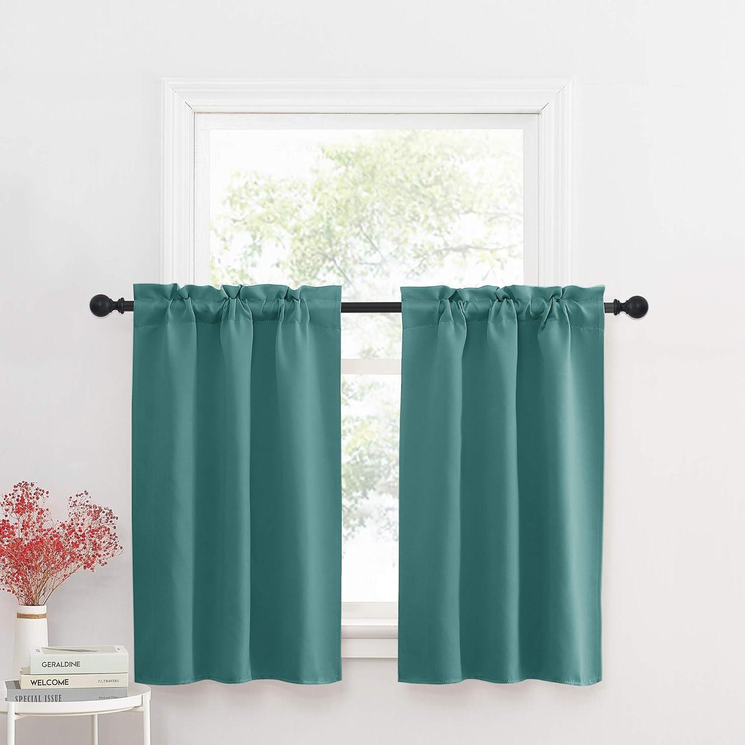 NICETOWN Half Window Curtains – Thermal Insulated Rod Pocket Blackout Curtain Tiers for Kids Nursery Kitchen Dining Bathroom Laundry, 34 inch Wide x 36 inch Long, Greyish White, 1 Pair(Sea Teal)