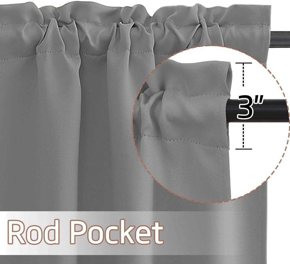 NICETOWN Half Window Curtains – Thermal Insulated Rod Pocket Blackout Curtain Tiers for Kids Nursery Kitchen Dining Bathroom Laundry, 34 inch Wide x 36 inch Long, Greyish White, 1 Pair(Silver Grey)