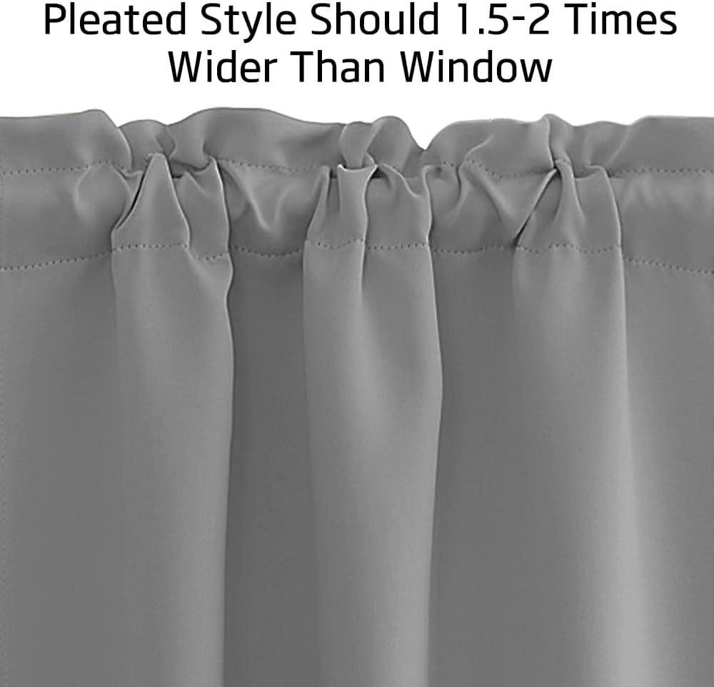 READY MADE: Set includes 2 panels of 34″ wide x 36″ length rod pocket (2″ opening pocket) valance each panel. As a general rule, for proper fullness panels should measure 2-8 times the width of your window.