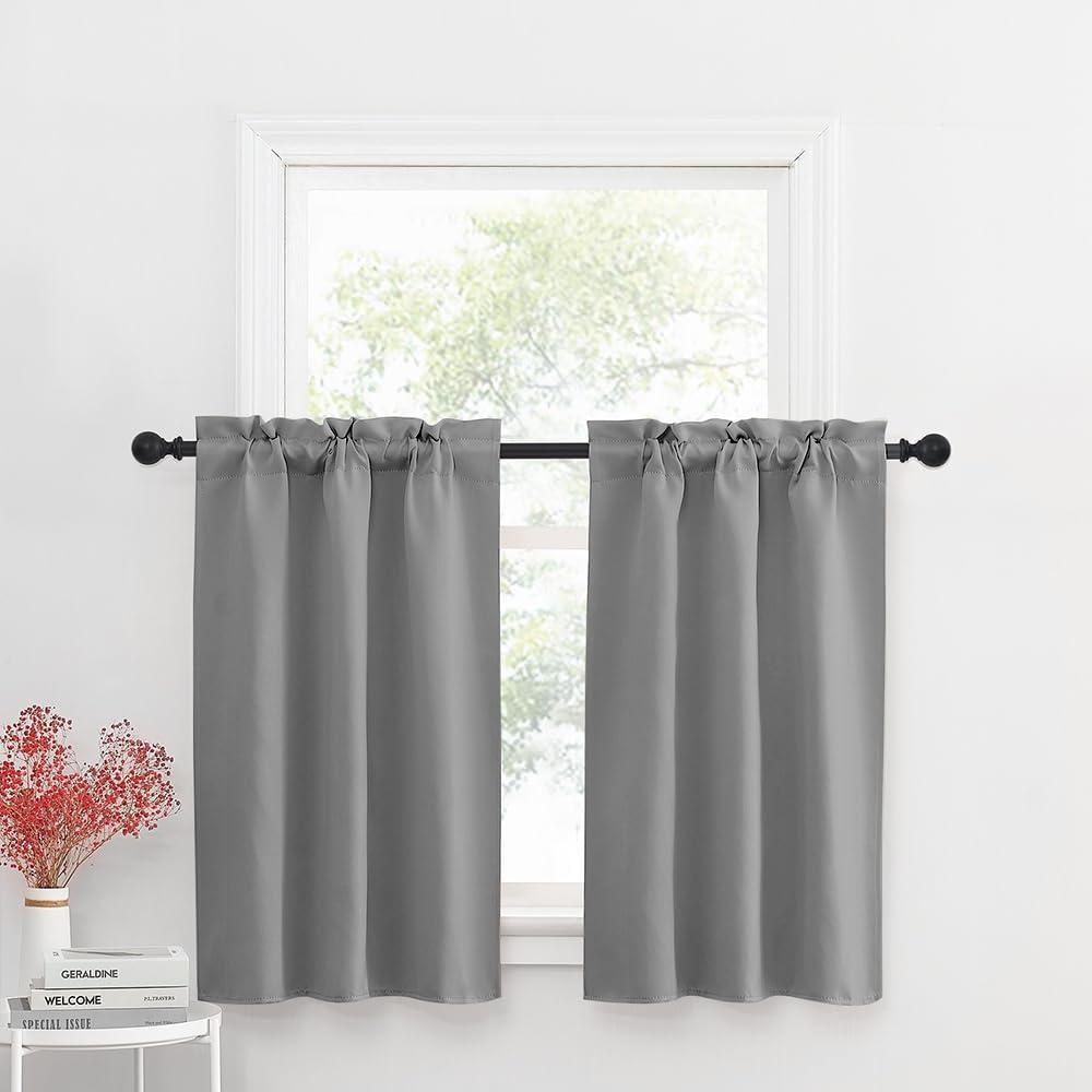 NICETOWN Half Window Curtains - Thermal Insulated Rod Pocket Blackout Curtain Tiers for Kids Nursery Kitchen Dining Bathroom Laundry, 34 inch Wide x 36 inch Long, Greyish White, 1 Pair(Silver Grey)