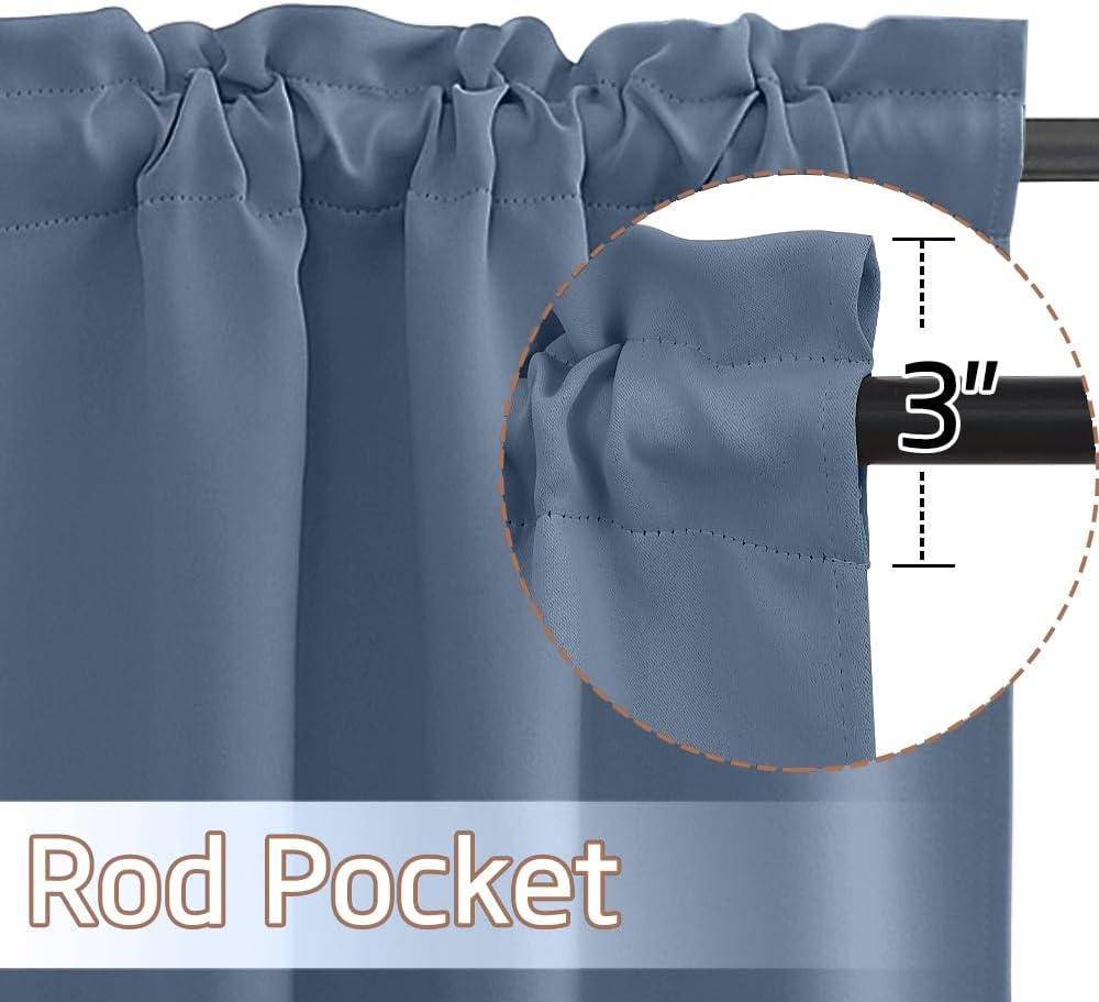 imageNICETOWN Half Window Curtains  Thermal Insulated Rod Pocket Blackout Curtain Tiers for Kids Nursery Kitchen Dining Bathroom Laundry 34 inch Wide x 36 inch Long Greyish White 1 PairStone Blue