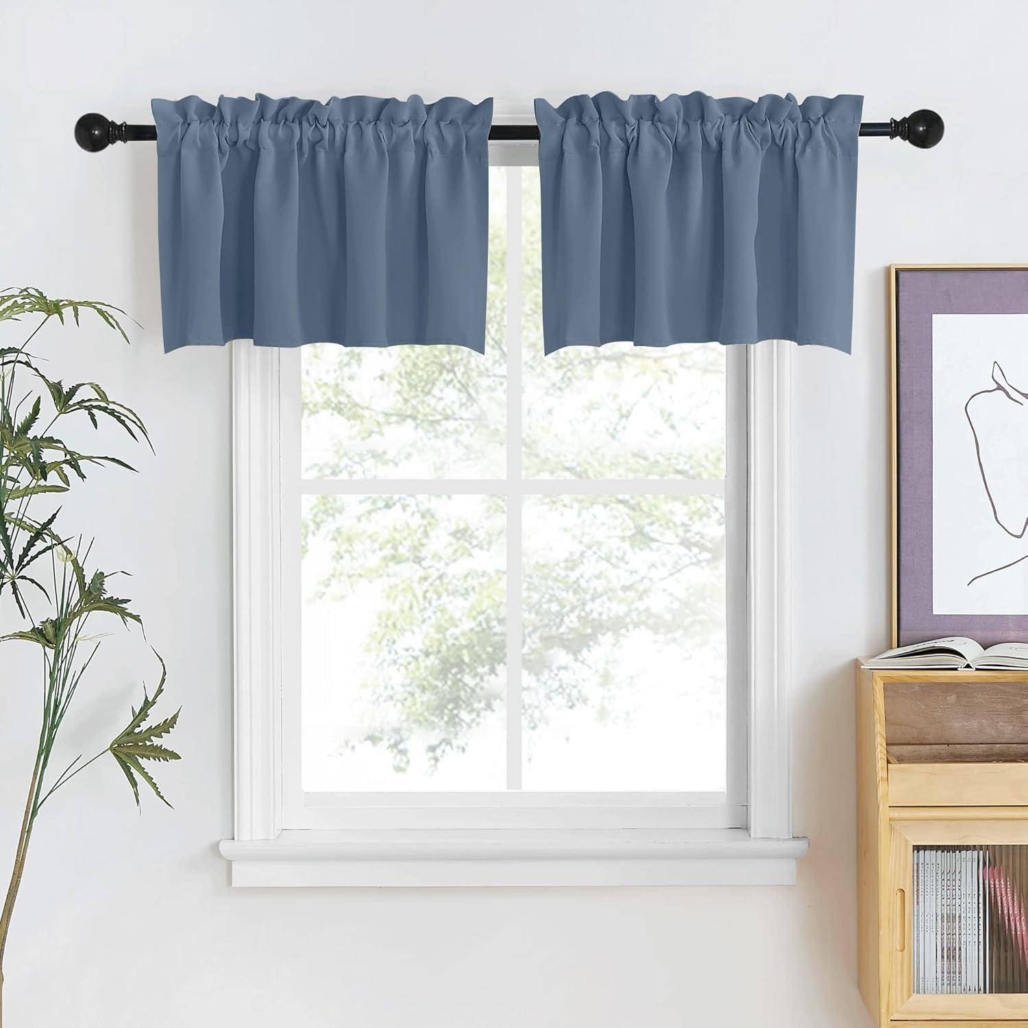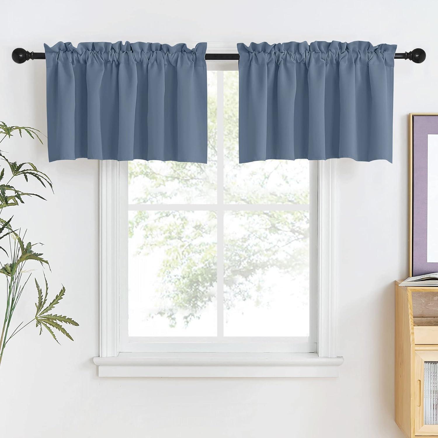 NICETOWN Half Window Curtains – Thermal Insulated Rod Pocket Blackout Curtain Tiers for Kids Nursery Kitchen Dining Bathroom Laundry, 34 inch Wide x 36 inch Long, Greyish White, 1 Pair(Stone Blue)