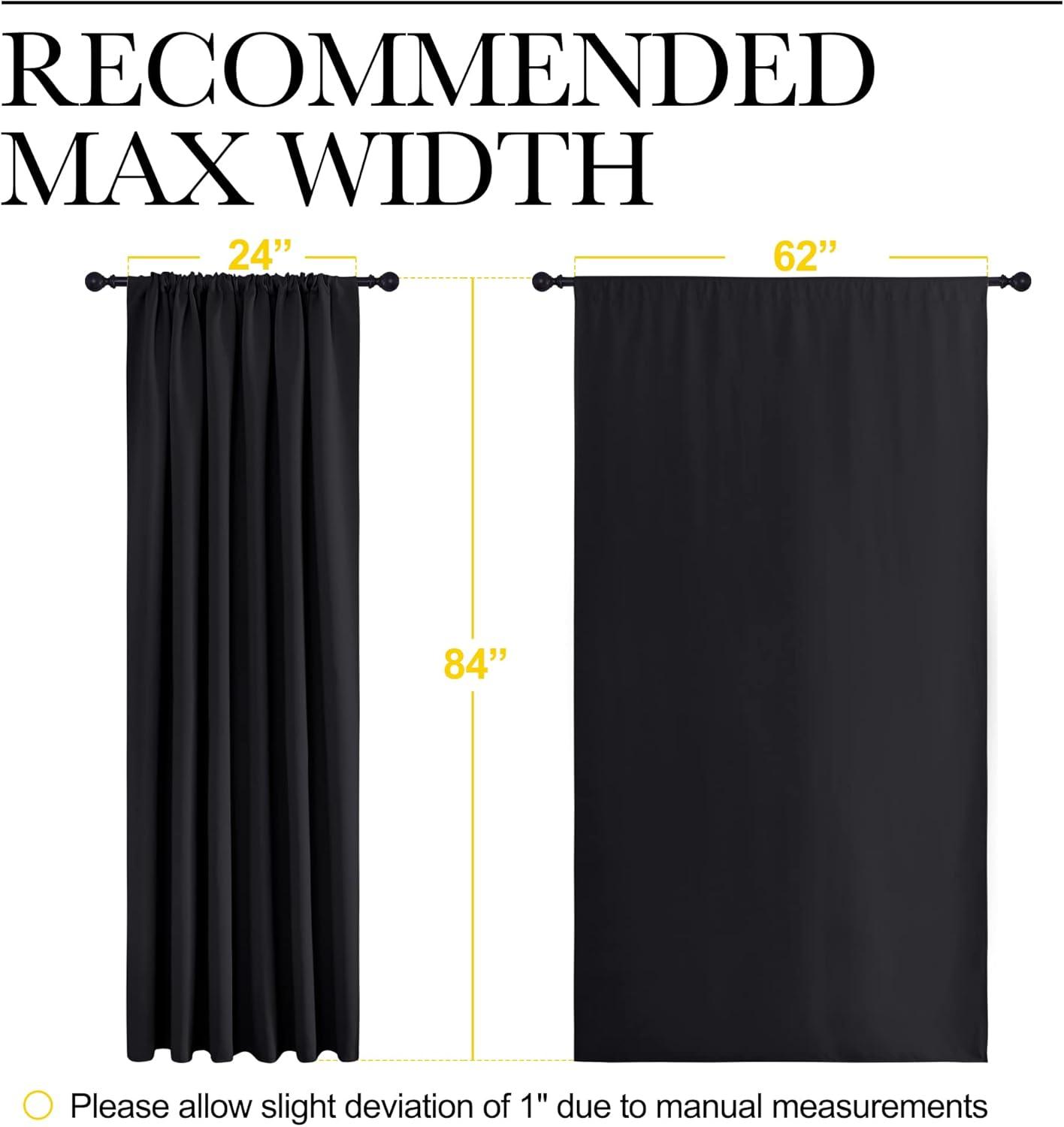 ELEGANT DESIGN: 2 panels per package. Each Blackout Curtain Panel measures 62 inches wide x 84 inches long. The NICETOWN drapery is constructed with rod pocket, fitting the curtain rod of your choice up to 2 inches in diameter, making the curtains easy to install and slide.