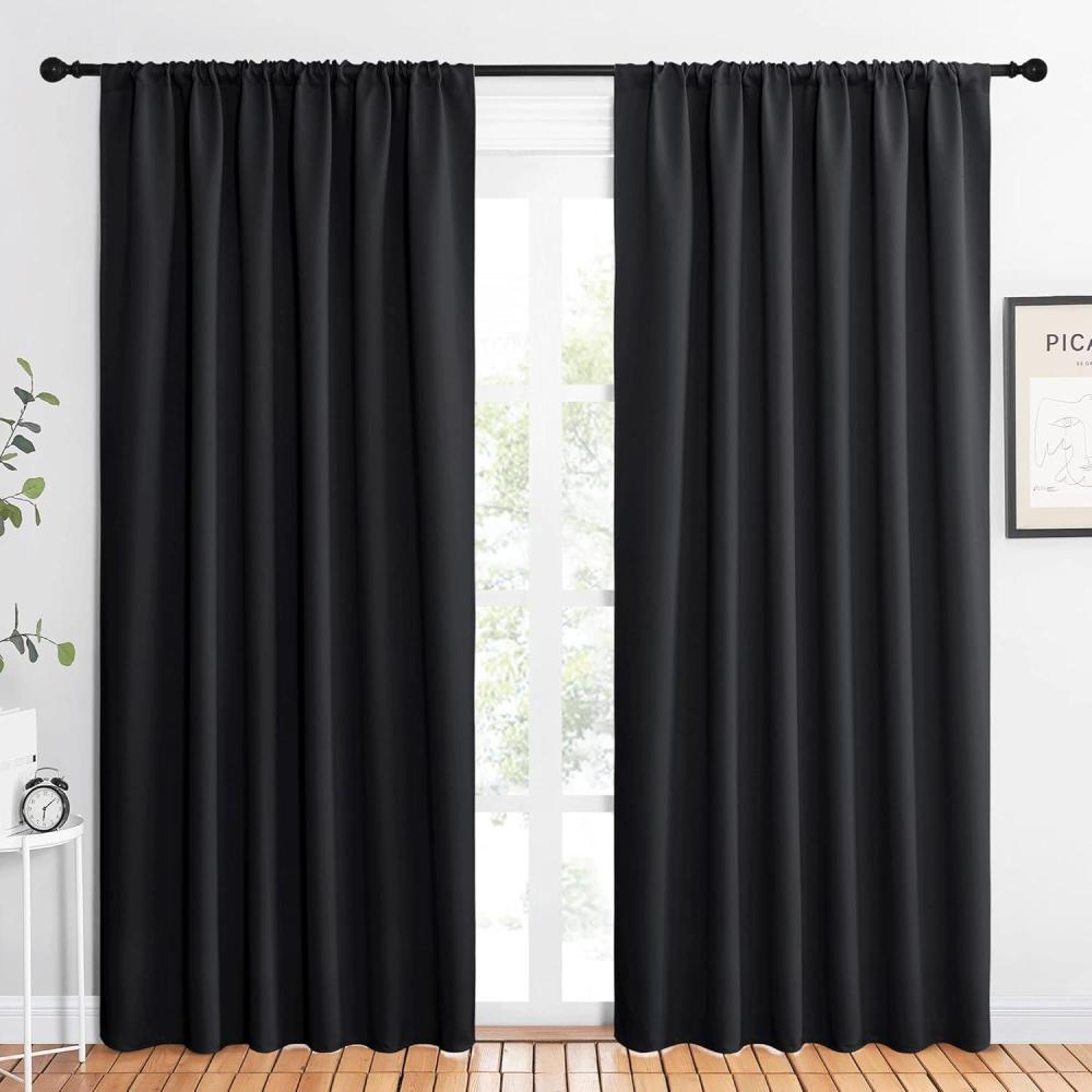 GOOD CHOICE: Perfect drapery option for anyone seeking to block daylight, take a nap, or keep sun glare off your TV. Besides, you can choose blackout valance and sheer curtains in the NICETOWN store to match. Such curtain sets provide a more permanent harmonious window dressing.