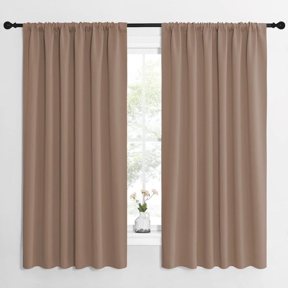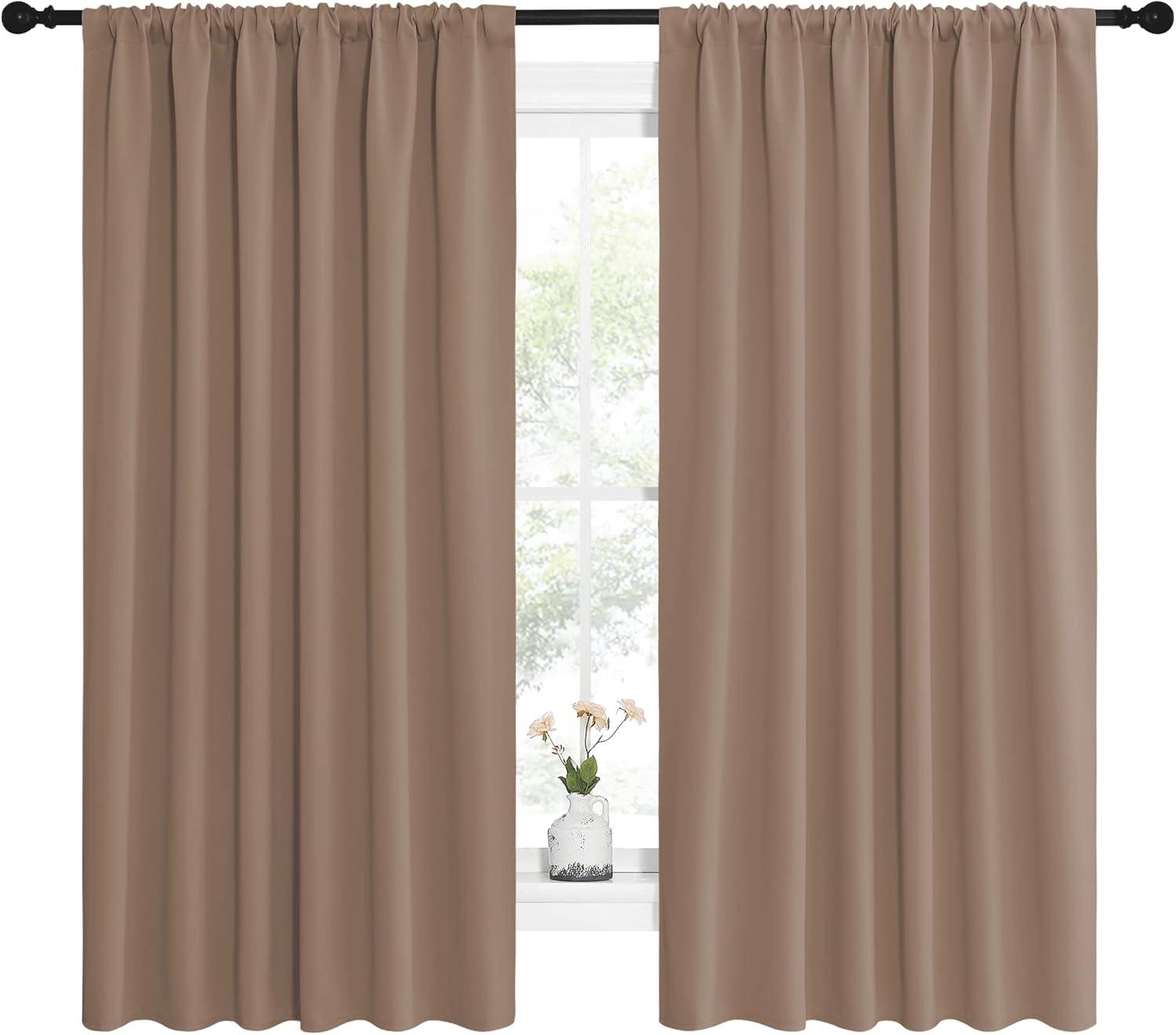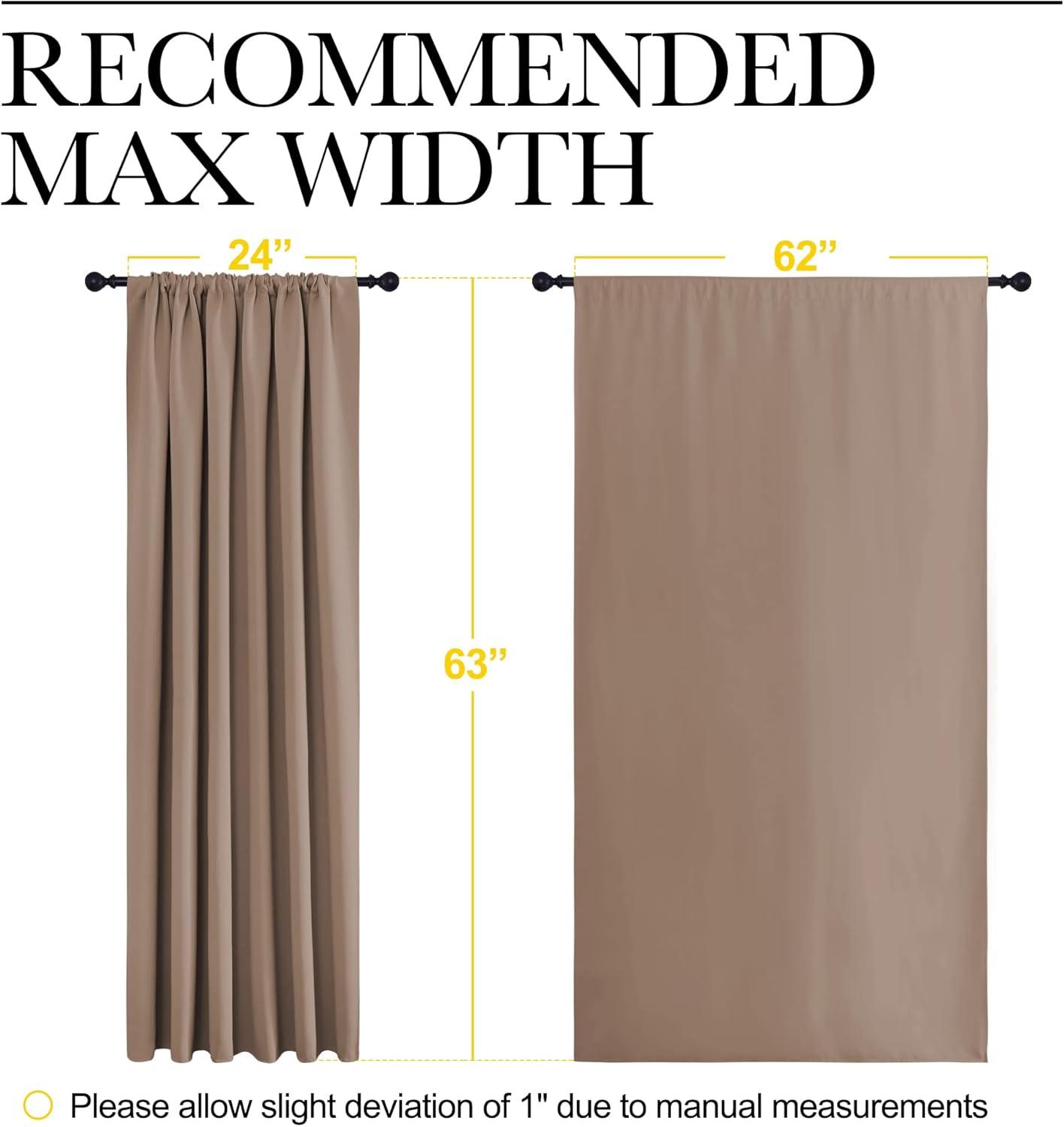 ELEGANT DESIGN: 2 panels per package. Each Blackout Curtain Panel measures 62 inches wide x 63 inches long. The NICETOWN drapery is constructed with rod pocket, fitting the curtain rod of your choice up to 2 inches in diameter, making the curtains easy to install and slide.