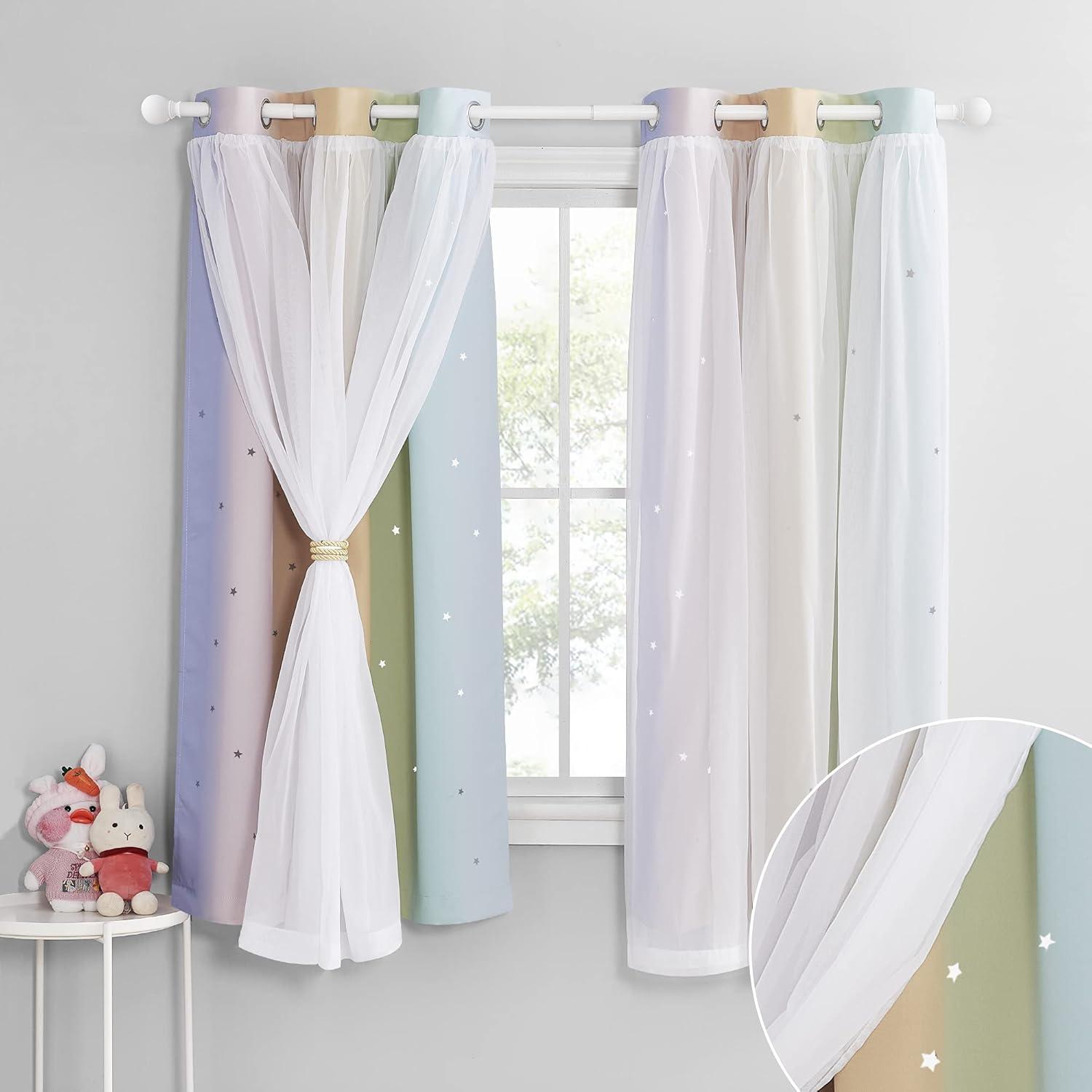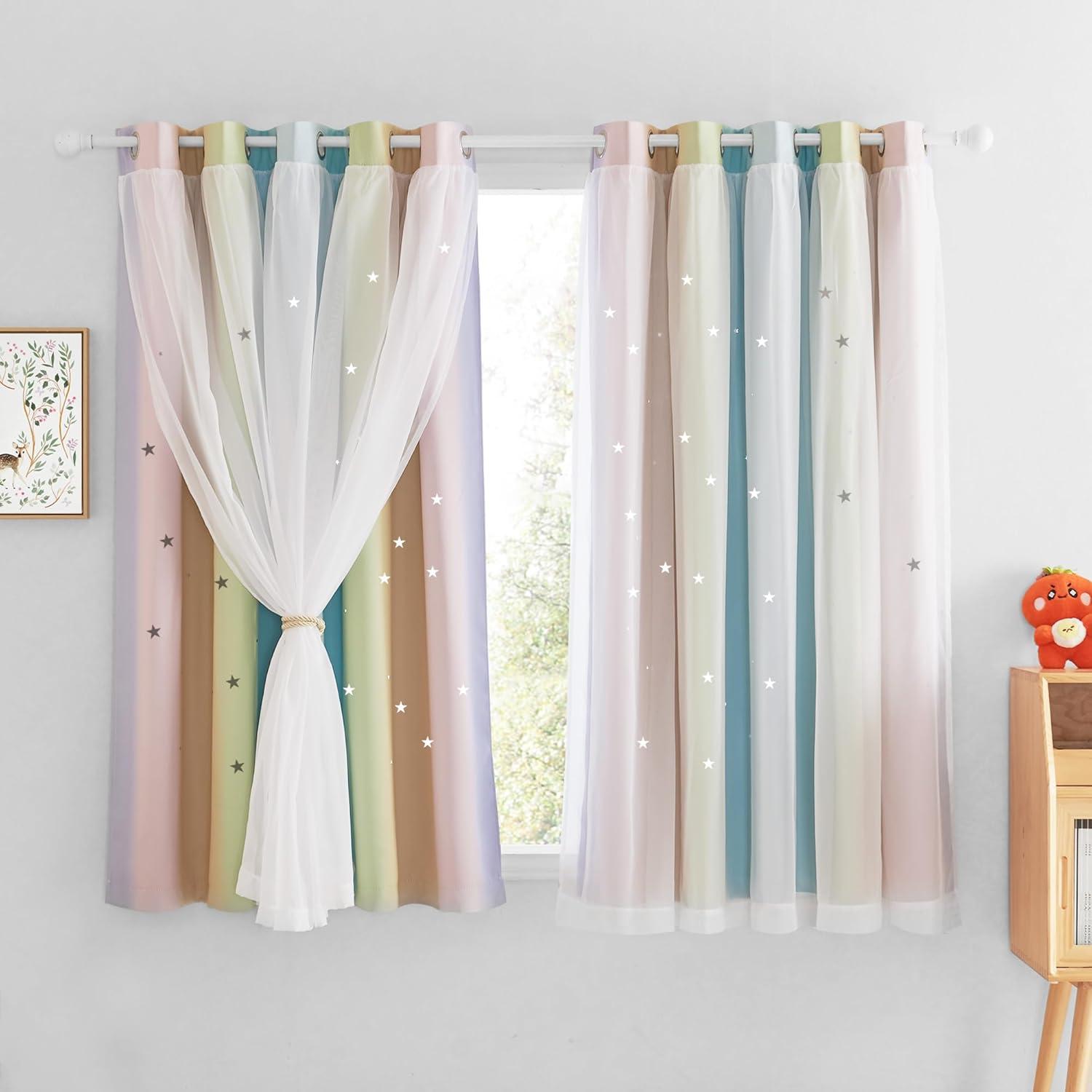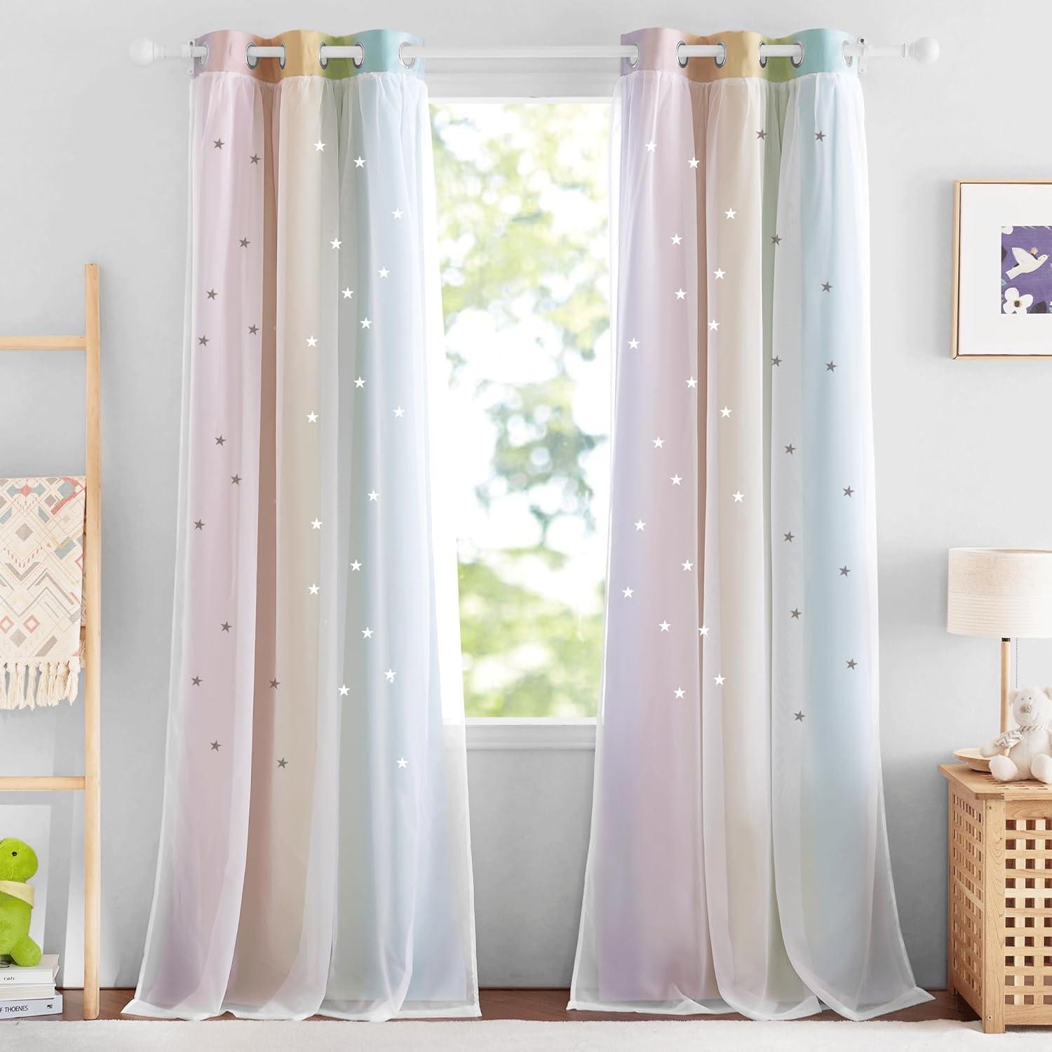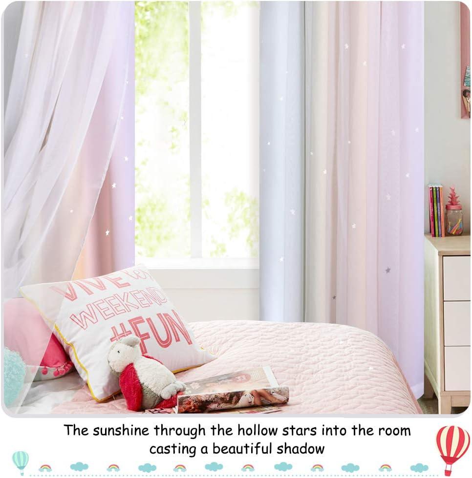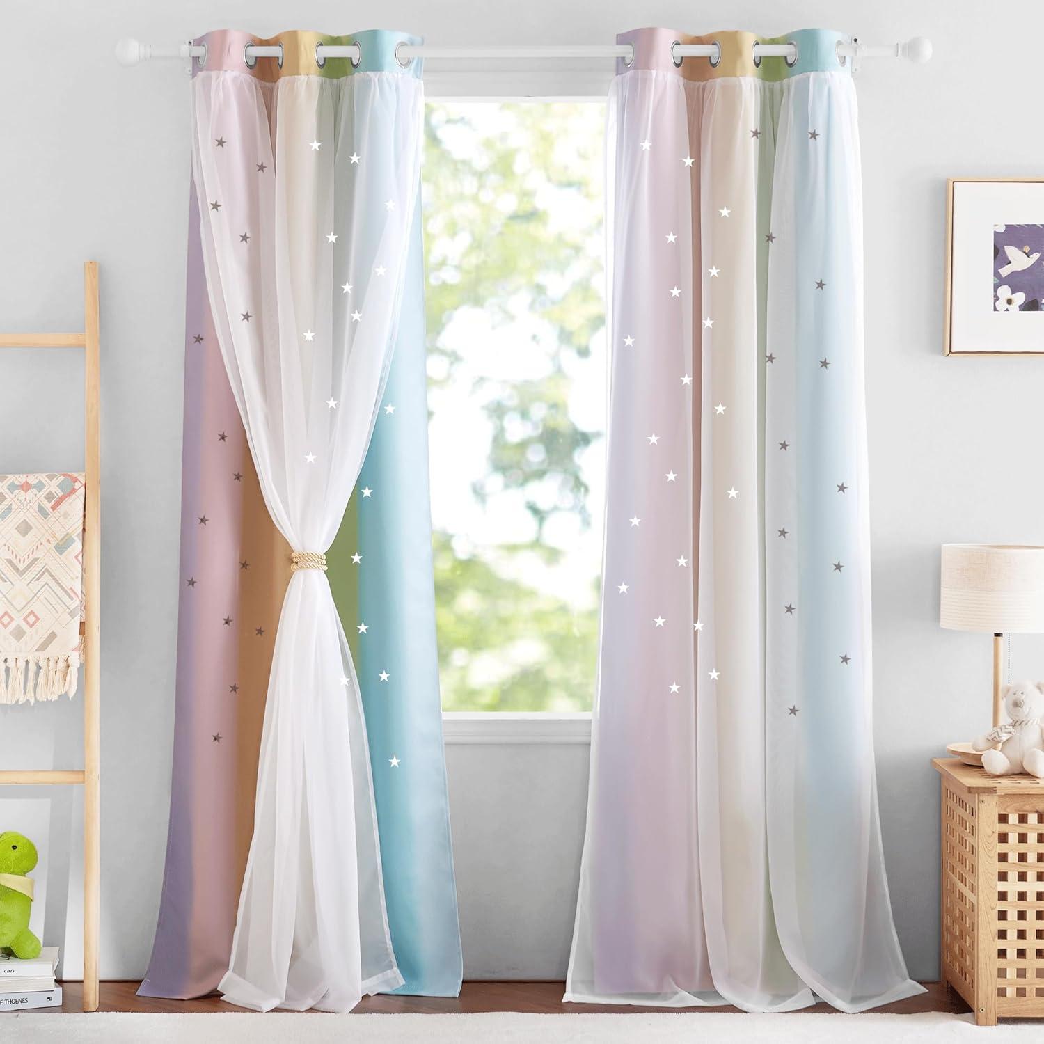 imageNICETOWN Kids Girls Bedroom Pink Curtains Star Cutout Blackout with White Sheer Pastel Nursery Window Curtain Panels for Thanksgiving Lavender Pink 2Pcs W52 x L84Rainbow1