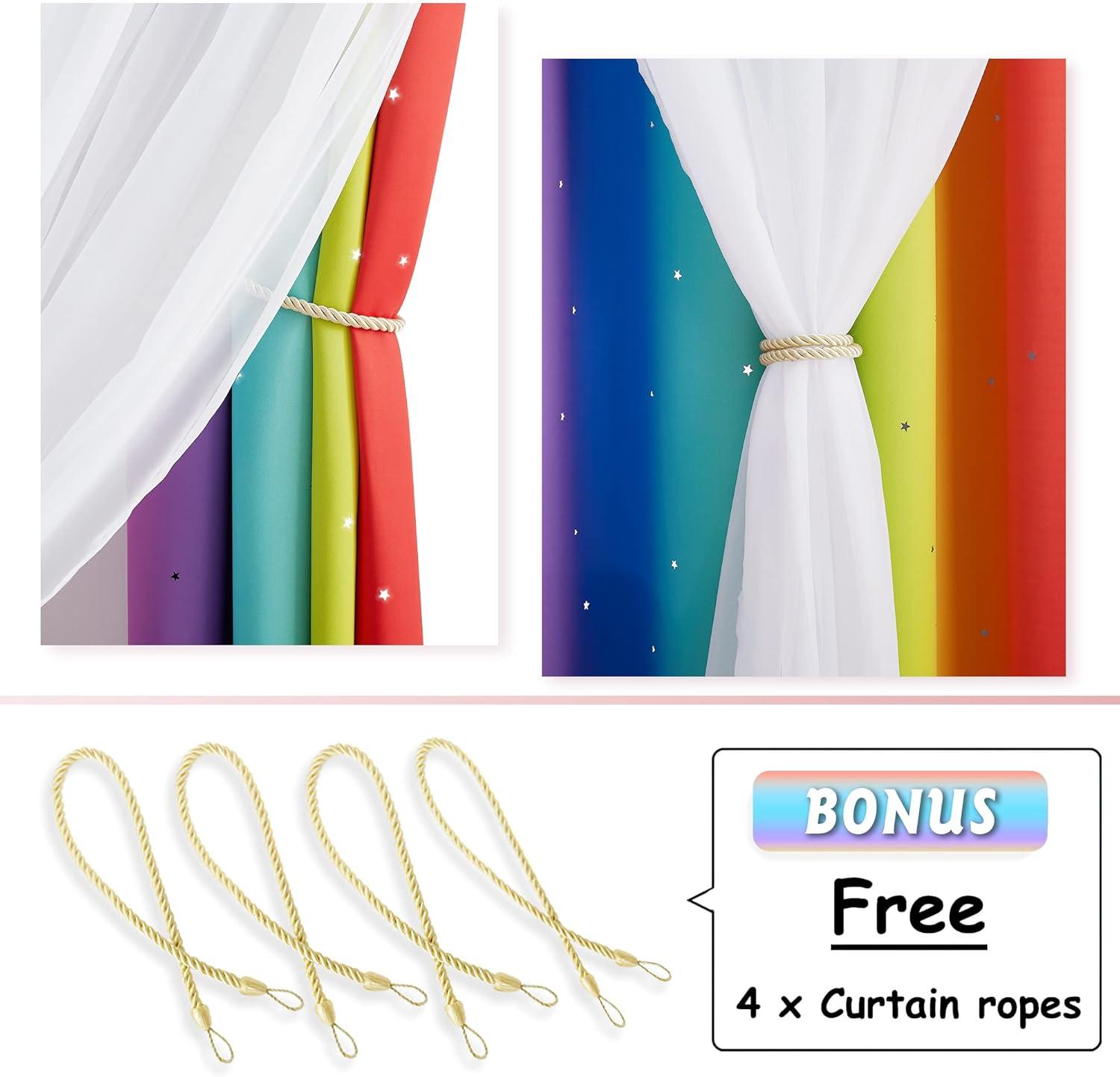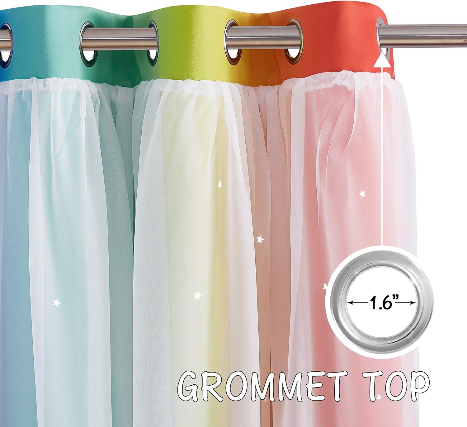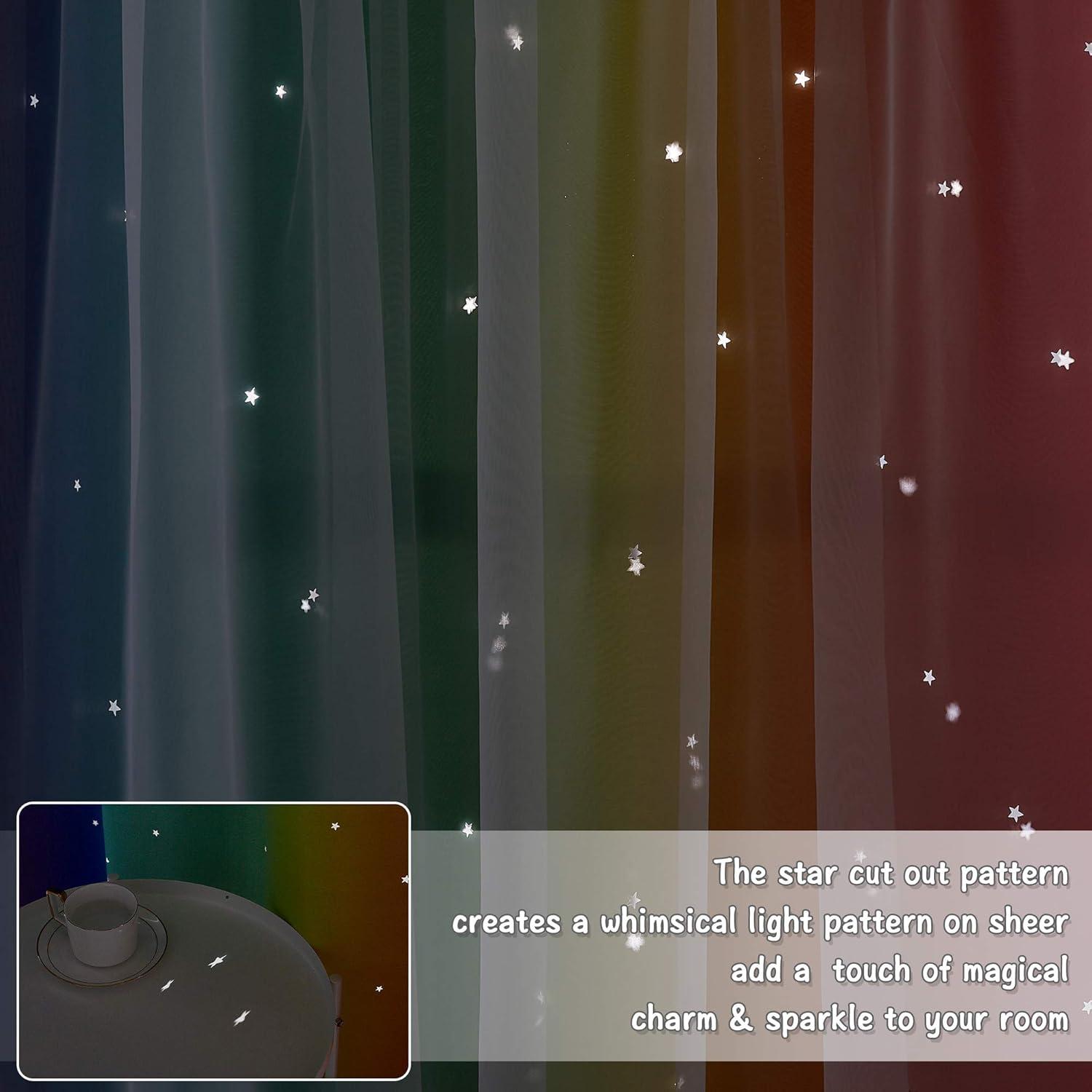 imageNICETOWN Kids Girls Bedroom Pink Curtains Star Cutout Blackout with White Sheer Pastel Nursery Window Curtain Panels for Thanksgiving Lavender Pink 2Pcs W52 x L84Rainbow3