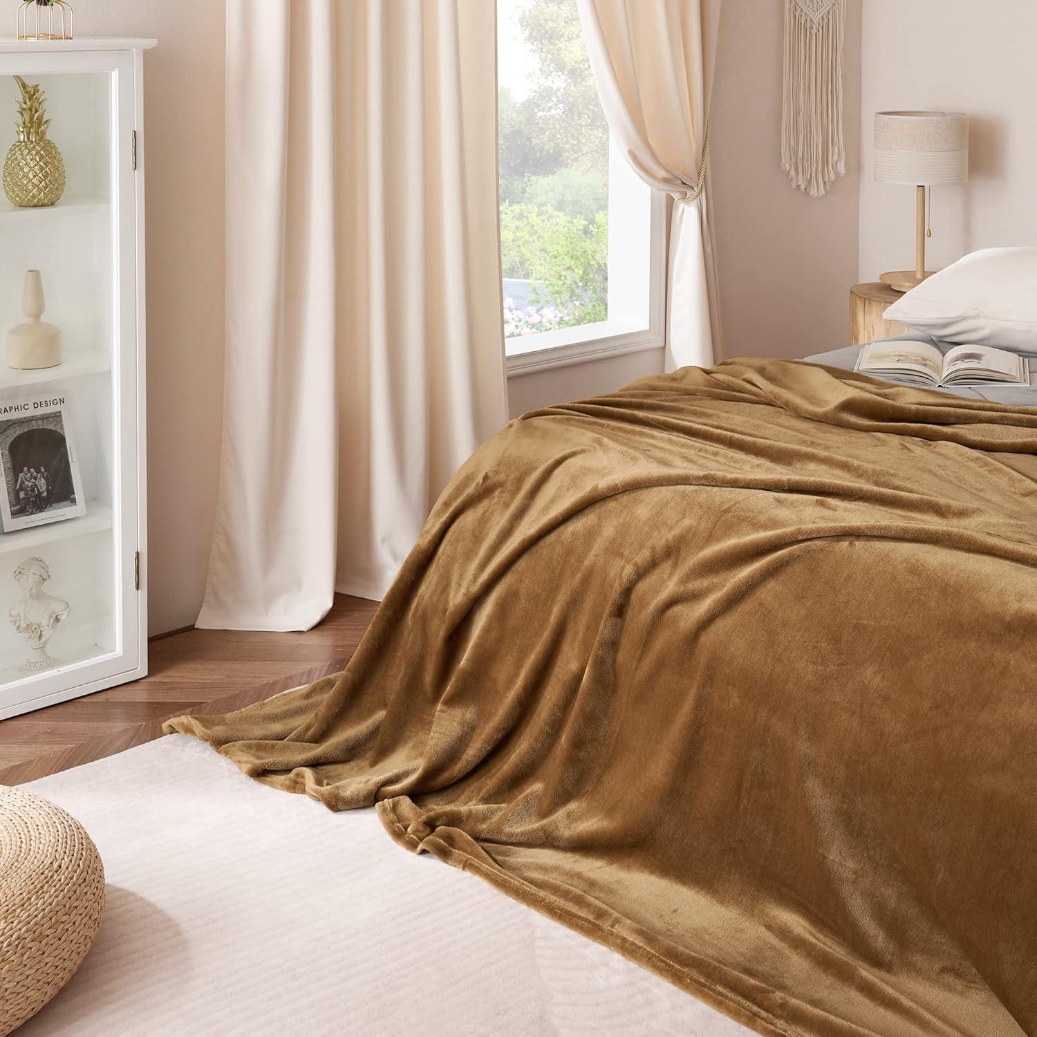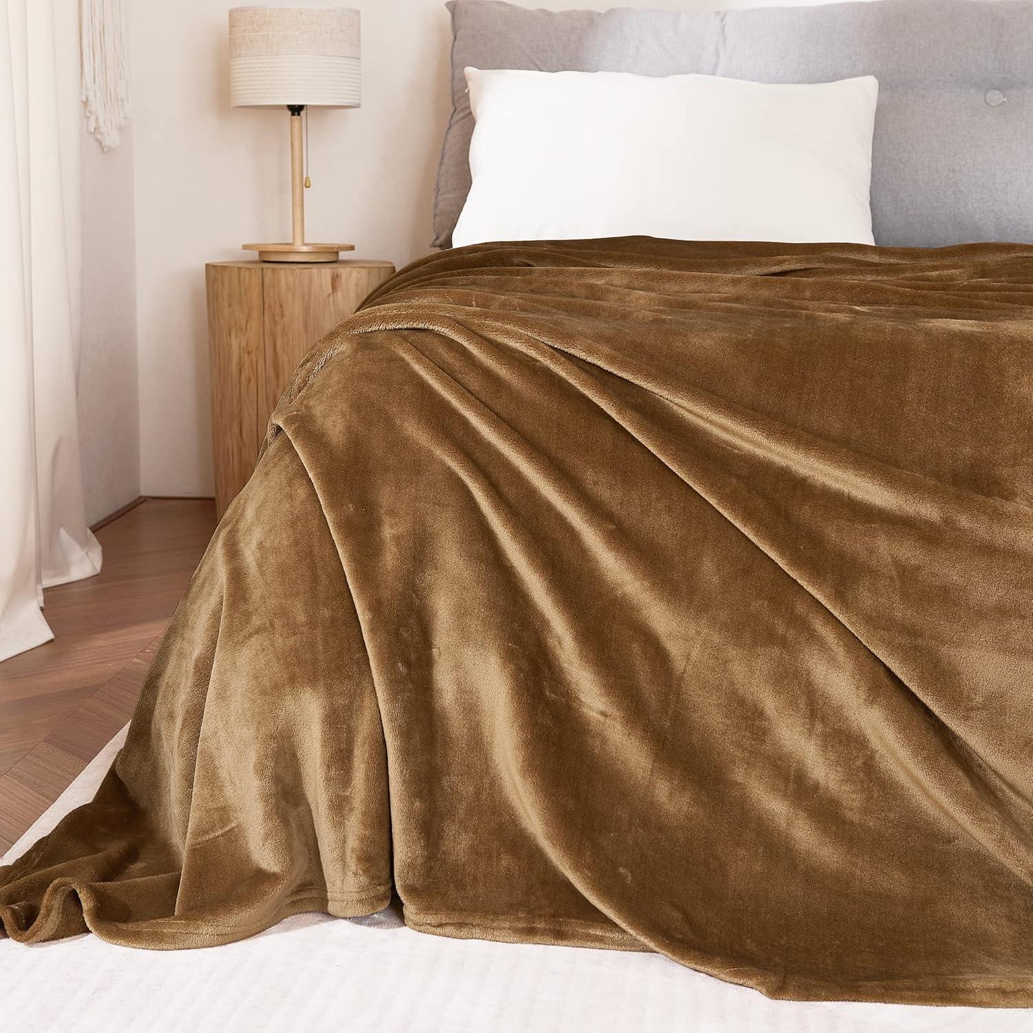 NICETOWN King Size Warm Sherpa Fleece Blanket Comfort Dual Sided Super Soft Fleece Throw Blanket for Bed, Ultra Comfy Fuzzy Reversible Thick for Winter, 90″ x 108″, Orange(Coffee)