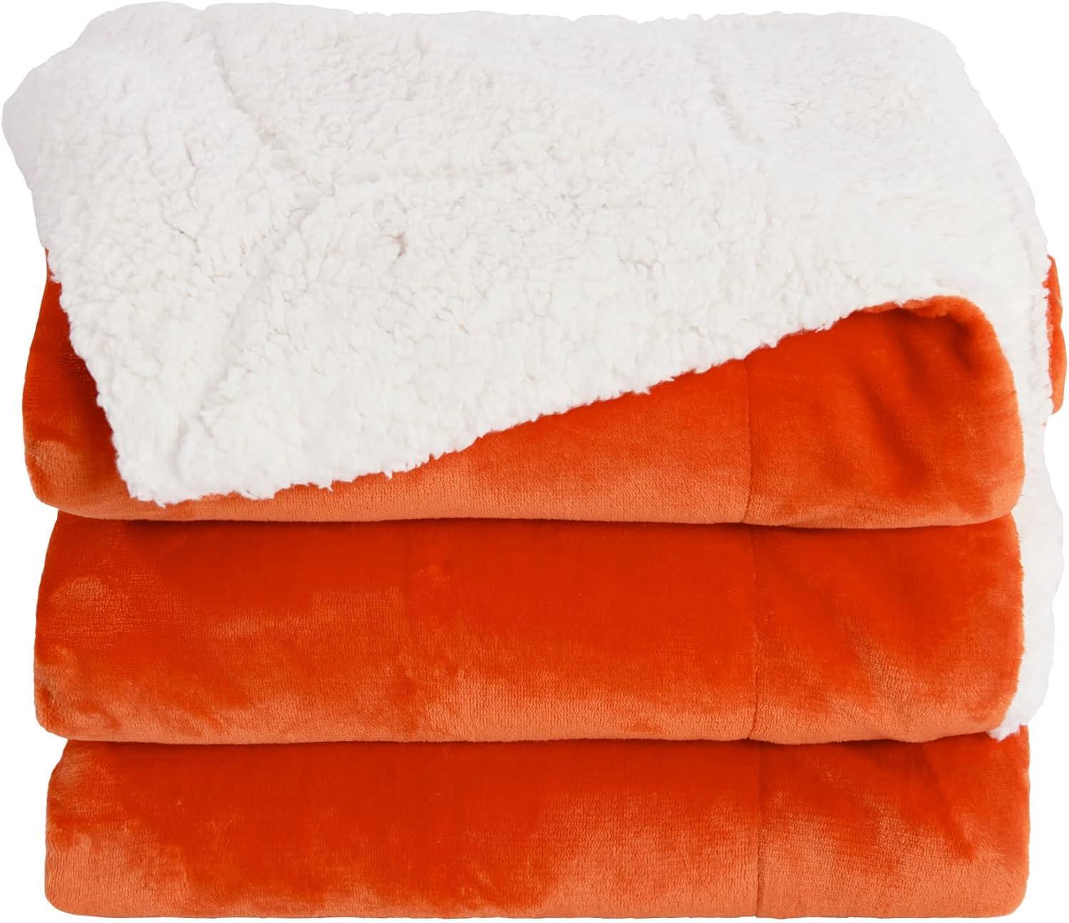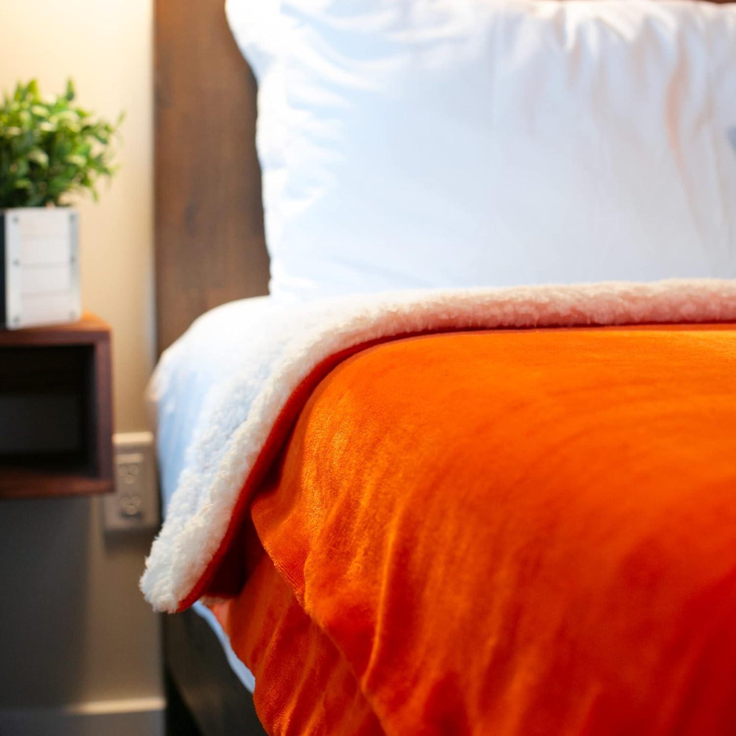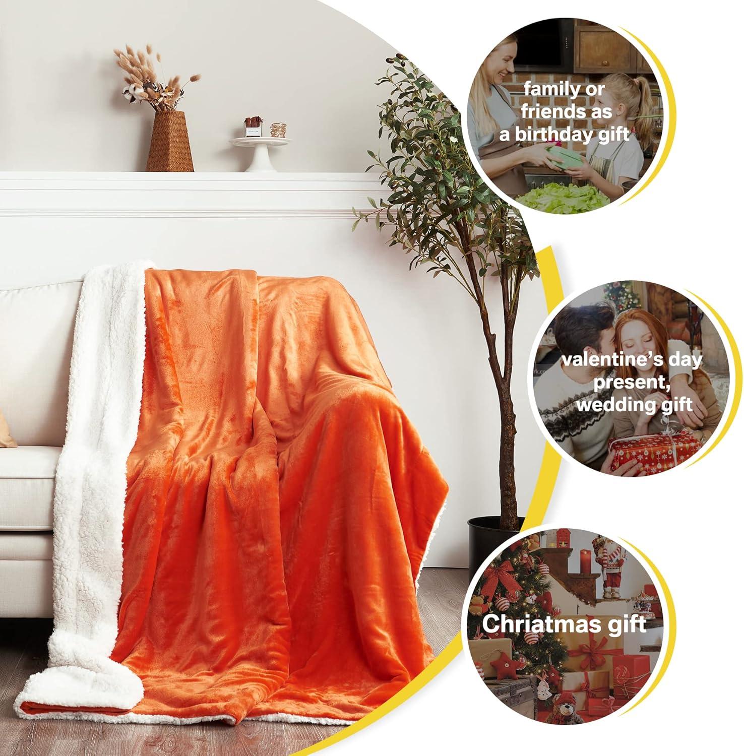 NICETOWN King Size Warm Sherpa Fleece Blanket Comfort Dual Sided Super Soft Fleece Throw Blanket for Bed, Ultra Comfy Fuzzy Reversible Thick for Winter, 90″ x 108″, Orange(Sherpa & Fleece – Orange)