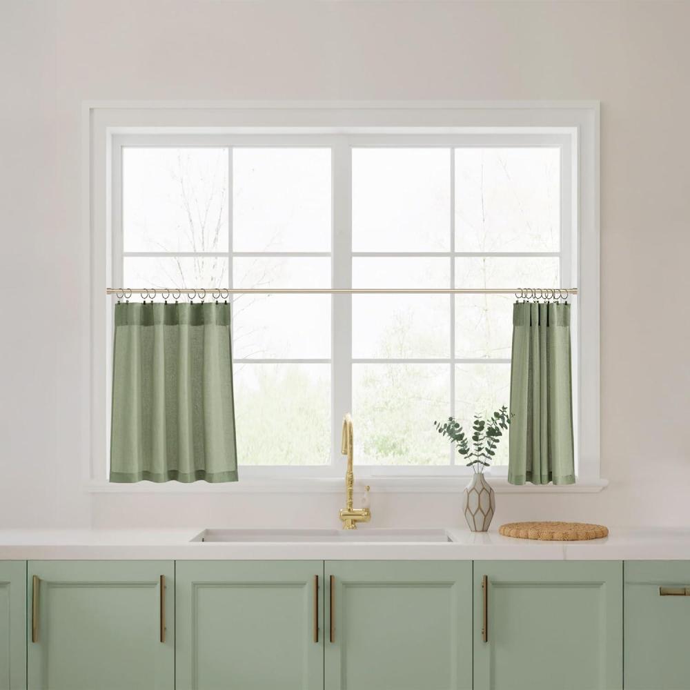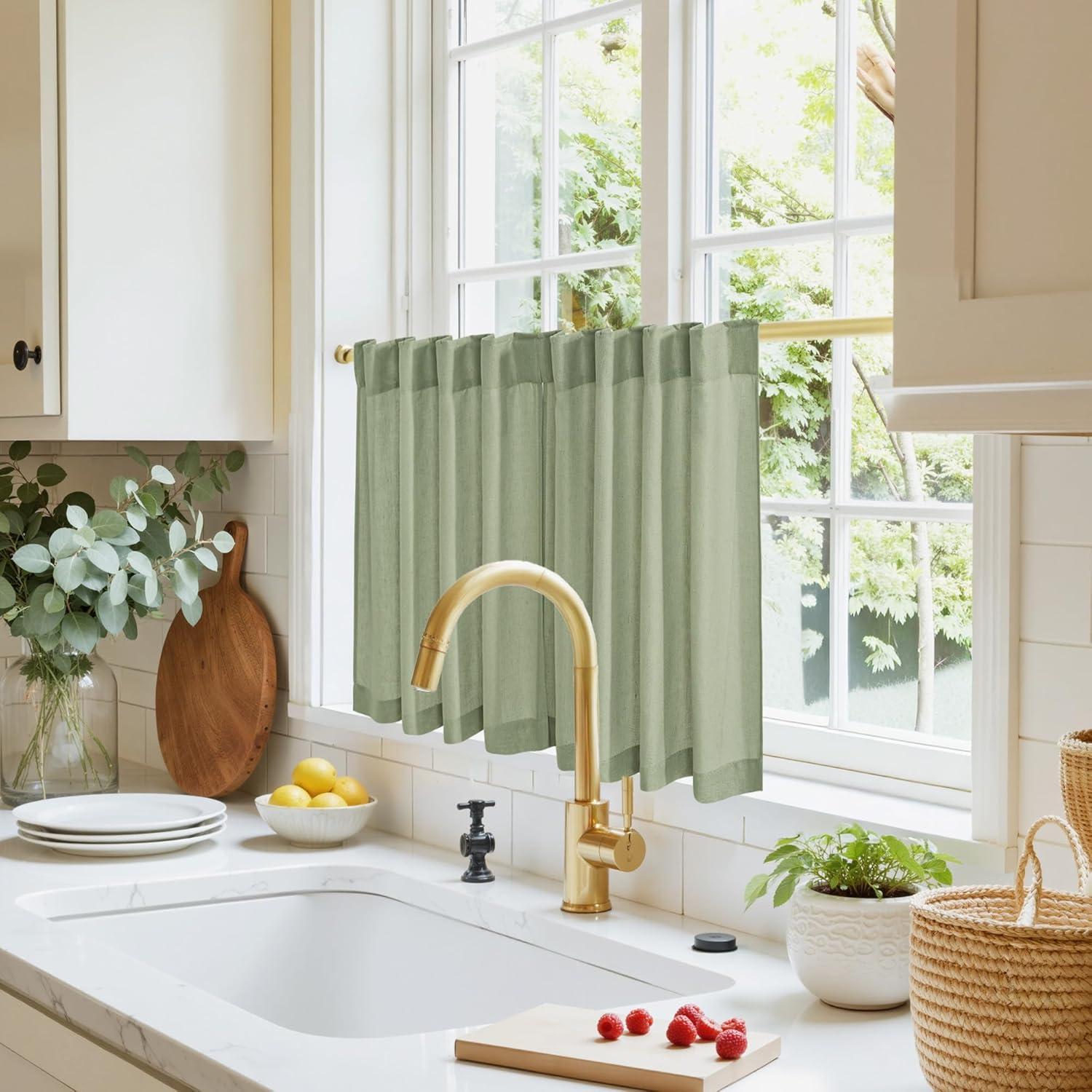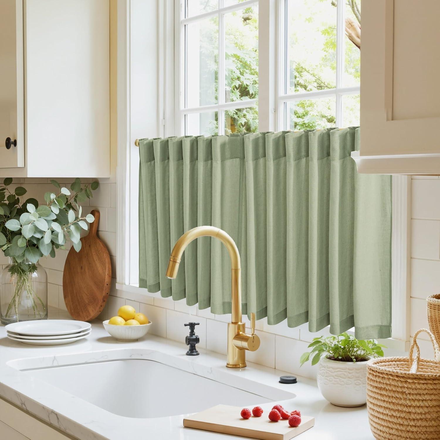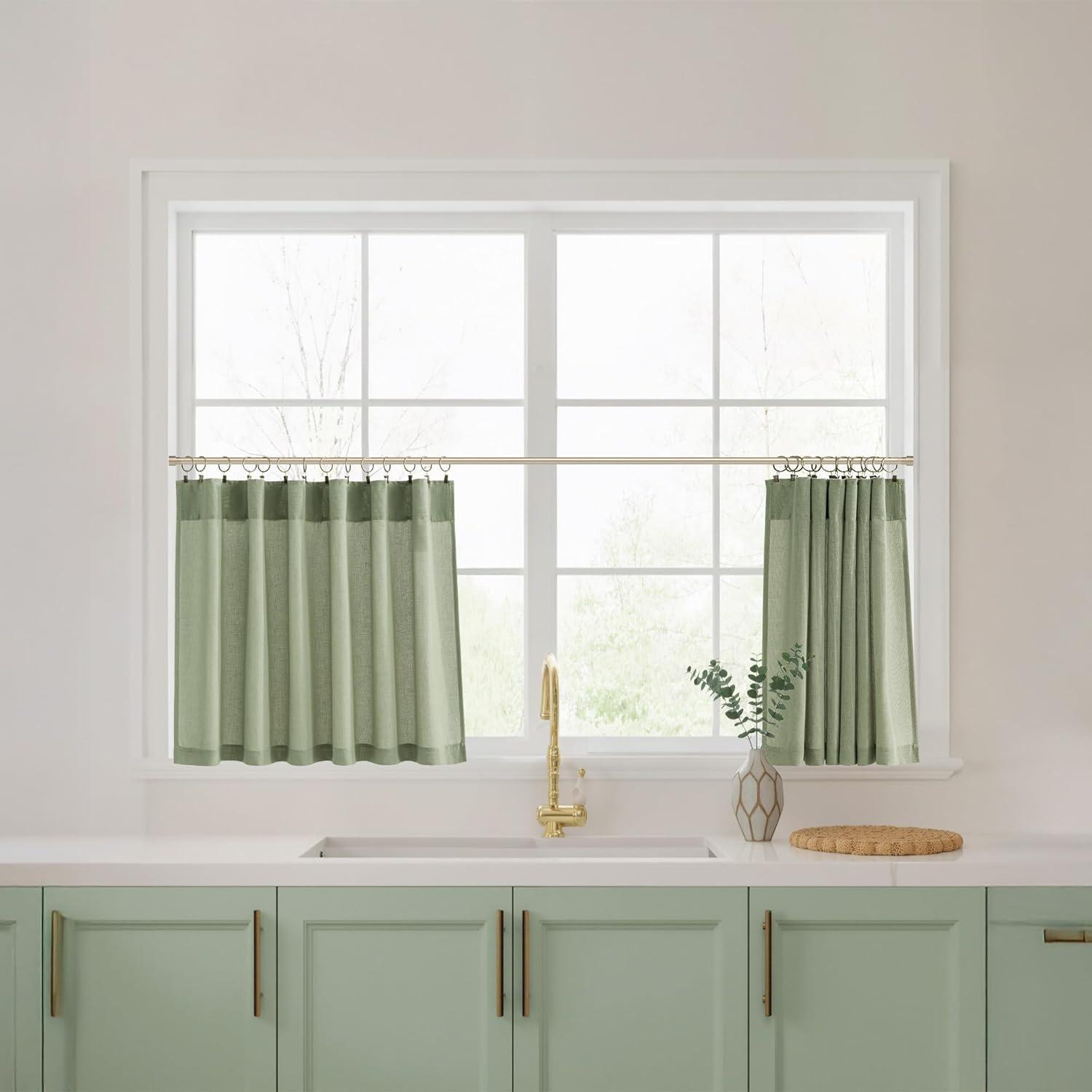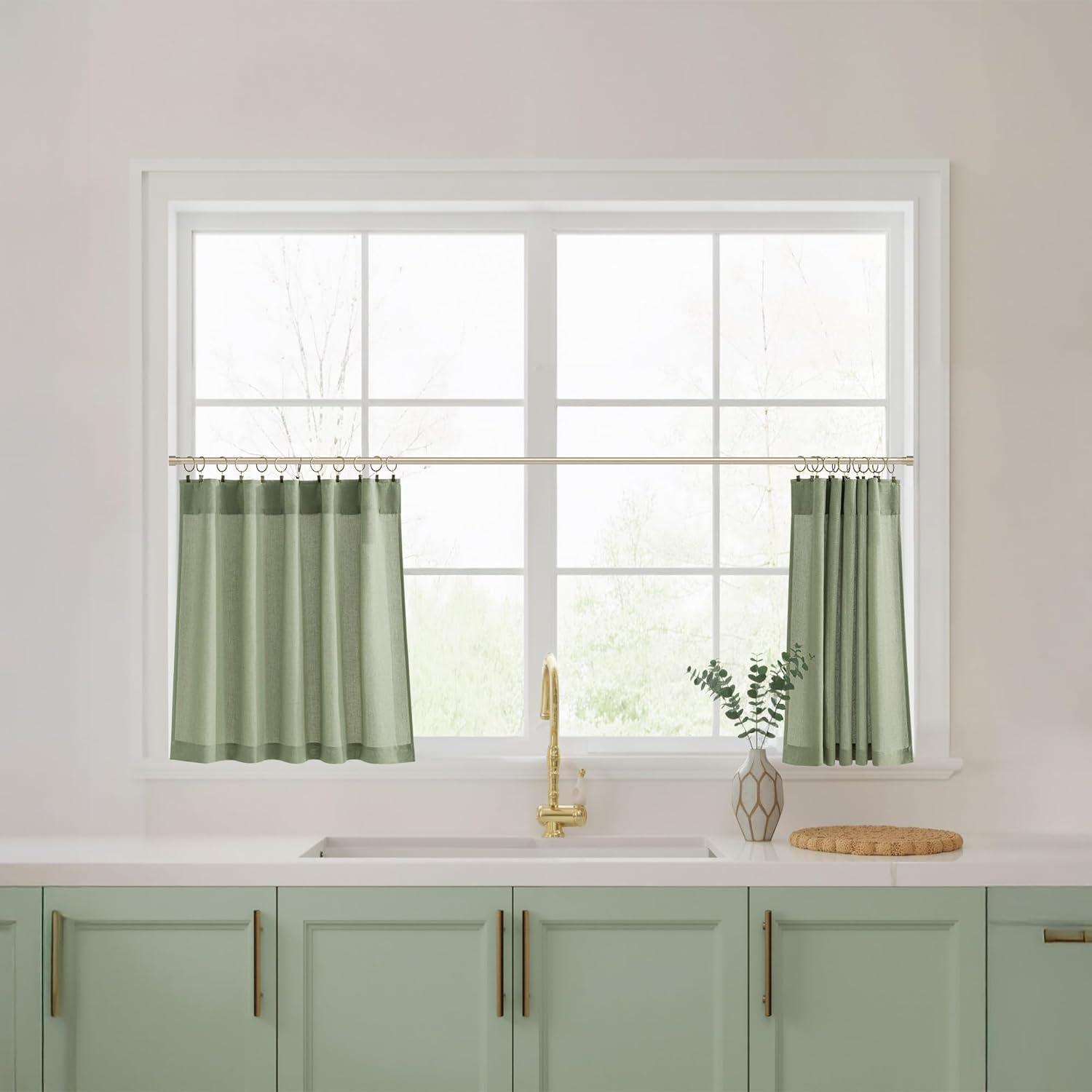 NICETOWN Kitchen Curtain Over Sink Window Set Farmhouse 24 Inch Length Small Bathroom Back Tab Pocket Linen Rustic Short Curtain Tier for Laundry Bay Window, 55×24, Nautal Beige, 1 Pair(Sage Green)