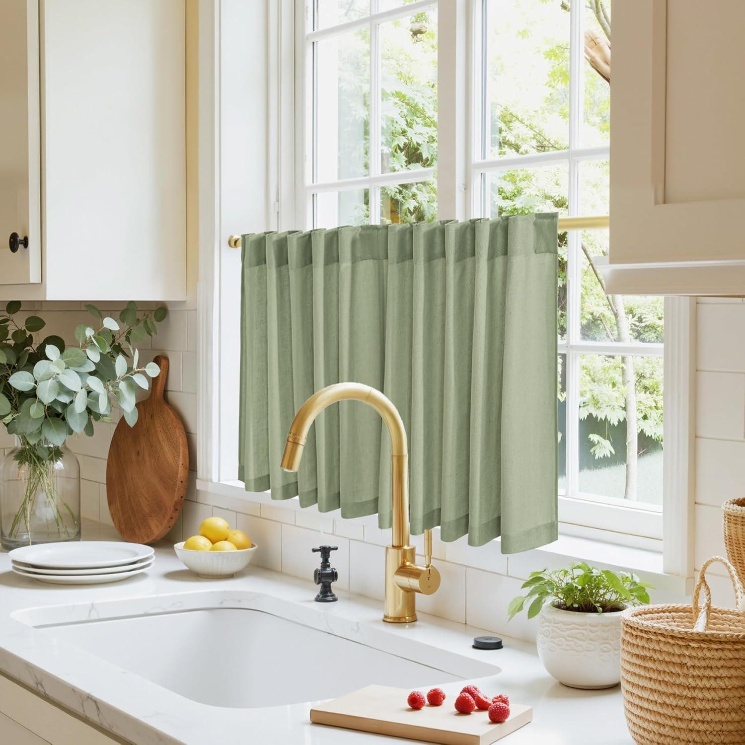 NICETOWN Kitchen Curtain Over Sink Window Set Farmhouse 24 Inch Length Small Bathroom Back Tab Pocket Linen Rustic Short Curtain Tier for Laundry Bay Window, 55x24, Nautal Beige, 1 Pair(Sage Green)