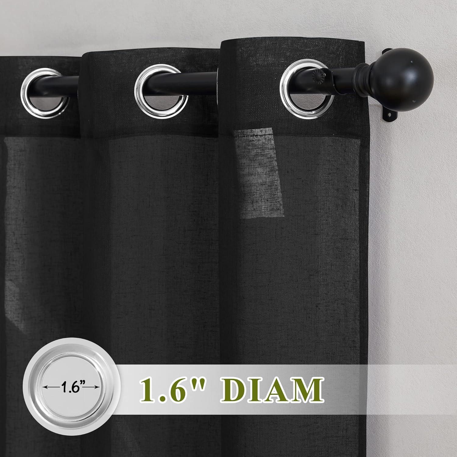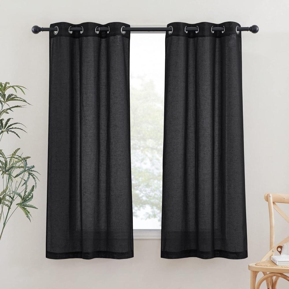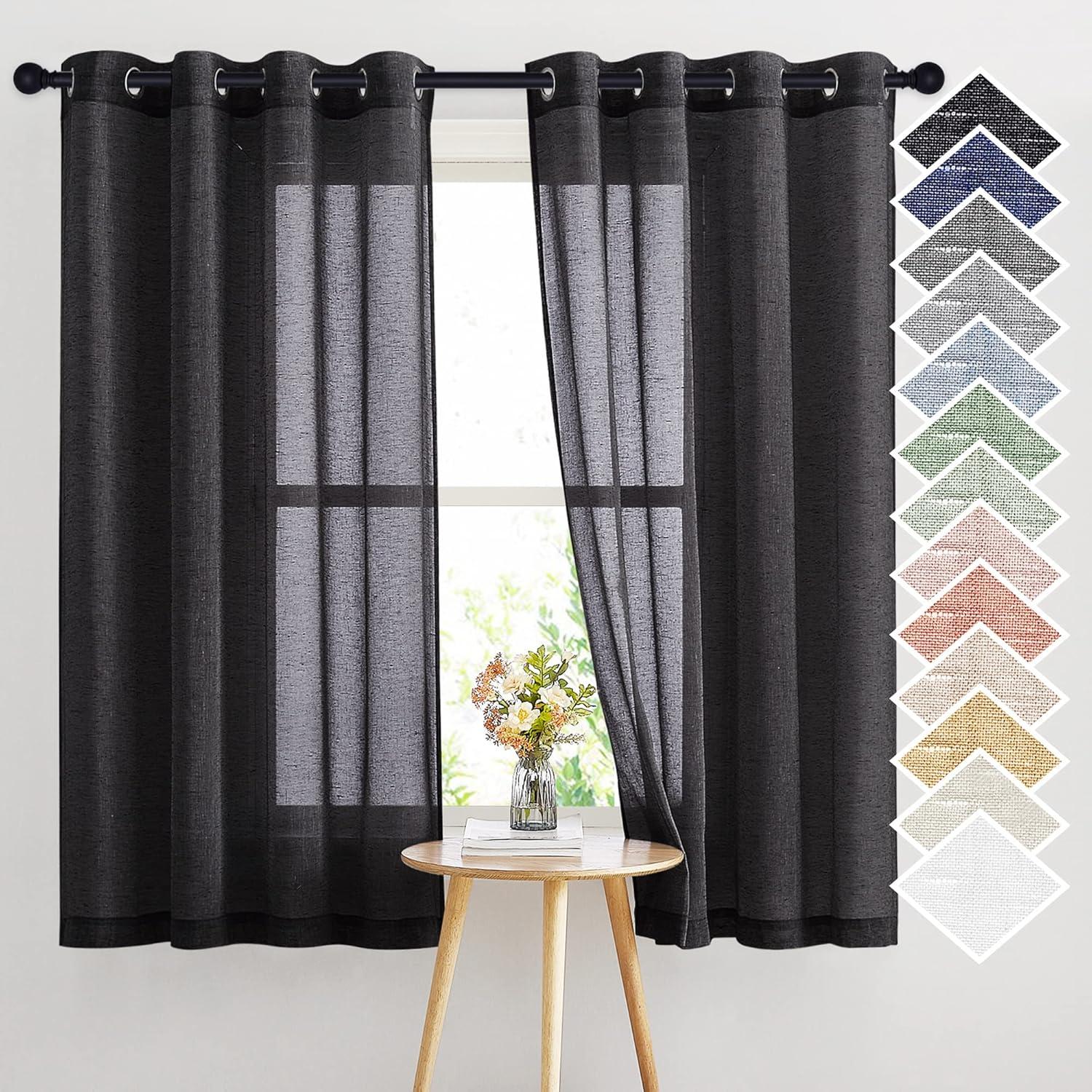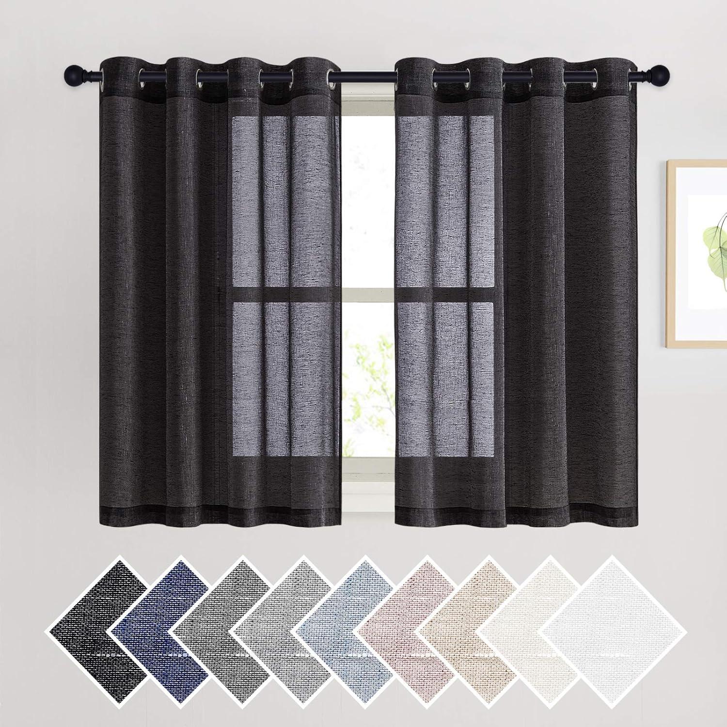 imageNICETOWN Kitchen Curtains 45 inch Length Grommet Short Curtains Semi Sheer Linen Drapes Privacy with Light Filtering for BedroomBasement Citrine W52 x L45 2 PanelsBlack