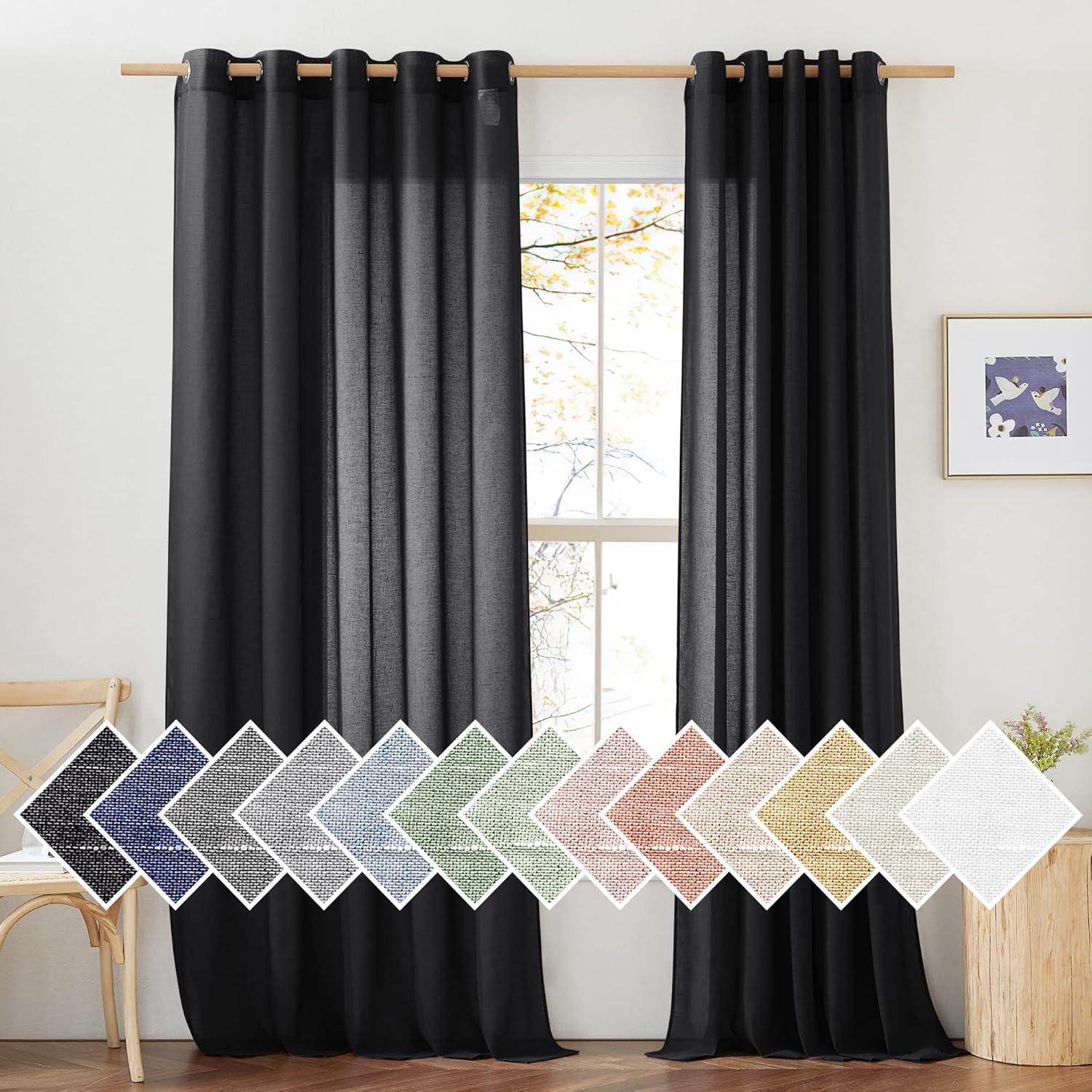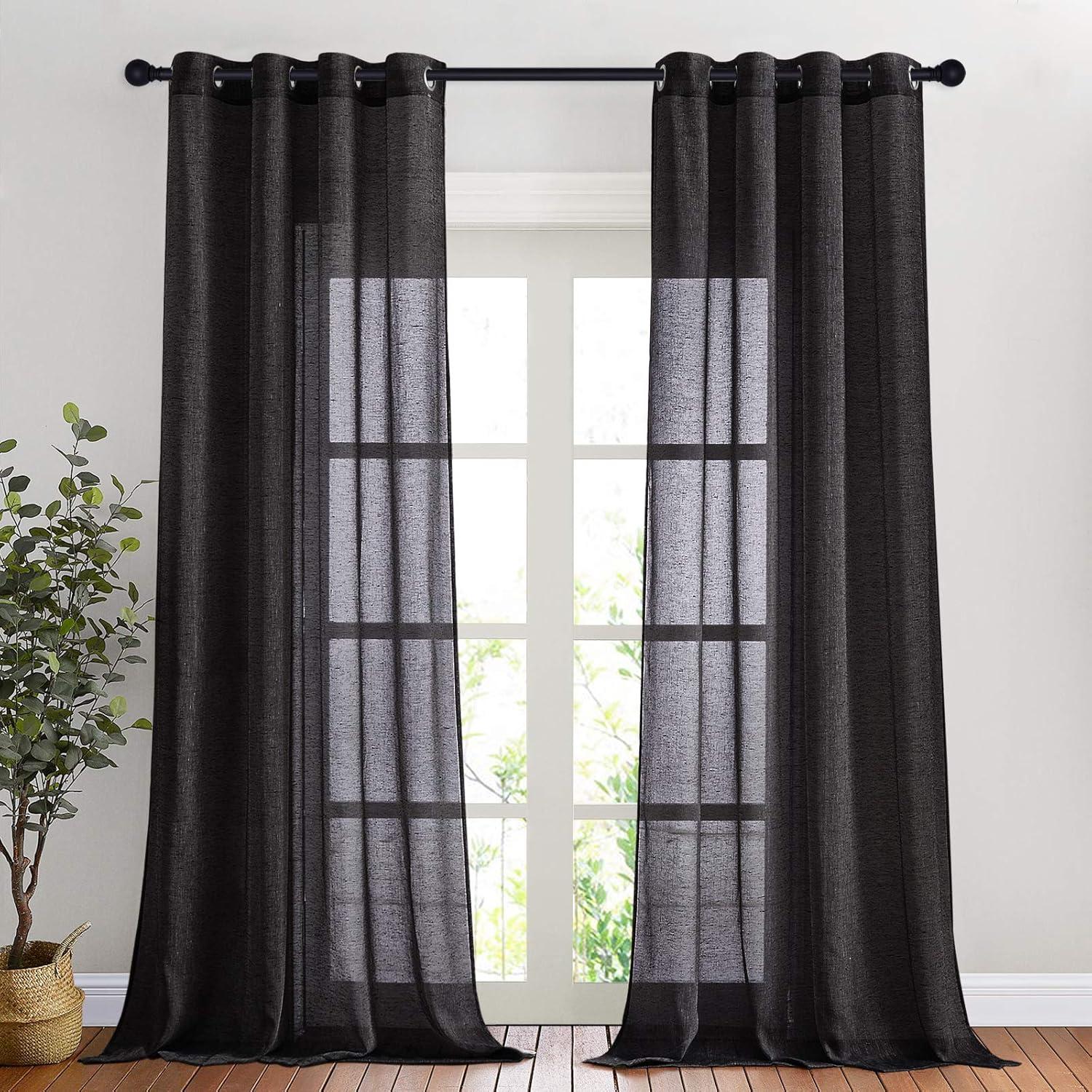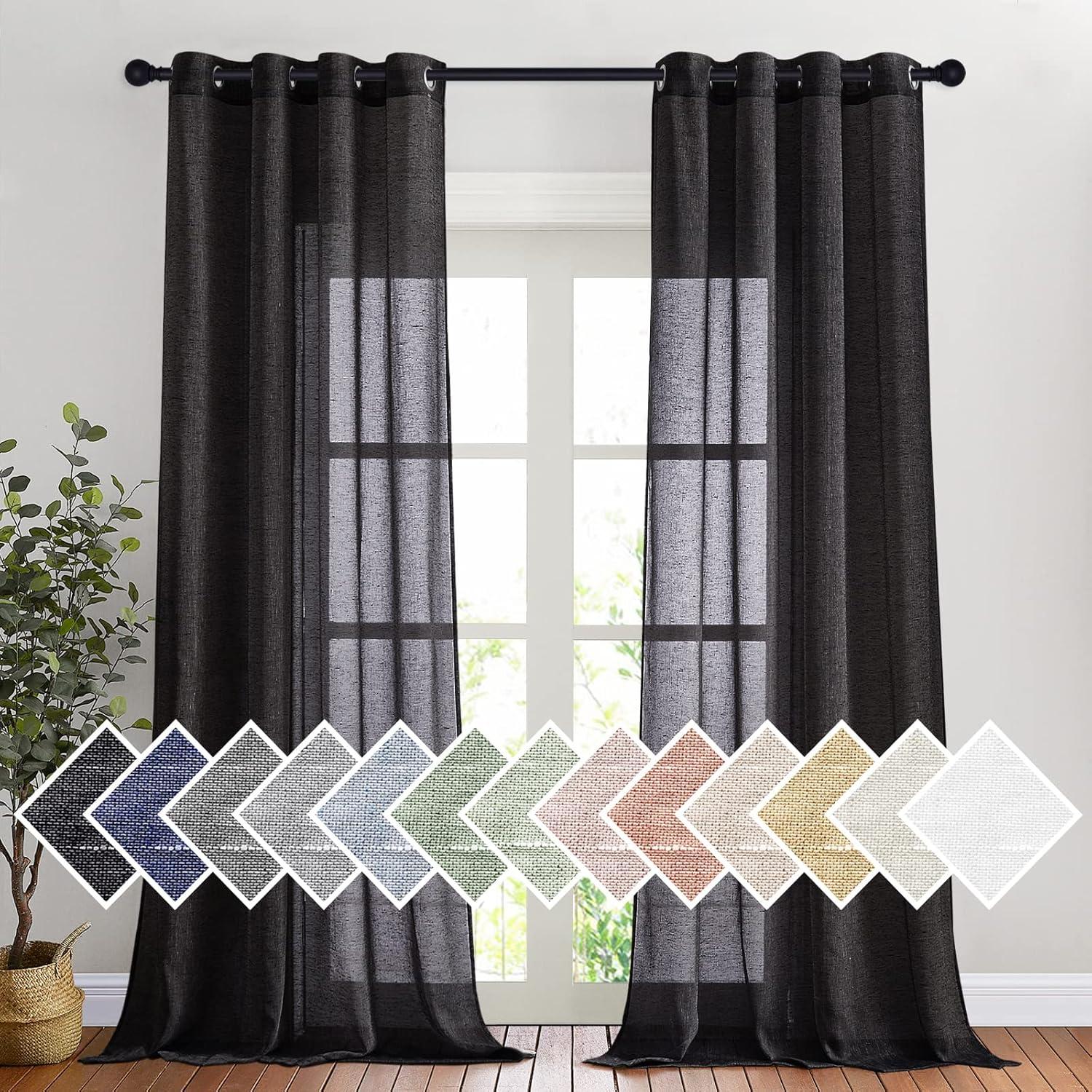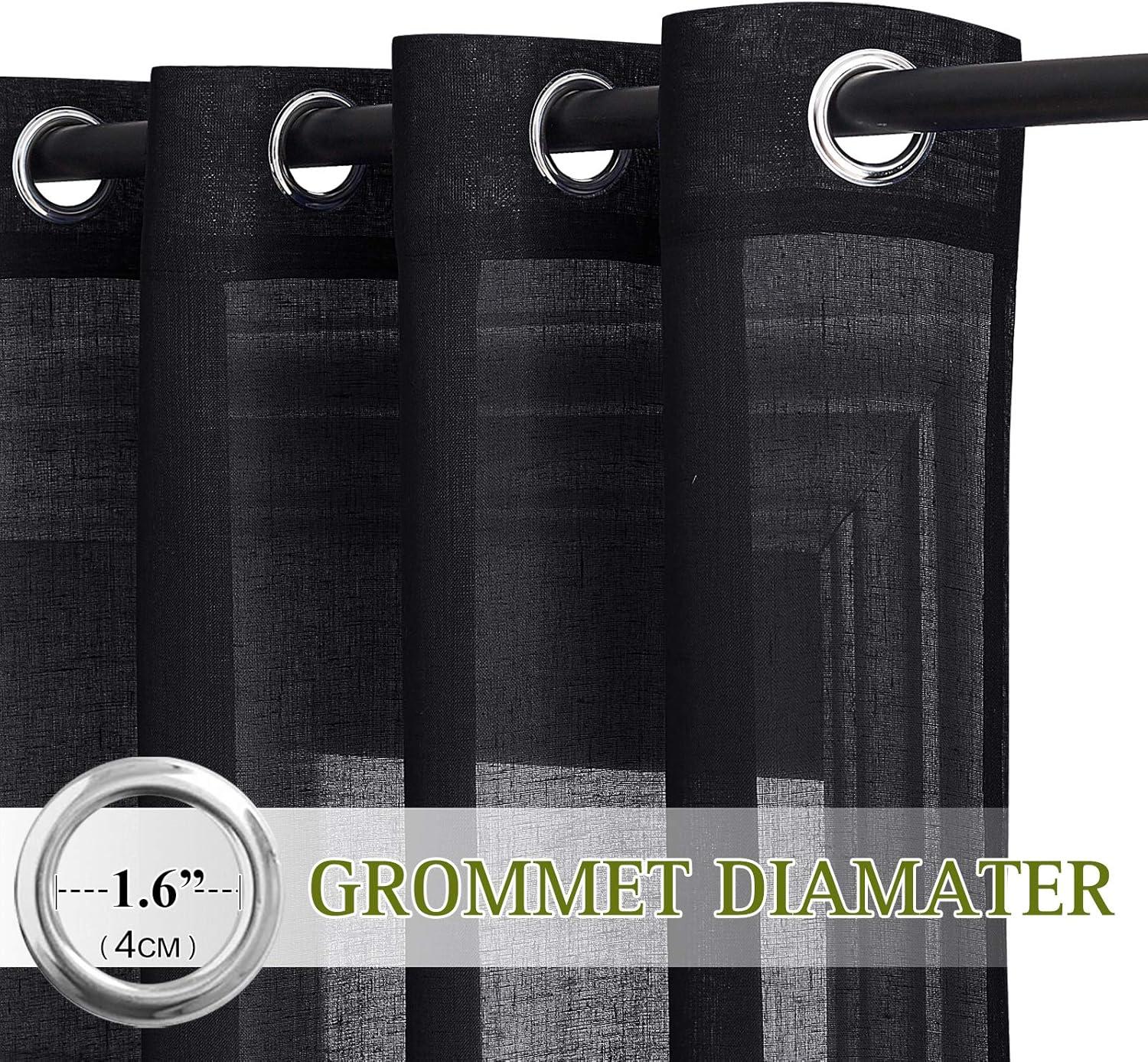 imageNICETOWN Kitchen Curtains 45 inch Length Grommet Short Curtains Semi Sheer Linen Drapes Privacy with Light Filtering for BedroomBasement Citrine W52 x L45 2 PanelsBlack