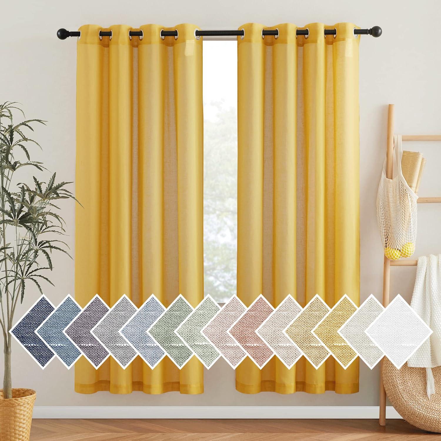 NICETOWN Kitchen Curtains 45 inch Length, Grommet Short Curtains Semi Sheer Linen Drapes Privacy with Light Filtering for Bedroom/Basement, Citrine, W52 x L45, 2 Panels(Citrine)