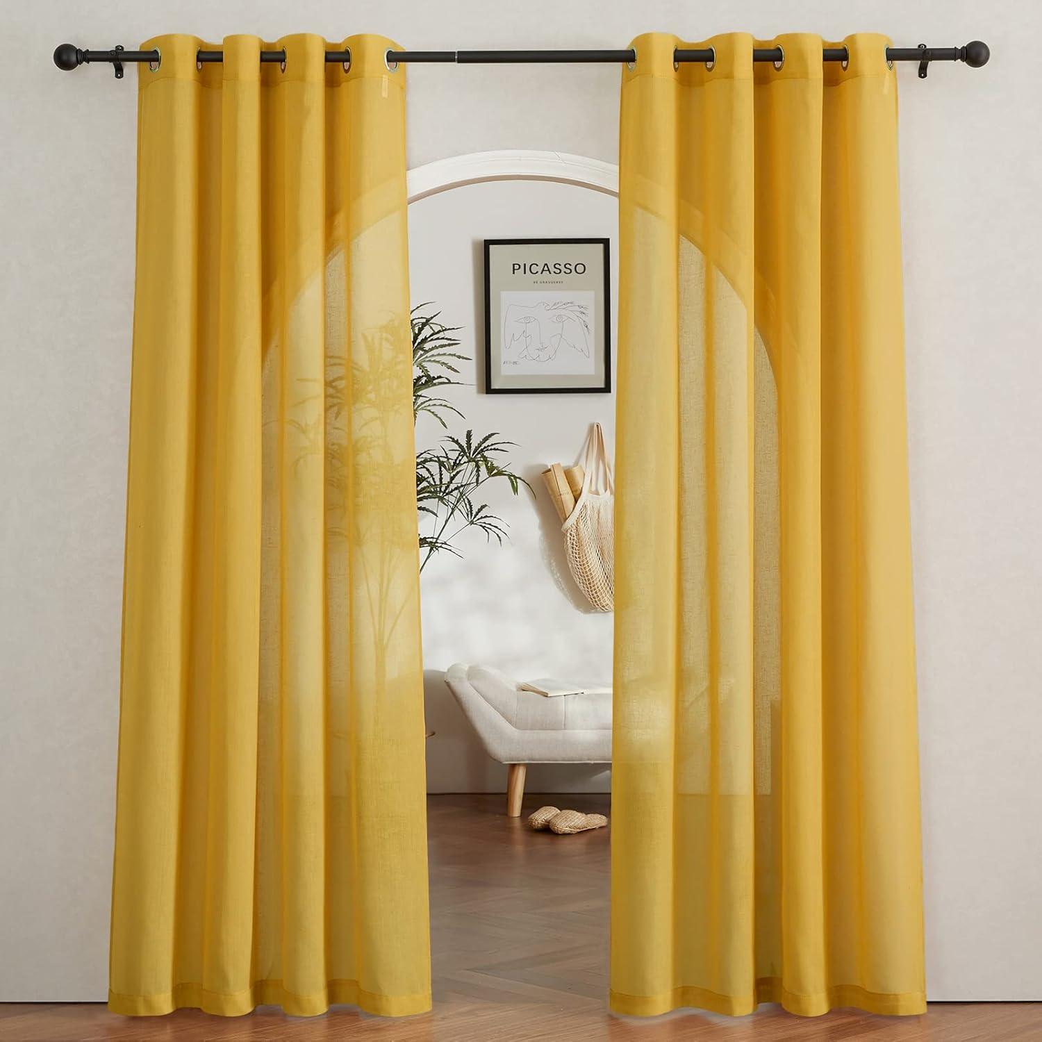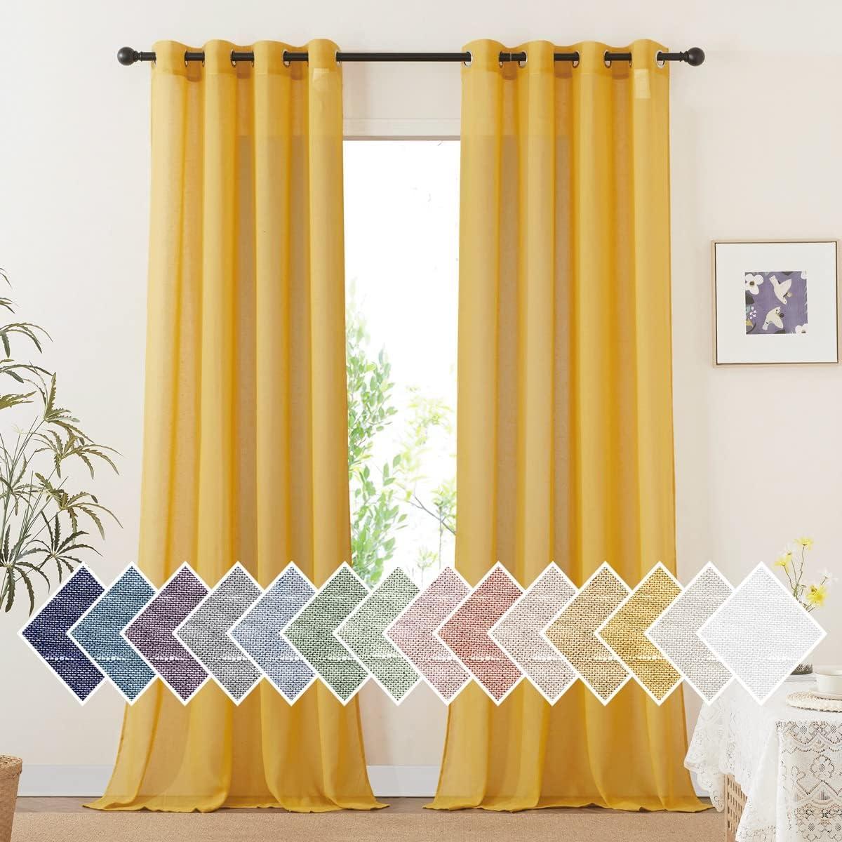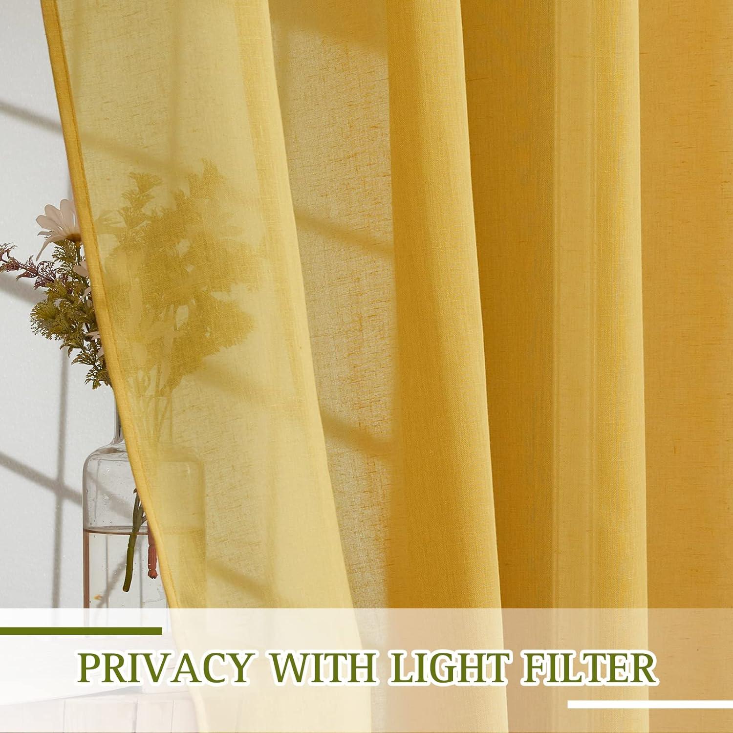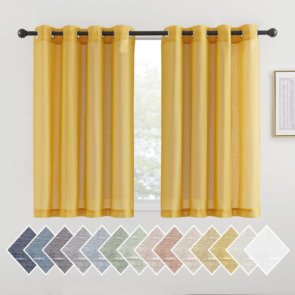 imageNICETOWN Kitchen Curtains 45 inch Length Grommet Short Curtains Semi Sheer Linen Drapes Privacy with Light Filtering for BedroomBasement Citrine W52 x L45 2 PanelsCitrine