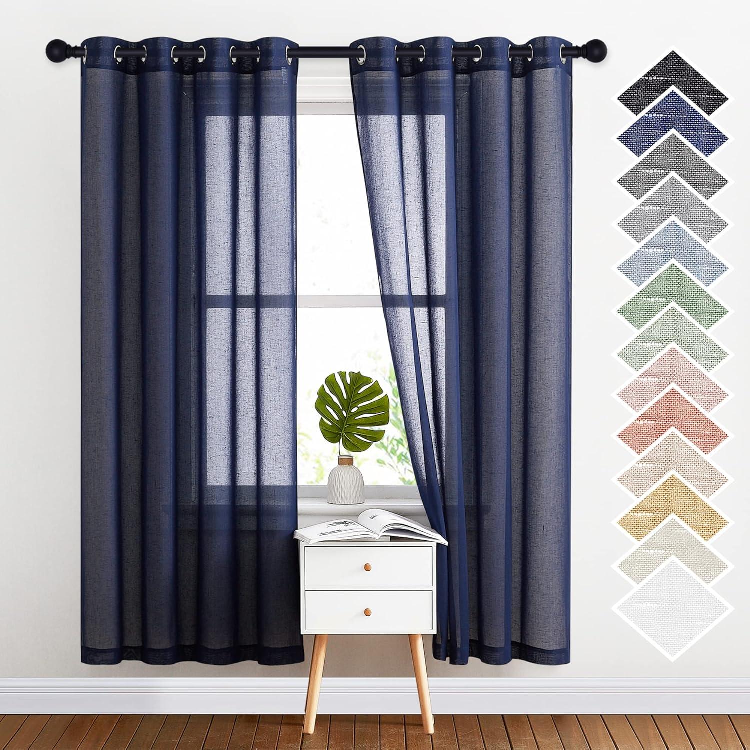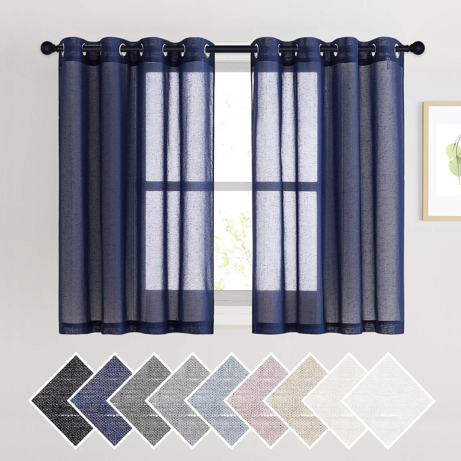 NICETOWN Kitchen Curtains 45 inch Length, Grommet Short Curtains Semi Sheer Linen Drapes Privacy with Light Filtering for Bedroom/Basement, Citrine, W52 x L45, 2 Panels(Dark Blue)