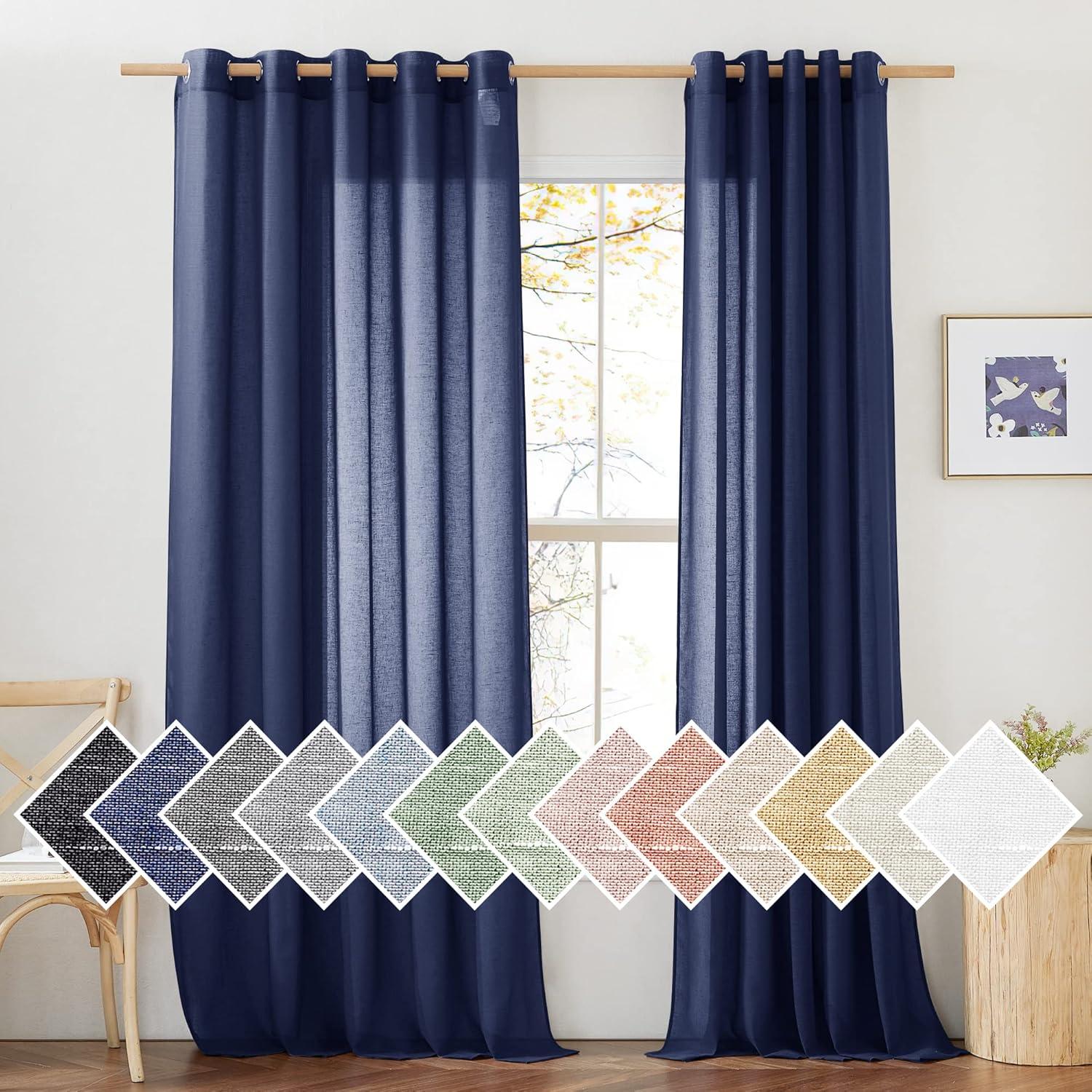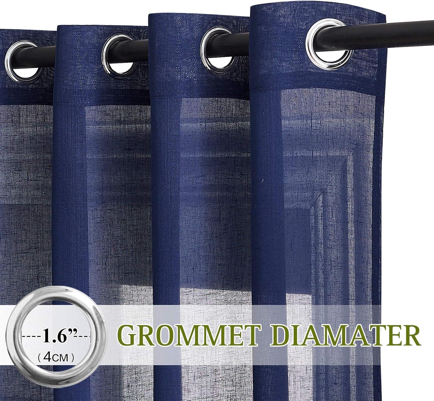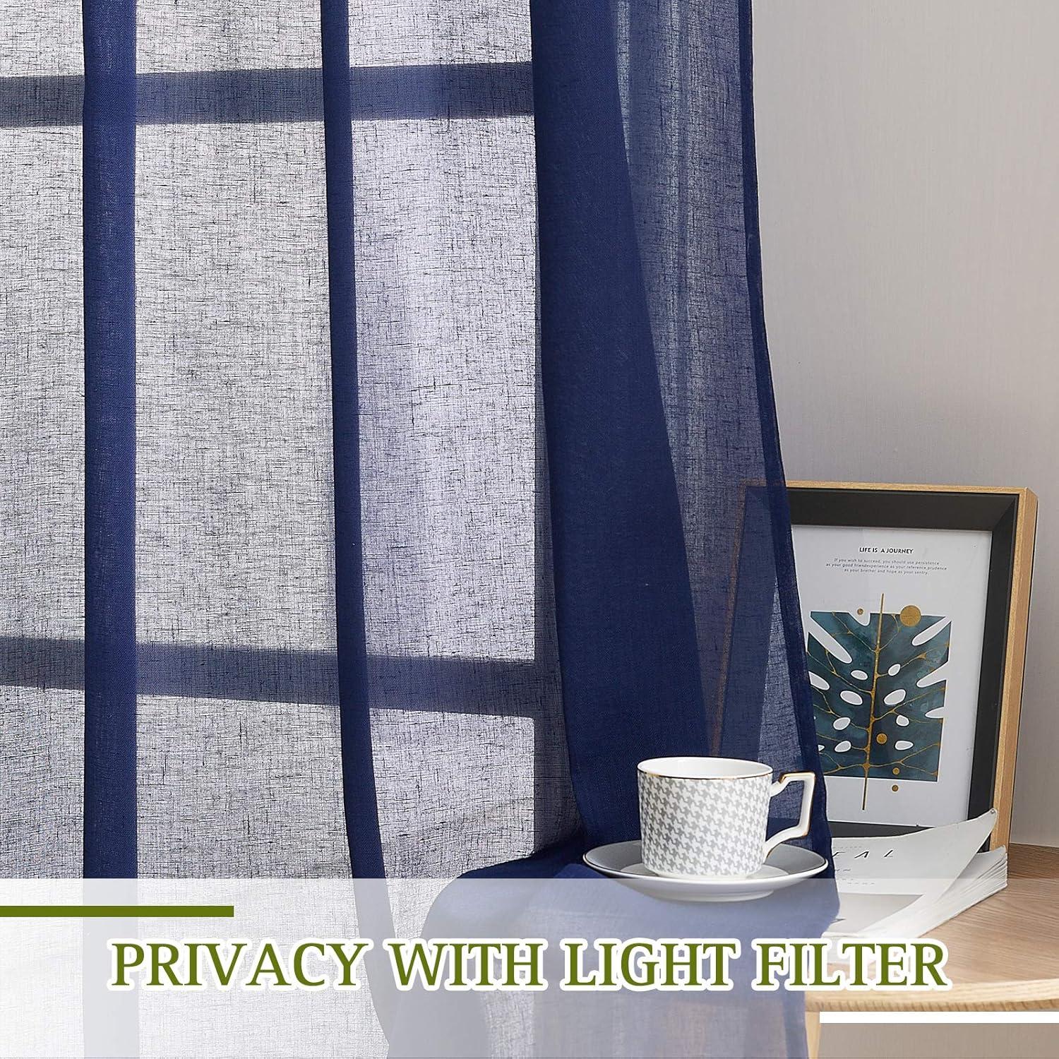 imageNICETOWN Kitchen Curtains 45 inch Length Grommet Short Curtains Semi Sheer Linen Drapes Privacy with Light Filtering for BedroomBasement Citrine W52 x L45 2 PanelsDark Blue