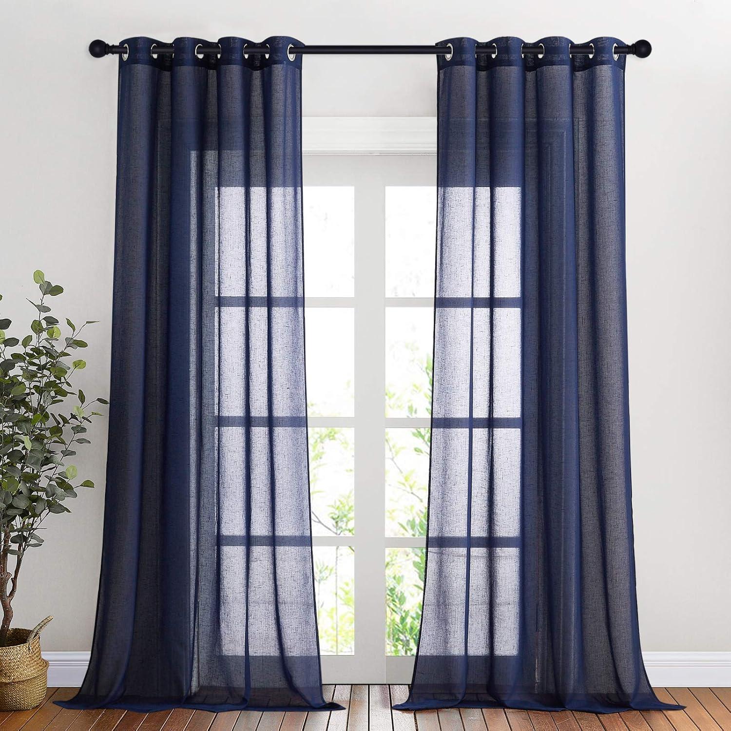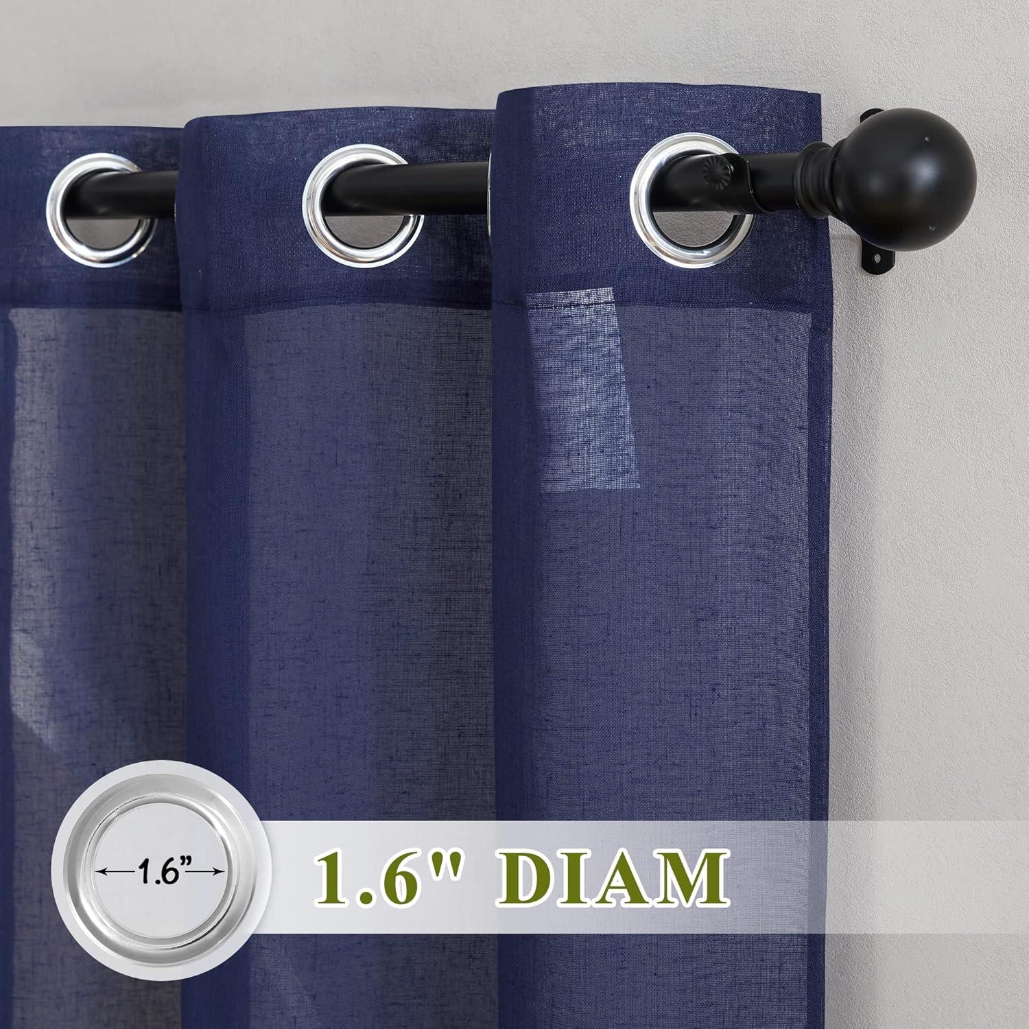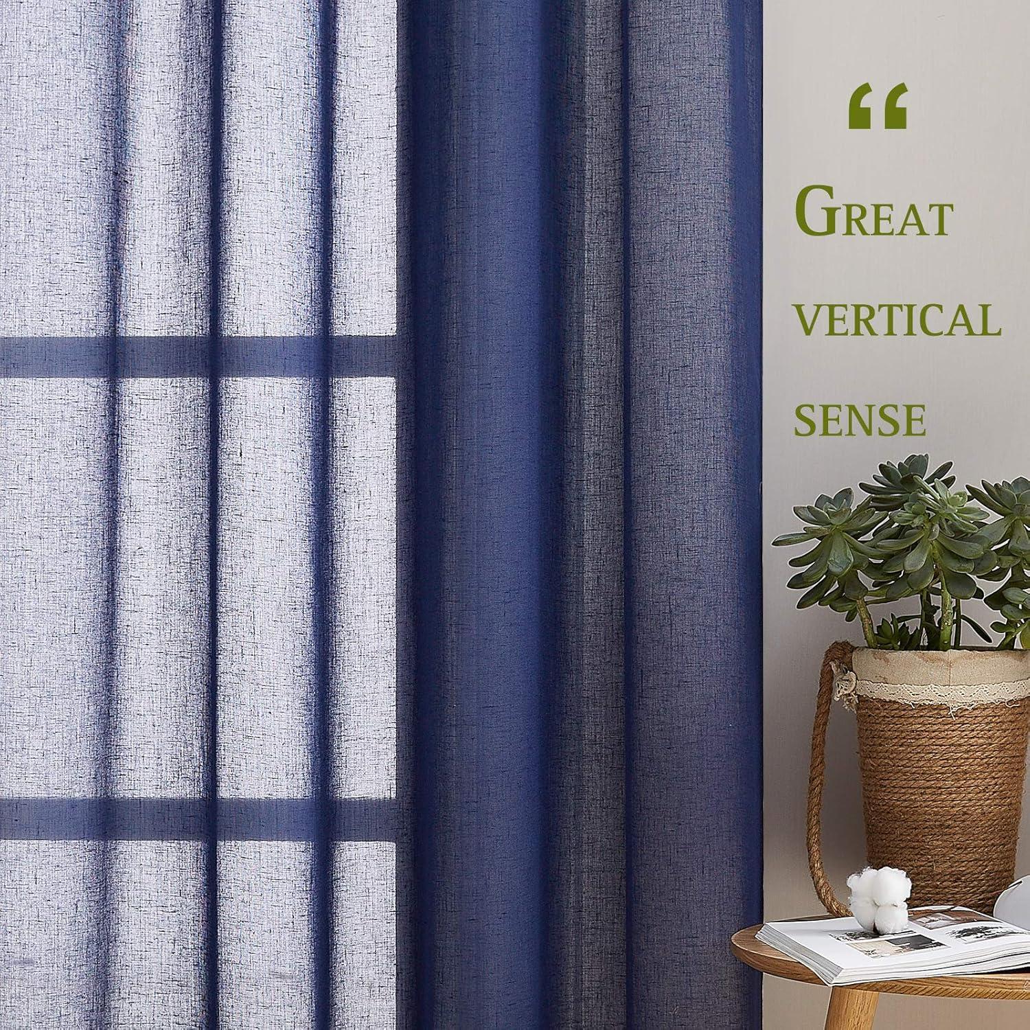 imageNICETOWN Kitchen Curtains 45 inch Length Grommet Short Curtains Semi Sheer Linen Drapes Privacy with Light Filtering for BedroomBasement Citrine W52 x L45 2 PanelsDark Blue