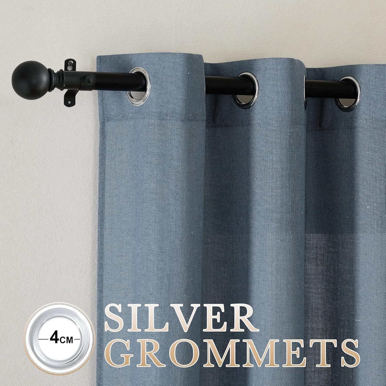 READY MADE: Package includes 2 flax sheer linen curtain panels, each measures 52″W (104″W for pair), with 8 (1.6″ inner diameter) silver grommets to suit with standard or decorative curtain rod.