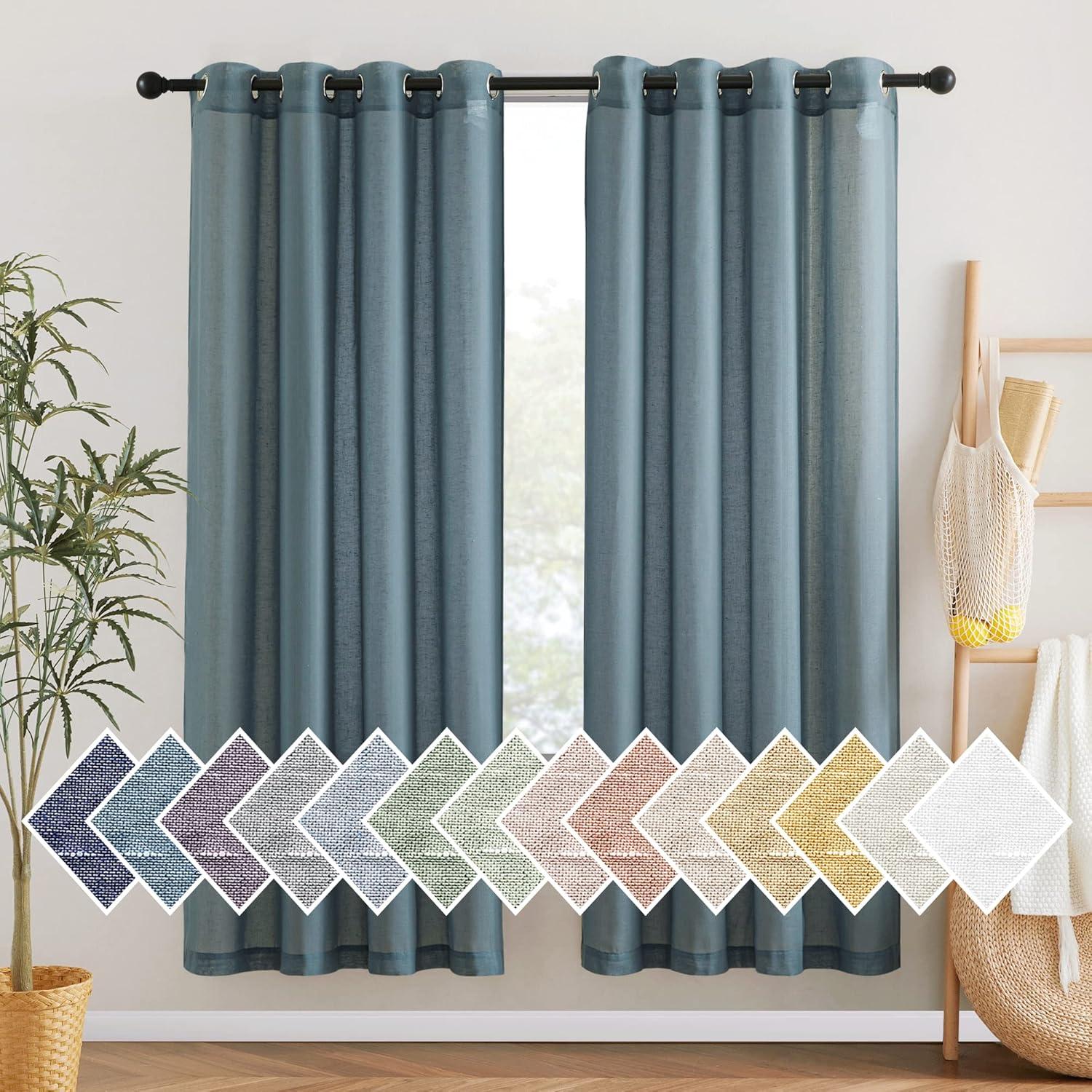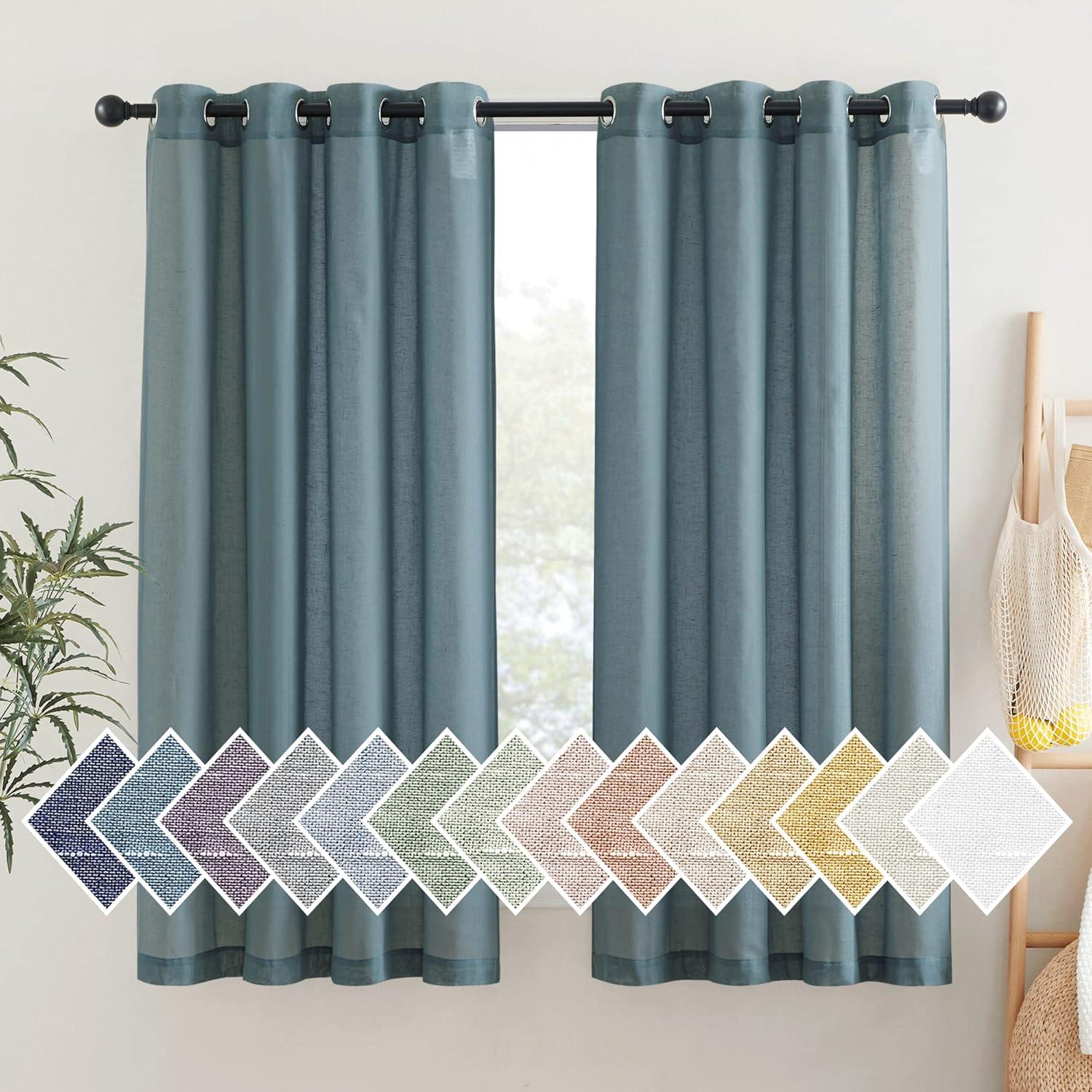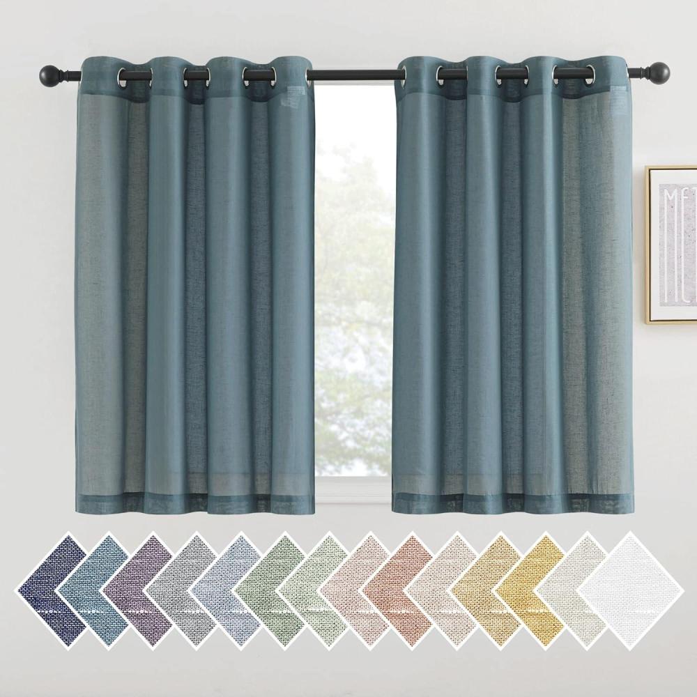 NICETOWN Kitchen Curtains 45 inch Length, Grommet Short Curtains Semi Sheer Linen Drapes Privacy with Light Filtering for Bedroom/Basement, Citrine, W52 x L45, 2 Panels(Stone Blue)