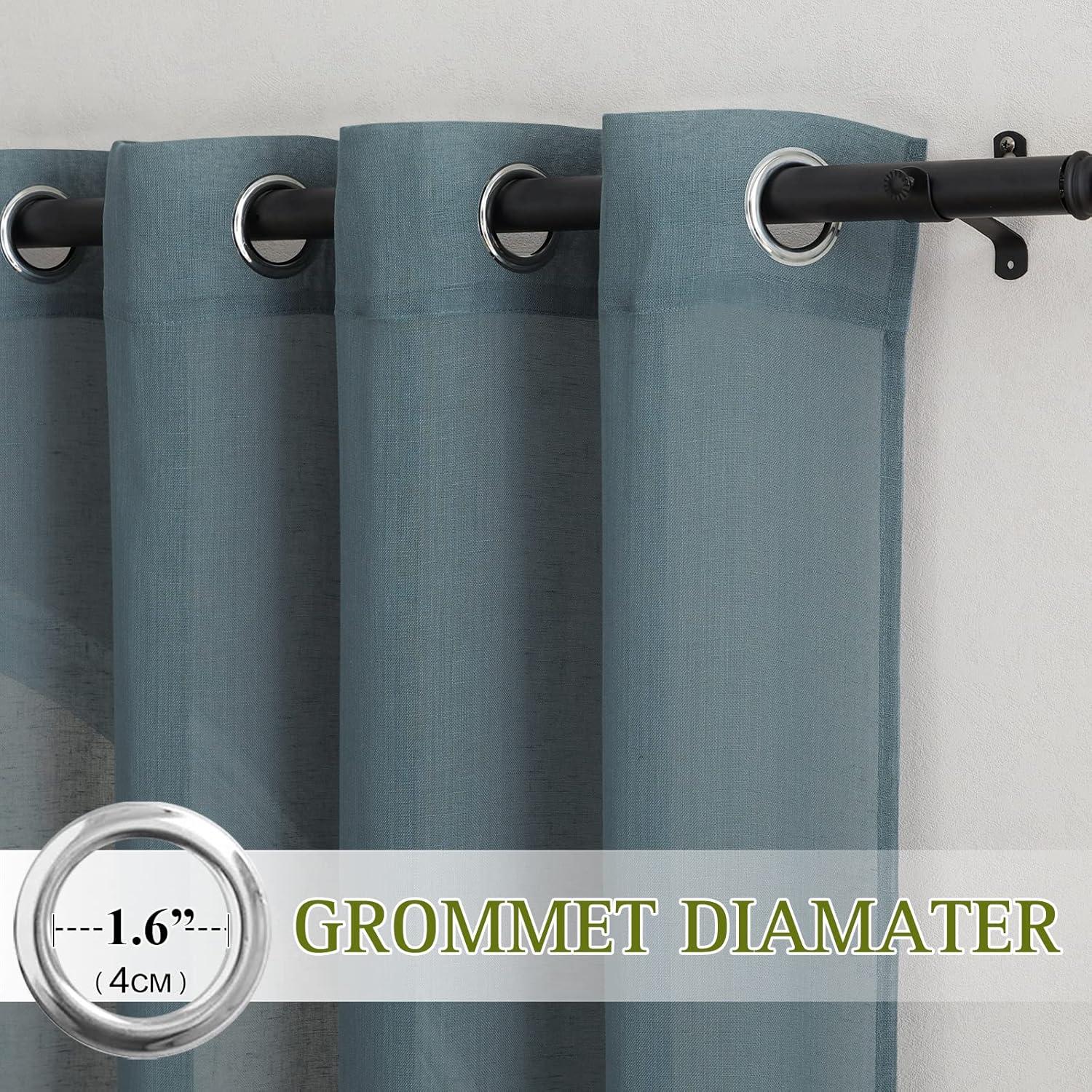 READY MADE: Package includes 2 flax sheer linen curtain panels, each measures 52″W (104″W for pair), with 8 (1.6″ inner diameter) silver grommets to suit with standard or decorative curtain rod.