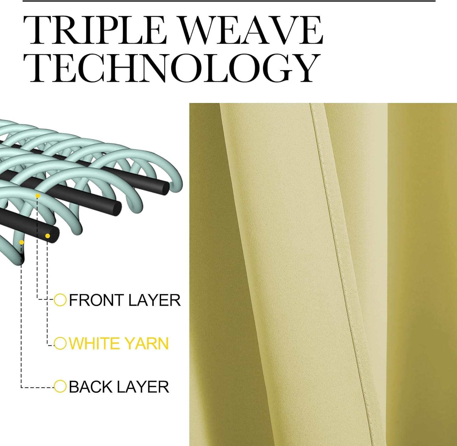 AMAZING MATERIAL: This unique, soft and heavy-duty blackout fabric is woven with three-layer construction. The middle layer of black yarns creates a curtain panel that is excellent for blocking out 85%-99% of light (Dark color works better on blocking light) while providing privacy.